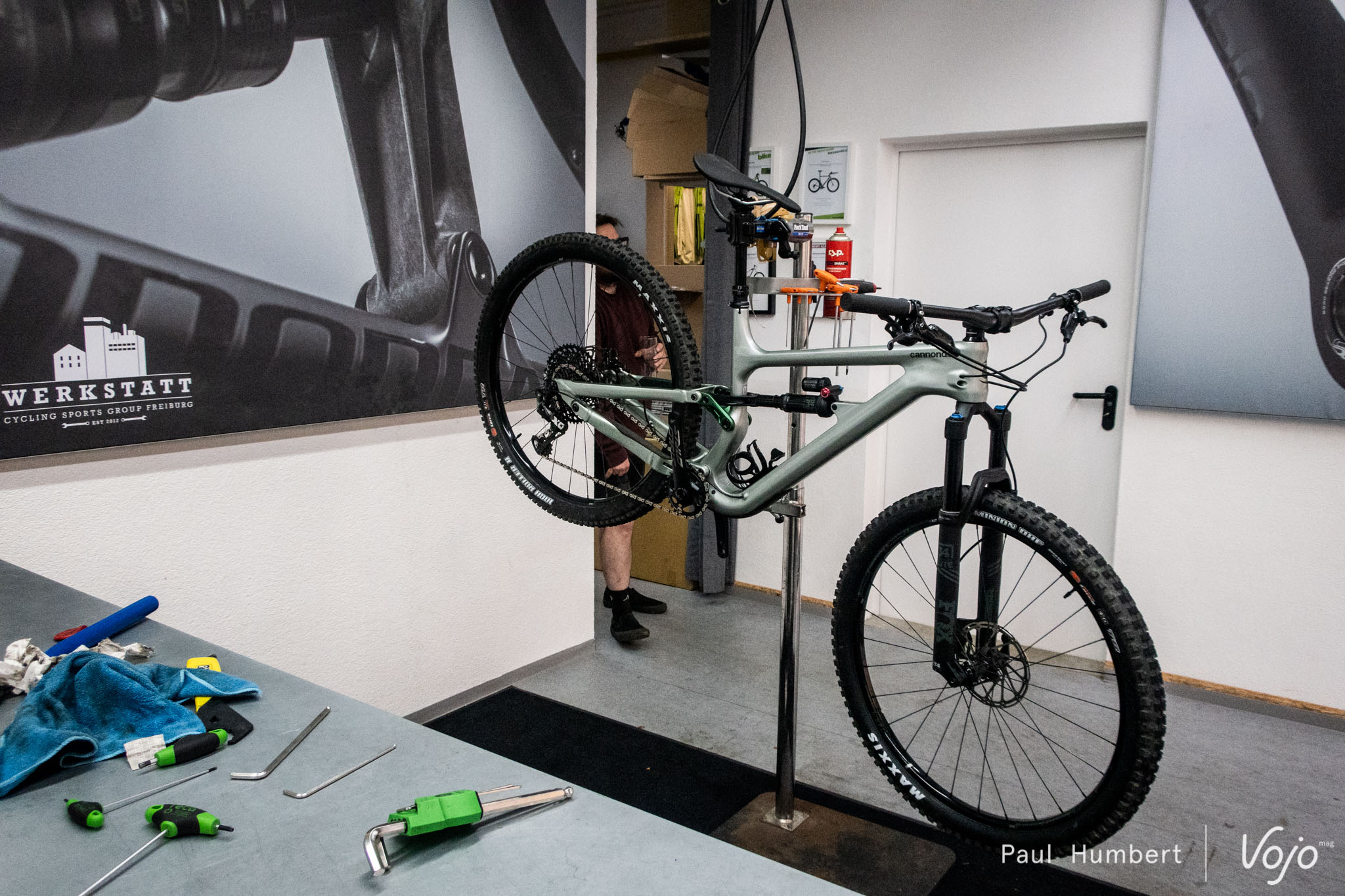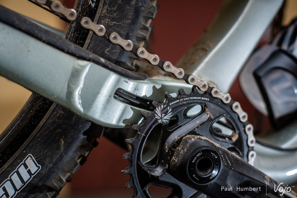 Pour notre mètre quatre-vingt-trois, nous grimpons sur un vélo en taille L, qui est la taille idéale. Luis, le « chef suspension », ajuste notre SAG, pour 72kg à 25%. Nous mettrons difficilement à l’épreuve le travail effectué sur l’adaptation de la cinématique, nos mensurations étant somme toutes assez « standard » dans l’industrie du cycle. C’est en la compagnie de Luis, d’autres journalistes et de Jérôme Clementz que nous partons sur les sentiers.