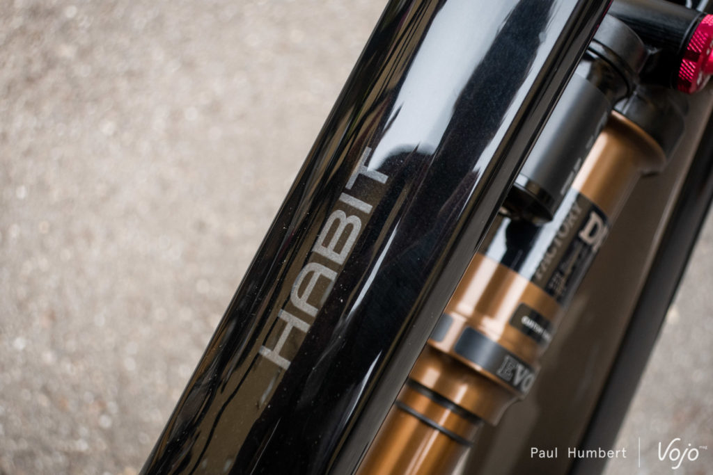 Côté cinématique, on pourrait croire à une simple itération de ce que Cannondale propose avec le Jekyll et le Trigger, mais il n’en est rien. C’est d’ailleurs une première pour Cannondale, qui conçoit son Habit 2019 avec une cinématique « 4 Bar linkage » de type « Horst-Link ». Cette cinématique multi-pivot est identifiable notamment par l’axe de la roue arrière situé sur les haubans (et non sur les bases, comme pour les Trigger ou Jekyll). Cette proposition permet de conserver une suspension très active au freinage, sensible en début de course, puis bien plus progressive. Sur le papier, on est assez proche d’un autre vélo à succès, le YT Jeffsy (que nous testions ici : dev.vojomag.com/test-yt-jeffsy-29-cf-one-coup-de-coeur-sur-les-sentiers/ ).