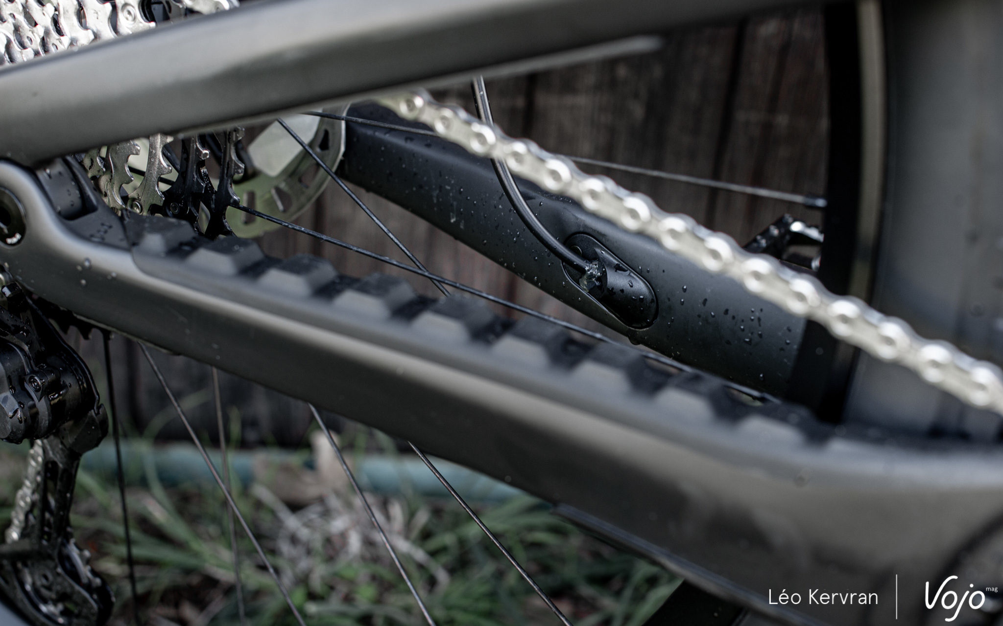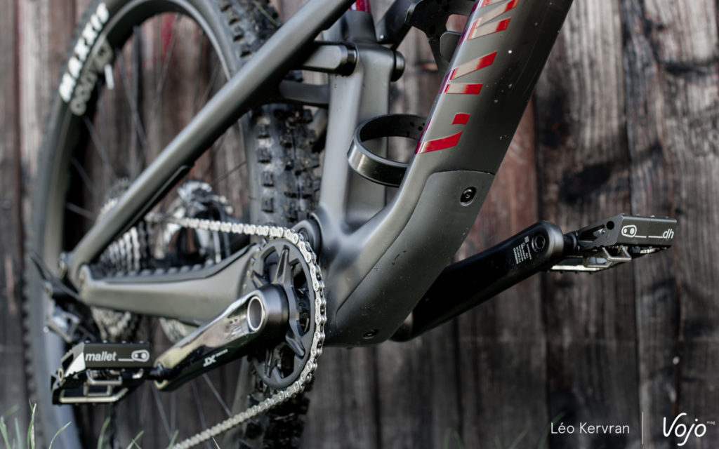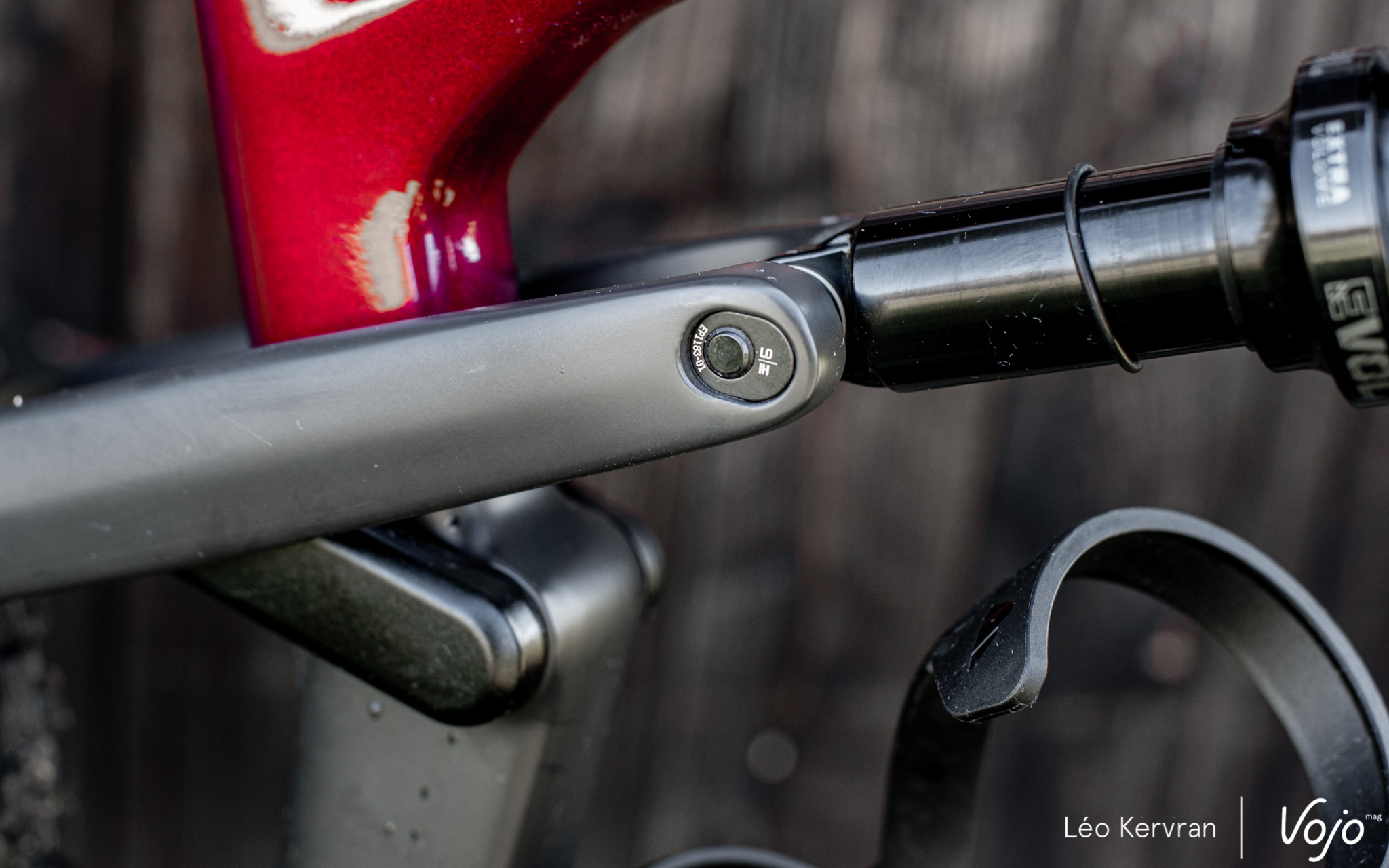 Comme son grand frère, le vélo est monté avec un petit flipchip. Il est livré installé dans la position Low décrite ci-dessus et le passage en position High permet de redresser les angles de 0,5° et de remonter le boîtier de pédalier de 8 mm, ce qui peut s’avérer utile si vous aimez jouer dans les montées techniques par exemple.