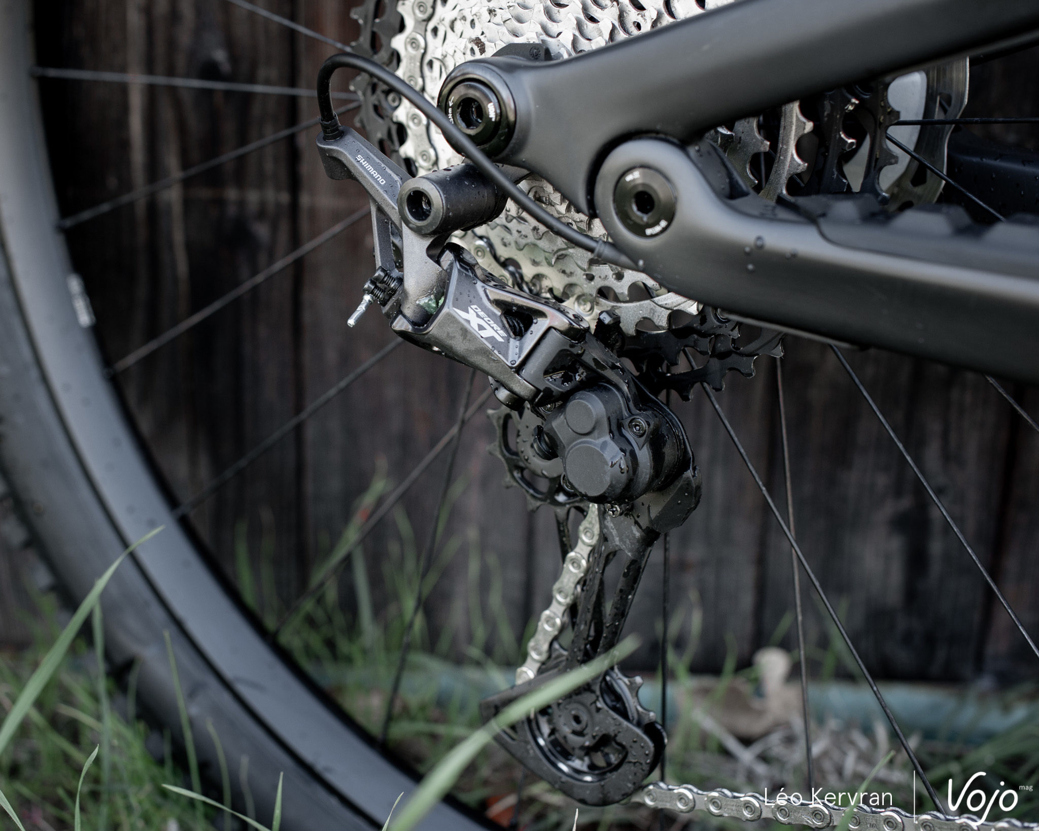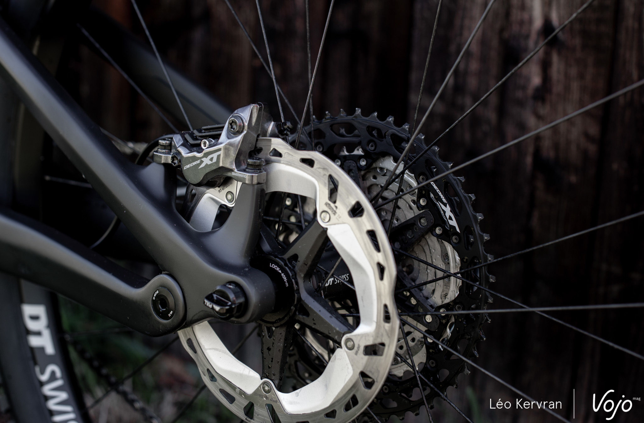 Pour la transmission et le freinage, c’est du Shimano Deore XT à tous les étages ou presque (la chaîne est une Shimano SLX), avec plateau en 32 dents, étriers 4 pistons et disques en 203/180 mm.