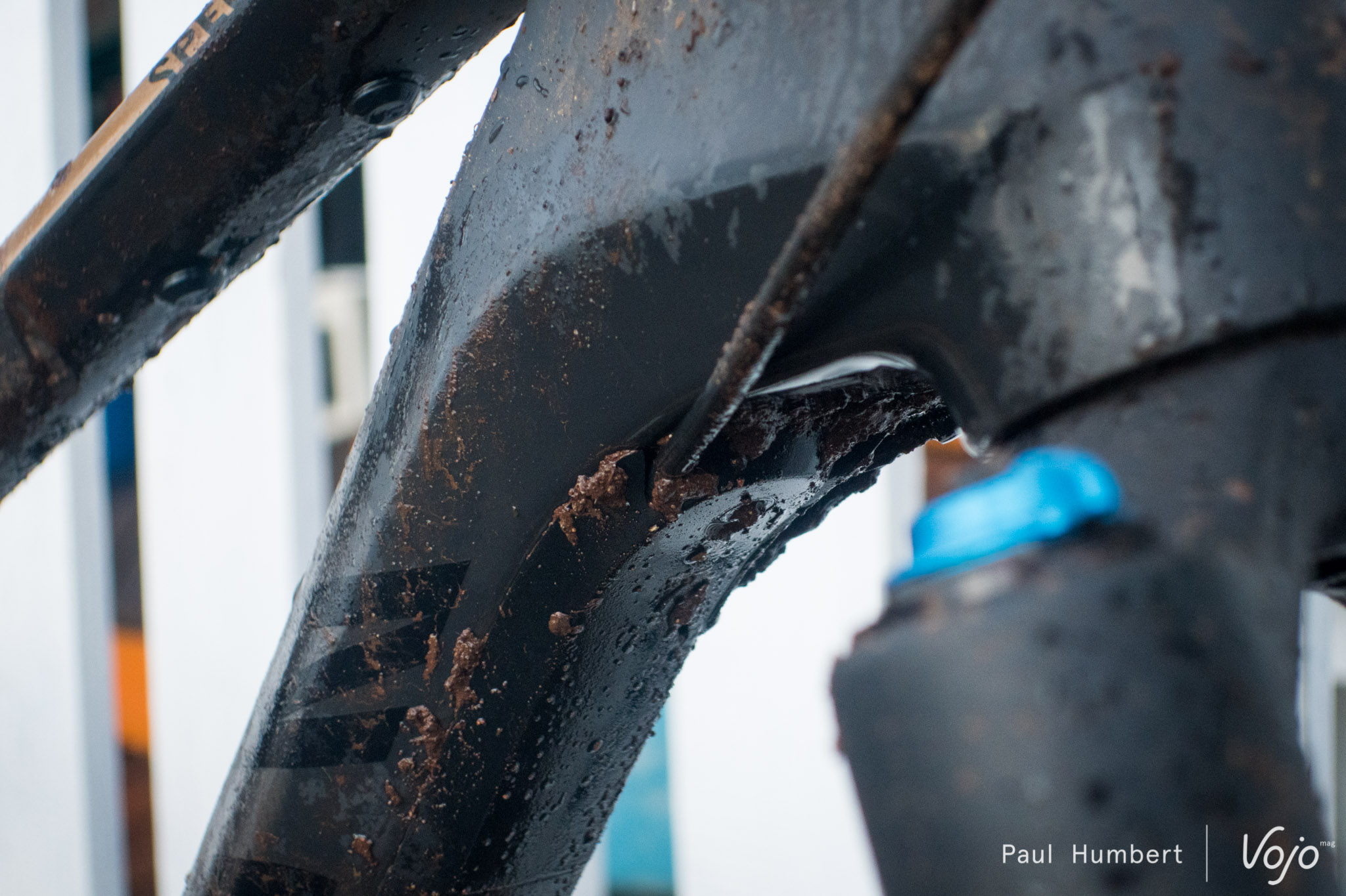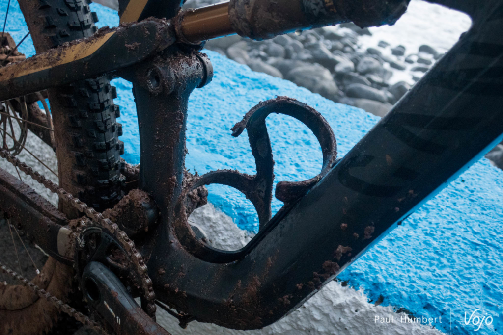 Une grande pièce en plastique qui s’intègre au design du cadre vient ensuite protéger et cacher le tout. Indétectable sur les cadres de couleur noire, cette solution permet un accès plus facile à chaque câble et l’entretien devient bien plus aisé. Reste à savoir si cette pièce en plastique restera étanche et si elle ne permettra pas à la boue de rentrer. Malgré les conditions rencontrées à Madère, nous n’avons pas eu l’occasion d’effectuer un démontage dans les règles pour nous en rendre compte.