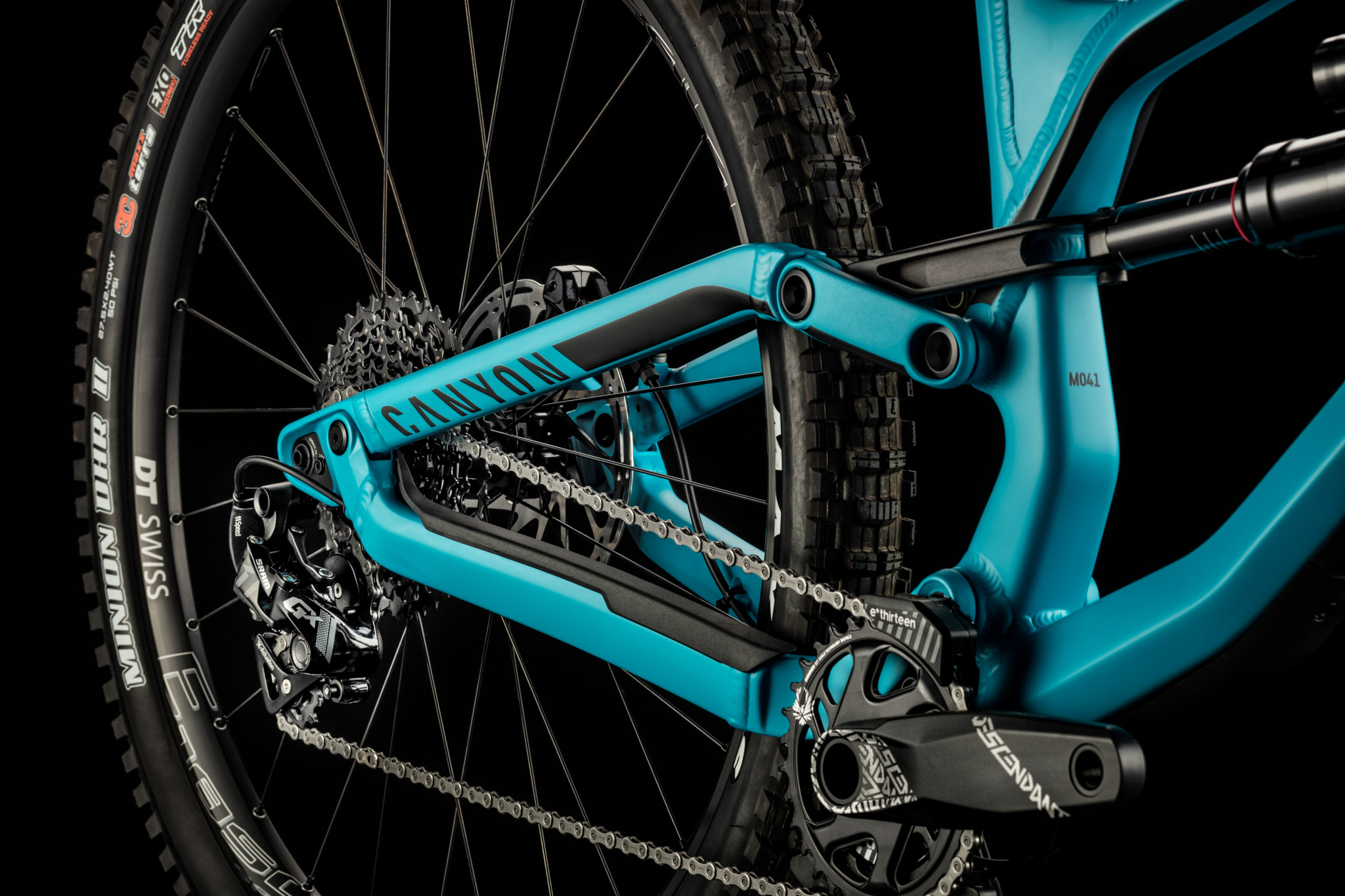 On retrouve également l’habile petit axe arrière développé par Canyon et présenté avec le Spectral : le levier vient se glisser dans l’axe est n’est ainsi plus exposé.
