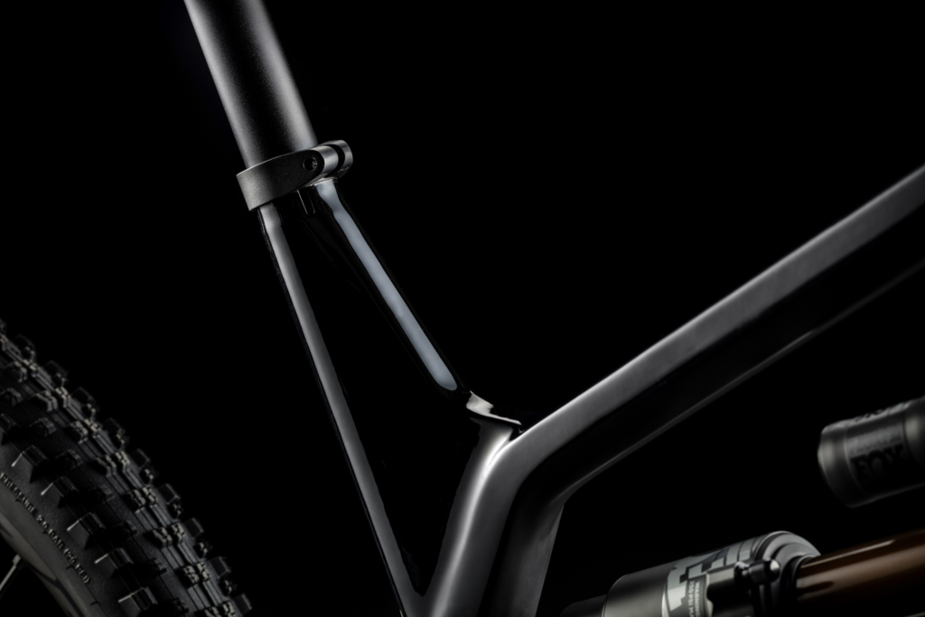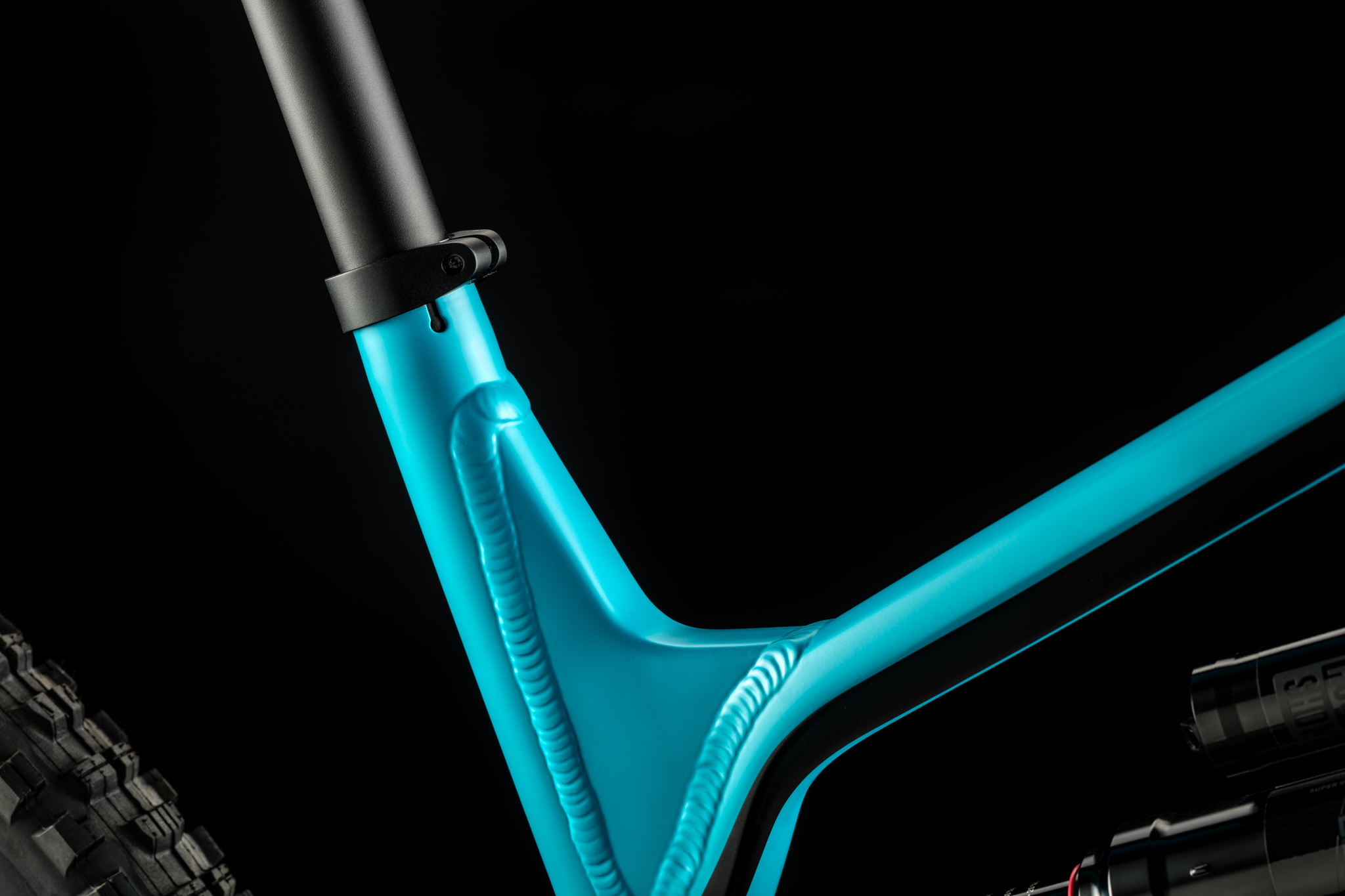 Canyon fait table rase de ce qui faisait le précédent Torque. On retrouve un point de pivot arrière positionné sur les haubans et au-dessus de l’axe de roue, à l’instar du Spectral. Le basculeur de la suspension est aujourd’hui plus proche de celui du Sender (sans son MX link). Canyon précise qu’une tige de selle télescopique de 150mm de débattement peut maintenant être utilisée (170mm sur les tailles L et XL en carbone).