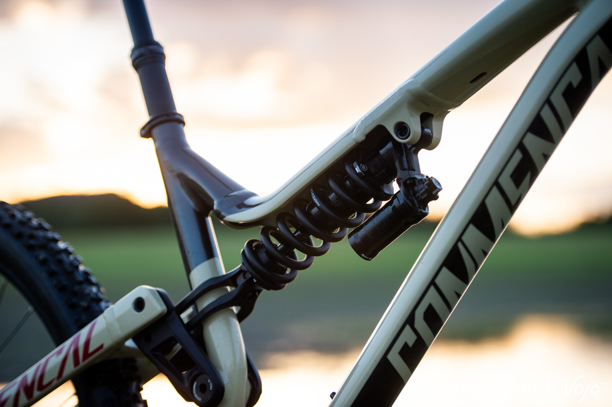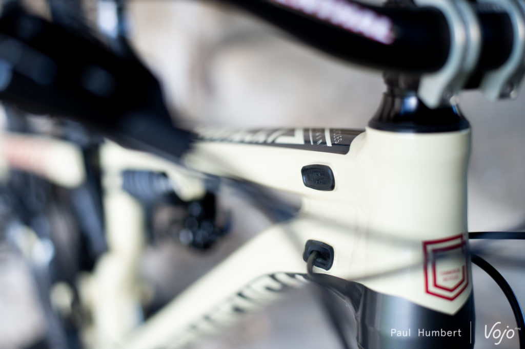 Du côté des petits détails, on remarque les passages de gaines améliorés, et une petite bavette au niveau de la biellette pour éviter l’accumulation de boue. Commencal annonce également avoir intégré une petite mousse dans le top tube pour isoler le cadre de l’eau lors des lavages. Pas une mauvaise idée !