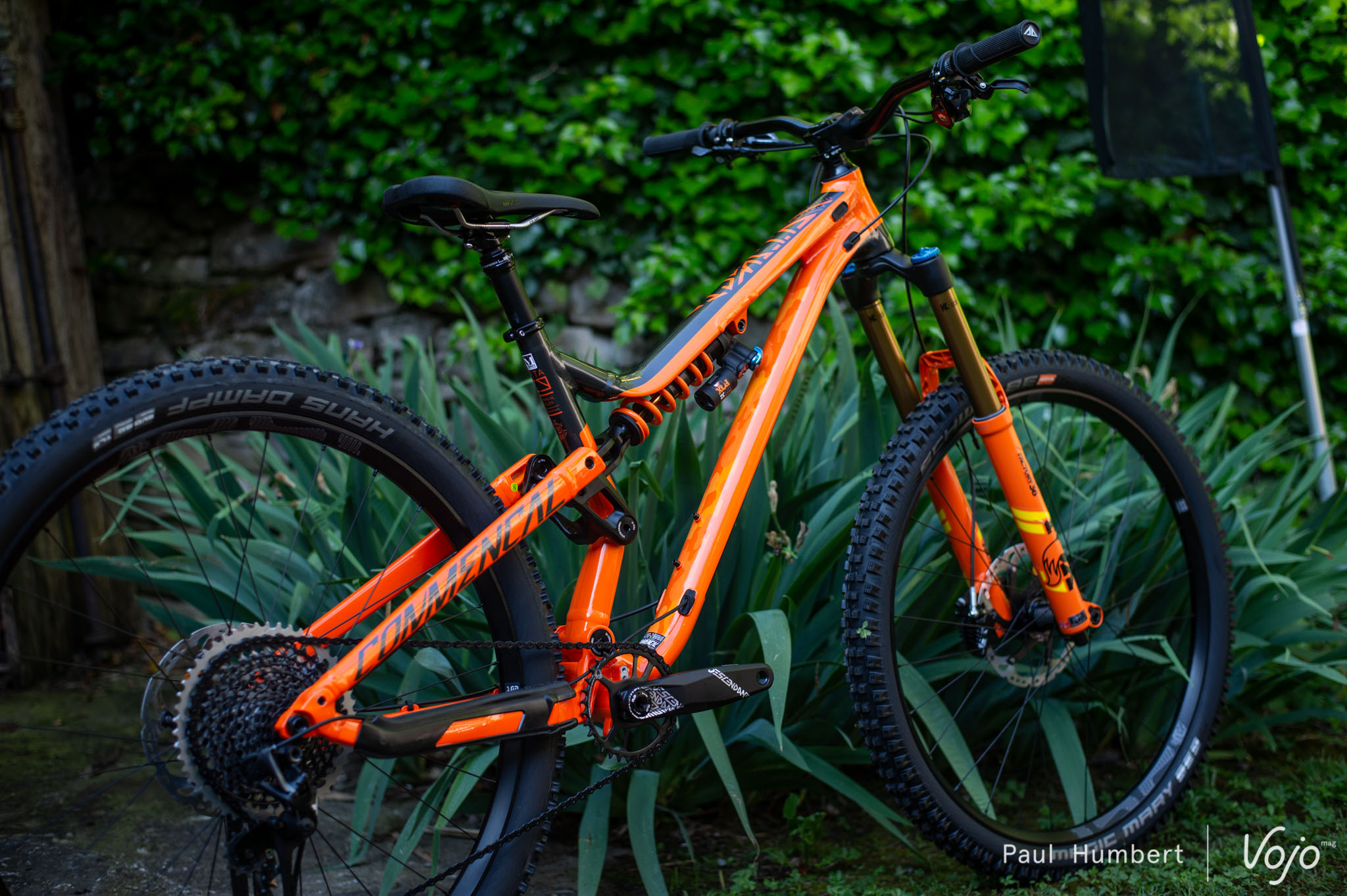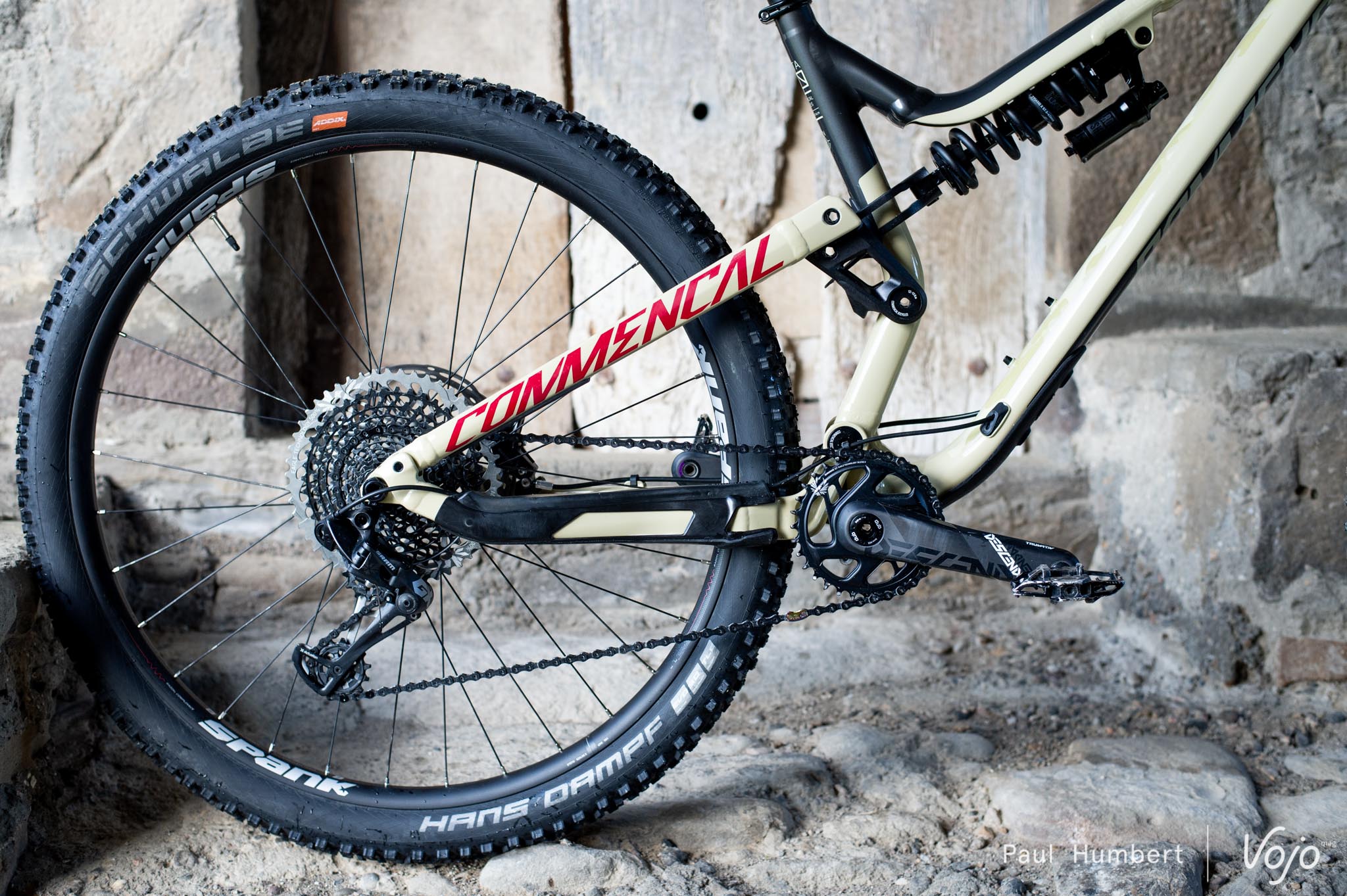 Le poste de pilotage est confié à Renthal et les roues à Spank avec une monte de pneus Schwalbe. Bref, ce sont des partenaires connus de Commencal, l’ensemble a l’air d’être bien prêt à rouler et le vélo ne manquera pas de nous le prouver.