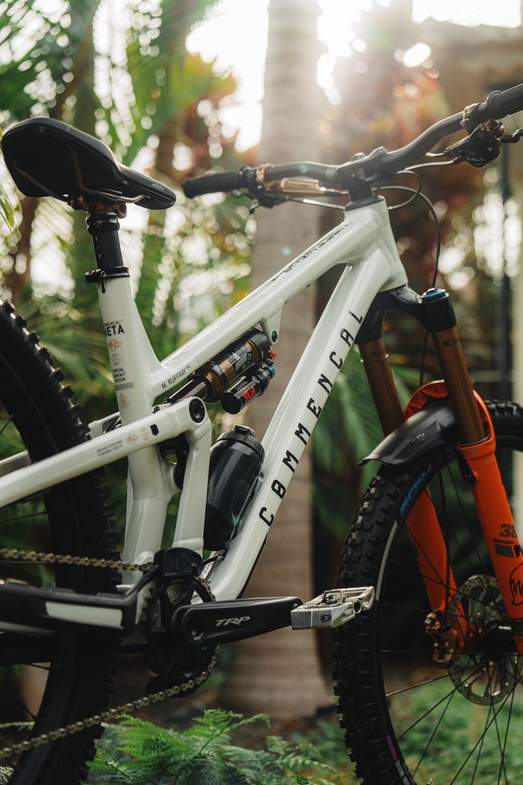 « De l’autre côté du spectre, le Meta V5 est capable de facilement générer de la vitesse en pompant et en jouant avec le terrain, et le vélo semble flotter au-dessus des obstacles une fois la vitesse de croisière atteinte. Il est également plus facile à prendre en main, avec un côté très accessible et agile. Plus tolérant et confortable de par la construction de son cadre, il ne peut par contre pas prétendre à la même stabilité que le modèle SX, et l’on peut plus rapidement s’imaginer atteindre les limites du châssis. »