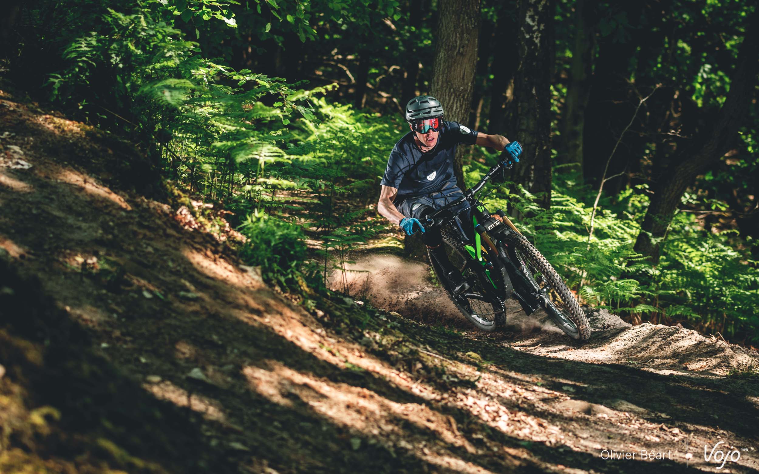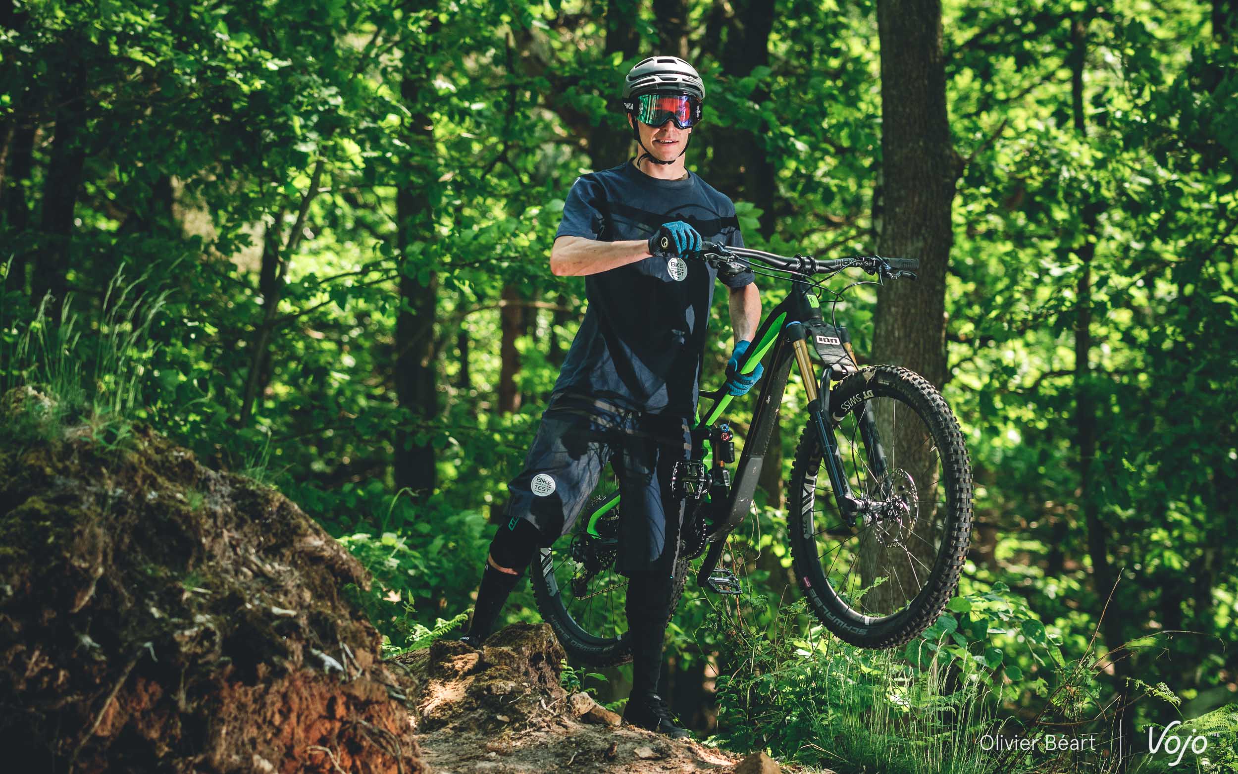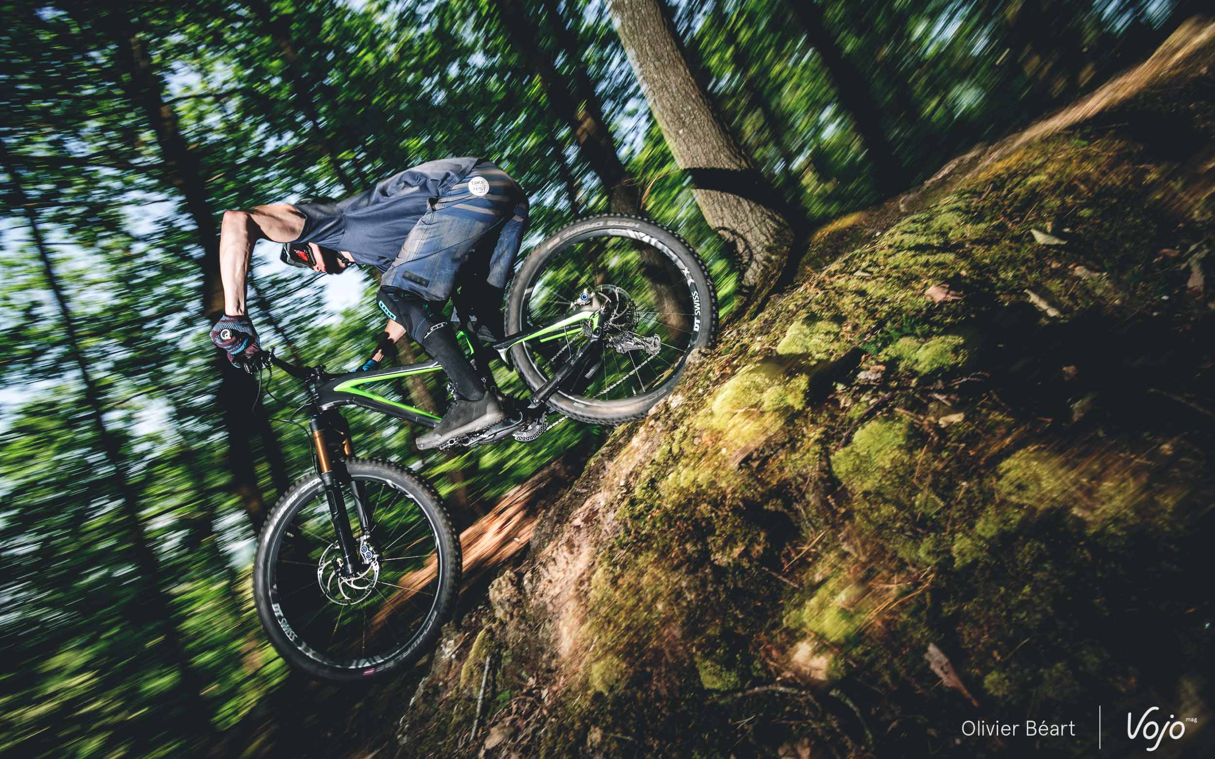 Nous n’avons que deux bonnes heures devant nous, ce qui est court, mais Florian connaît les trails comme sa poche et il nous emmène directement dans les endroit les plus intéressants pour éviter de perdre du temps. Nous n’allons par contre pas vous raconter que nous avons fait un vrai test du vélo au sens où nous l’entendons chez Vojo (4 à 6 semaines sur nos trails, 3 testeurs minimum, etc), mais cette première approche nous a tout de même permis de bien saisir quelques traits de caractère du Rose Pikes Peak et de voir que c’est une machine plus que prometteuse !
