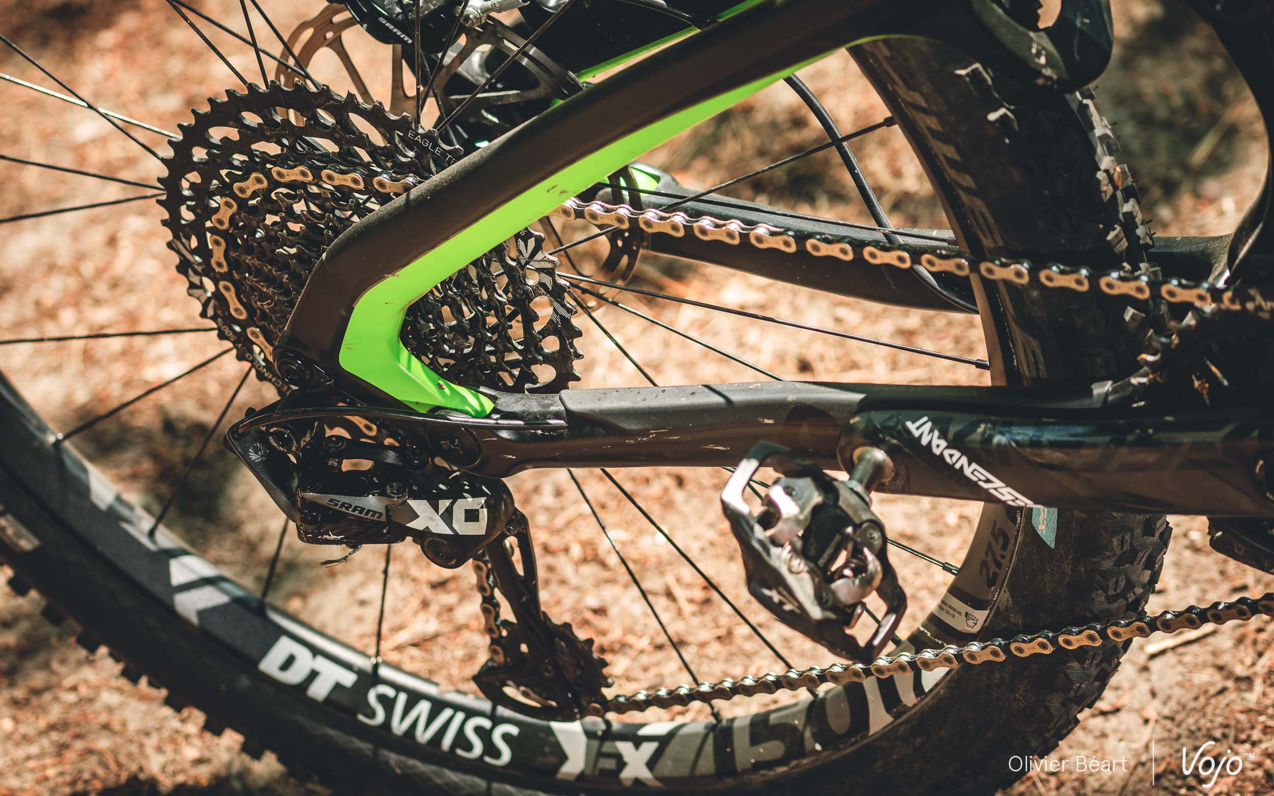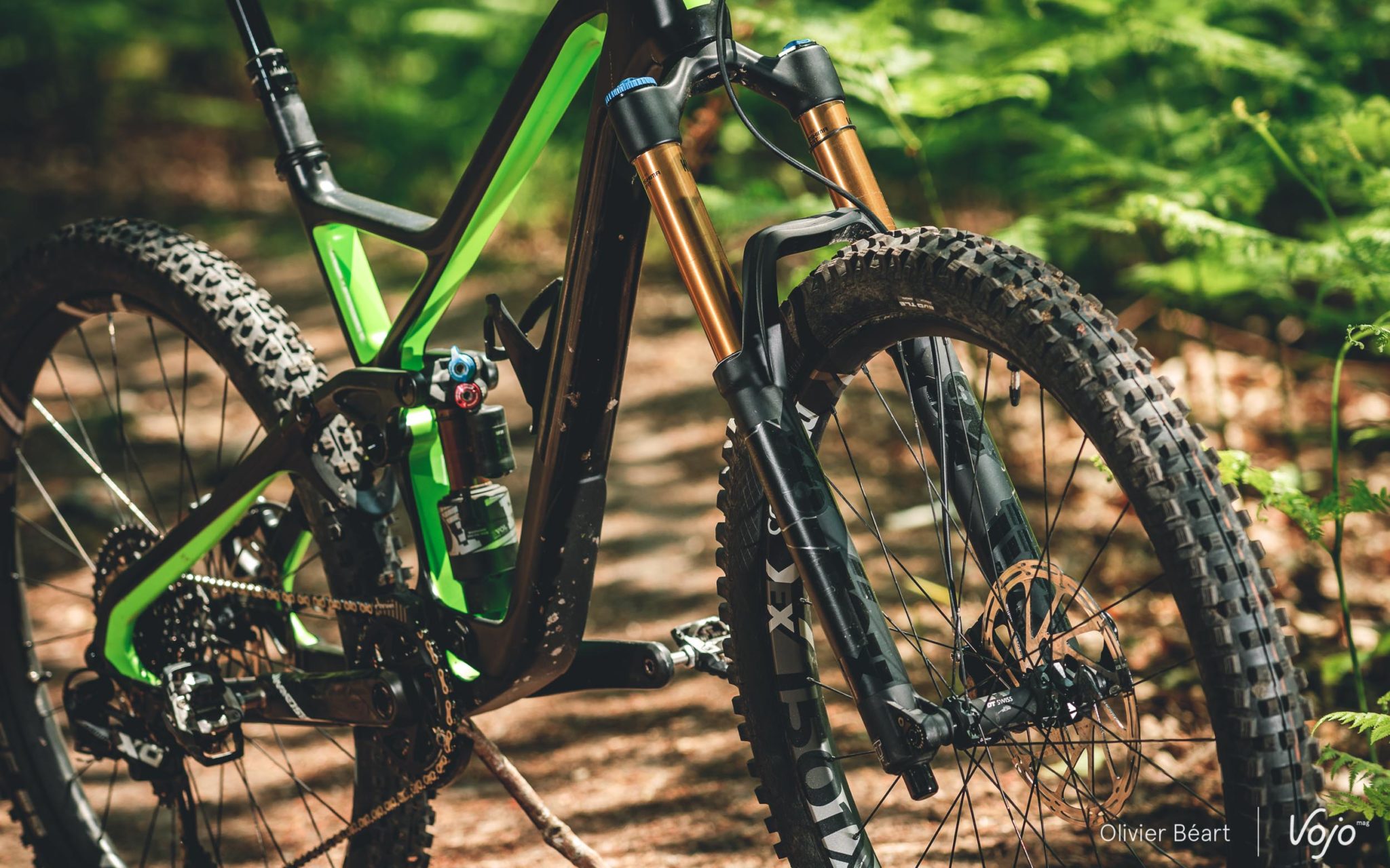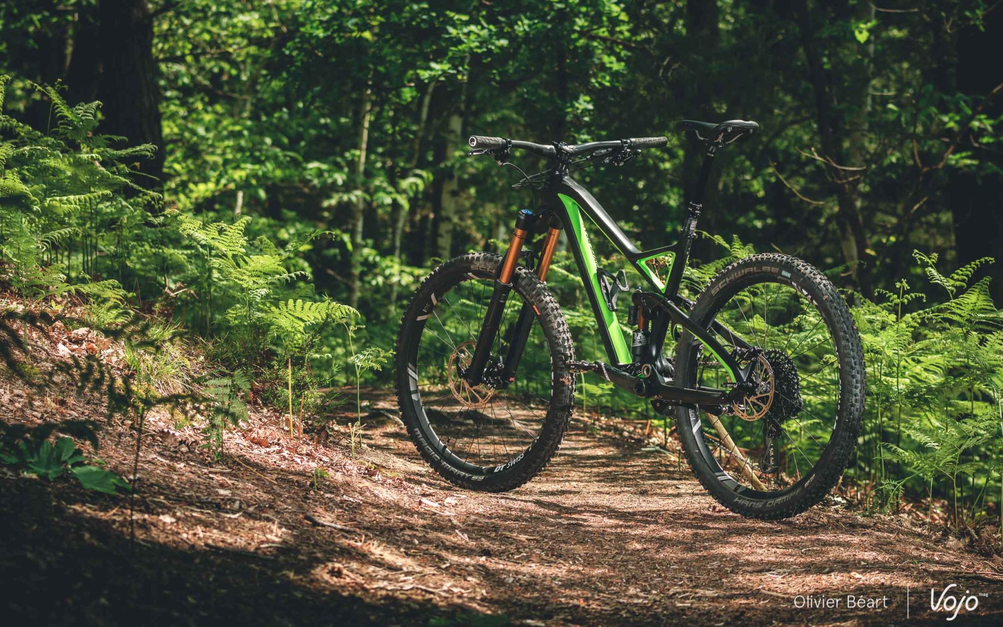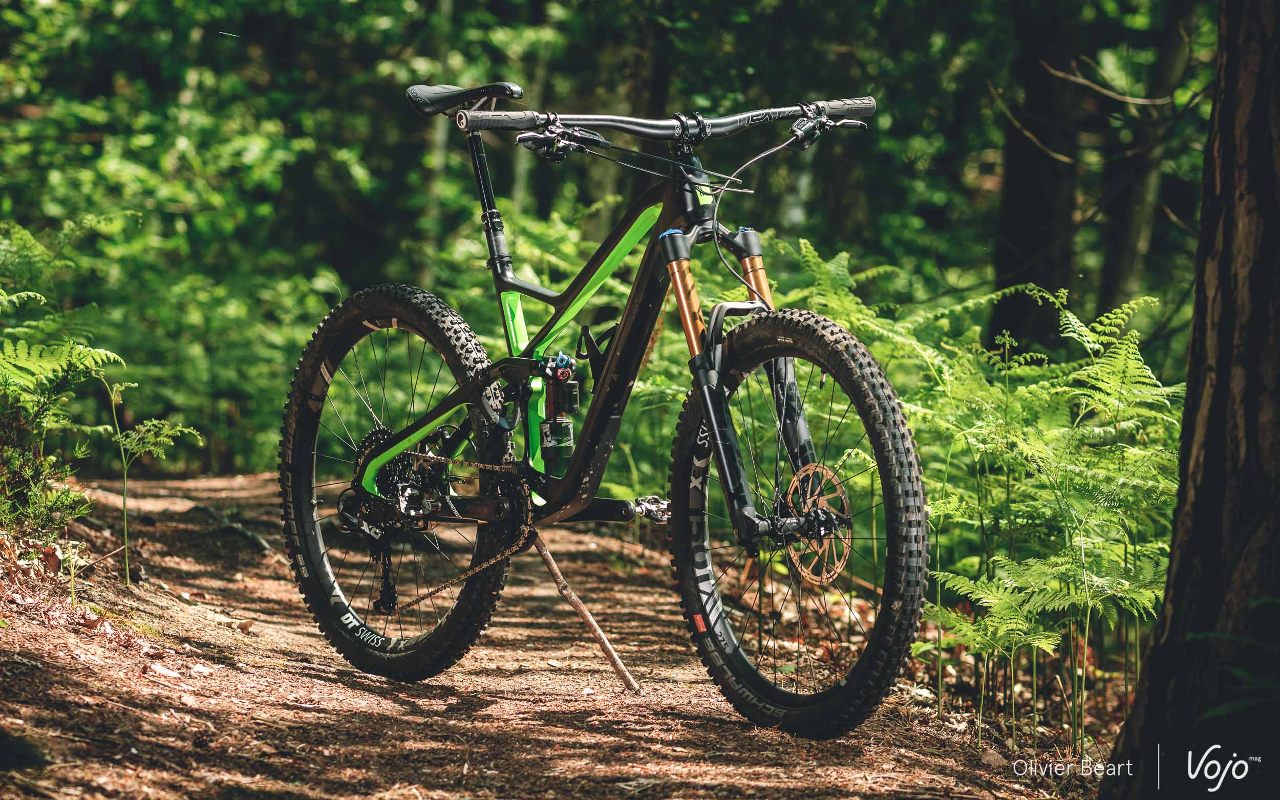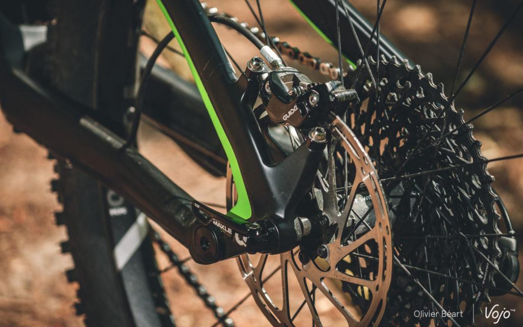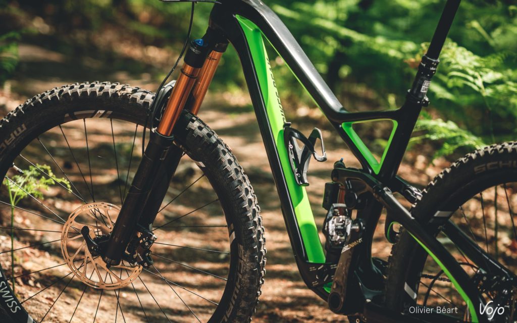 Cette version équipée en Sram XO et d’à peu près tout ce qui se fait de mieux reste affichée à un tarif canon de 4599€ ! Pas mal, quand on voit que les modèles haut de gamme de bien d’autres marques dépassent allègrement les 7000€. Le modèle en XT est à 3599€, celui en GX Eagle à 3299€ et 3199€ en SLX. Avec toujours, bien entendu, la possibilité de changer presque chaque équipement grâce au configurateur, si on souhaite améliorer certains postes. A noter que, pour 2019, peu de choses changent sur la version que nous avons testée, mis à part la couleur verte qui est remplacée par du rouge/orange et quelques changements de périphériques.