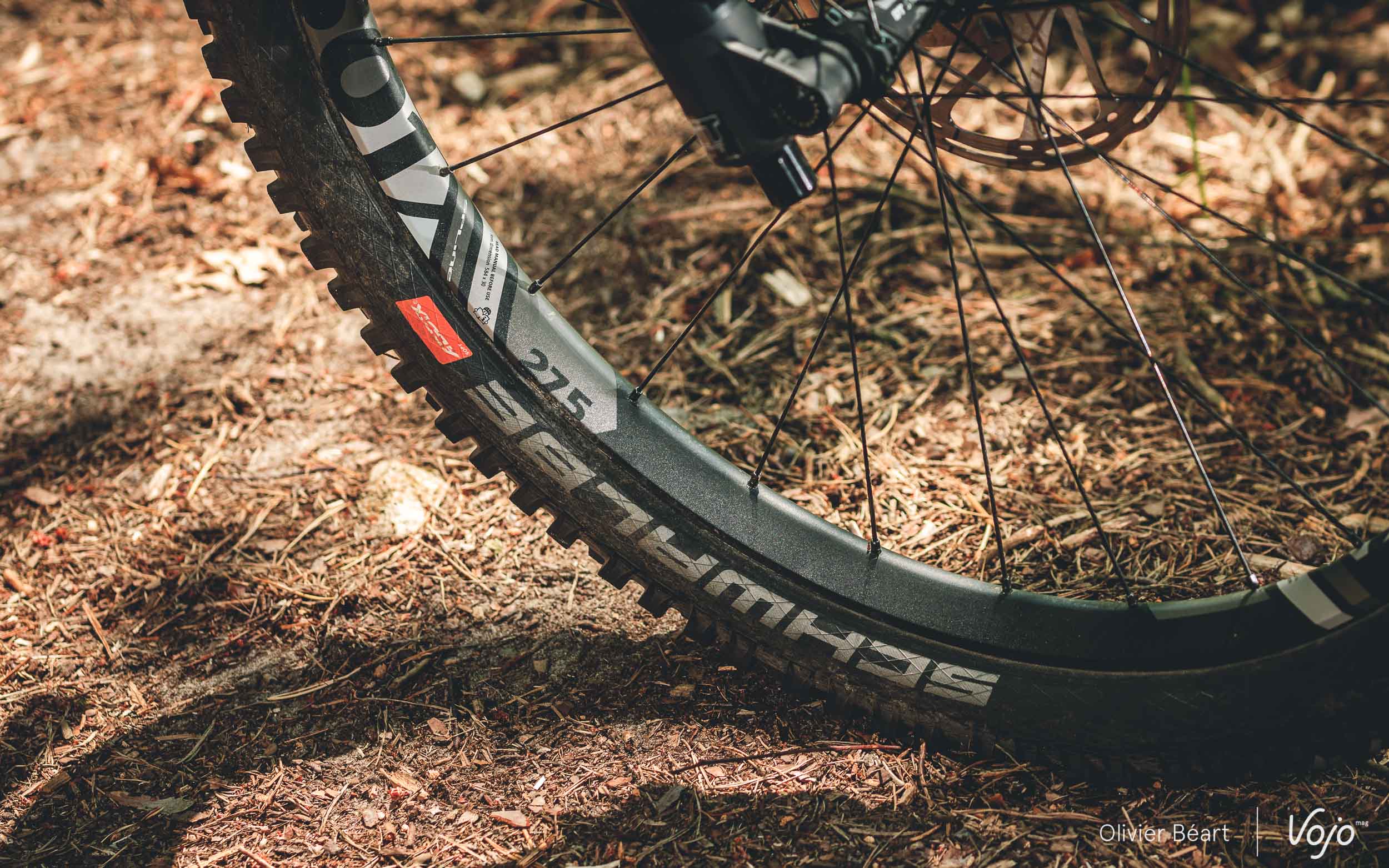 La tendance est au 29 pouces, mais le Rose Pikes Peak reste en 27,5″, et cela lui va plutôt bien. Dans cette version haut de gamme, on bénéficie des excellentes roues DT Swiss 1501 en 30mm de large avec des pneus Schwalbe Magic Mary en gomme Addix soft devant et Hans Dampf Speedgrip derrière.