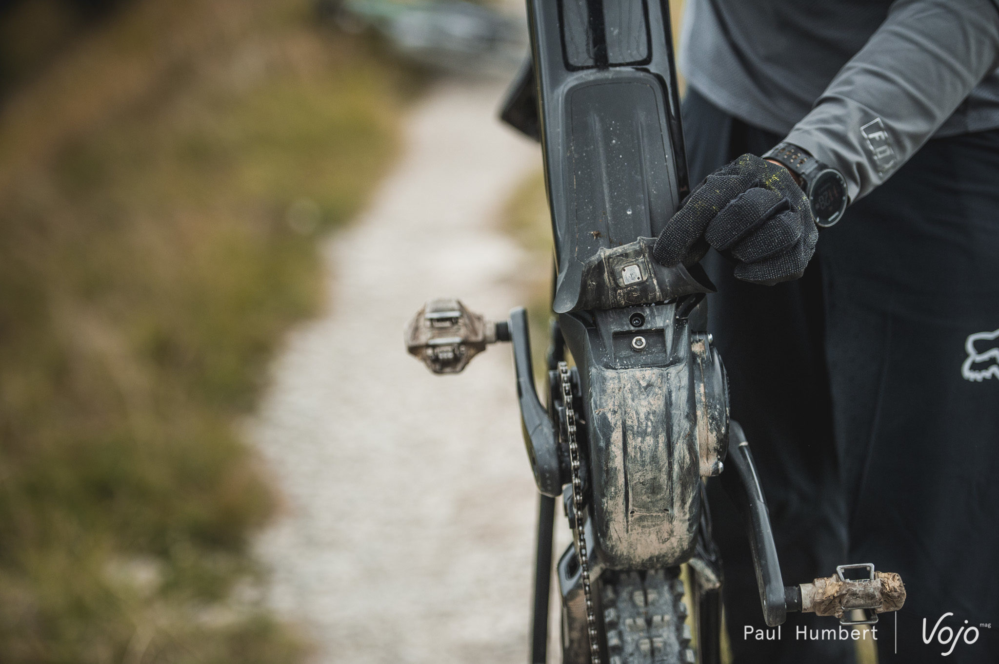 En regardant de plus près le vélo, on s’aperçoit que les passages des gaines ont été pensés en vue de faciliter l’entretien. Il n’est pas nécessaire de démonter le moteur pour accéder à la Durit de frein ou à la gaine du dérailleur arrière : elles sortent du cadre un peu plus tôt pour passer dans la biellette inférieure avant de rejoindre les bases.