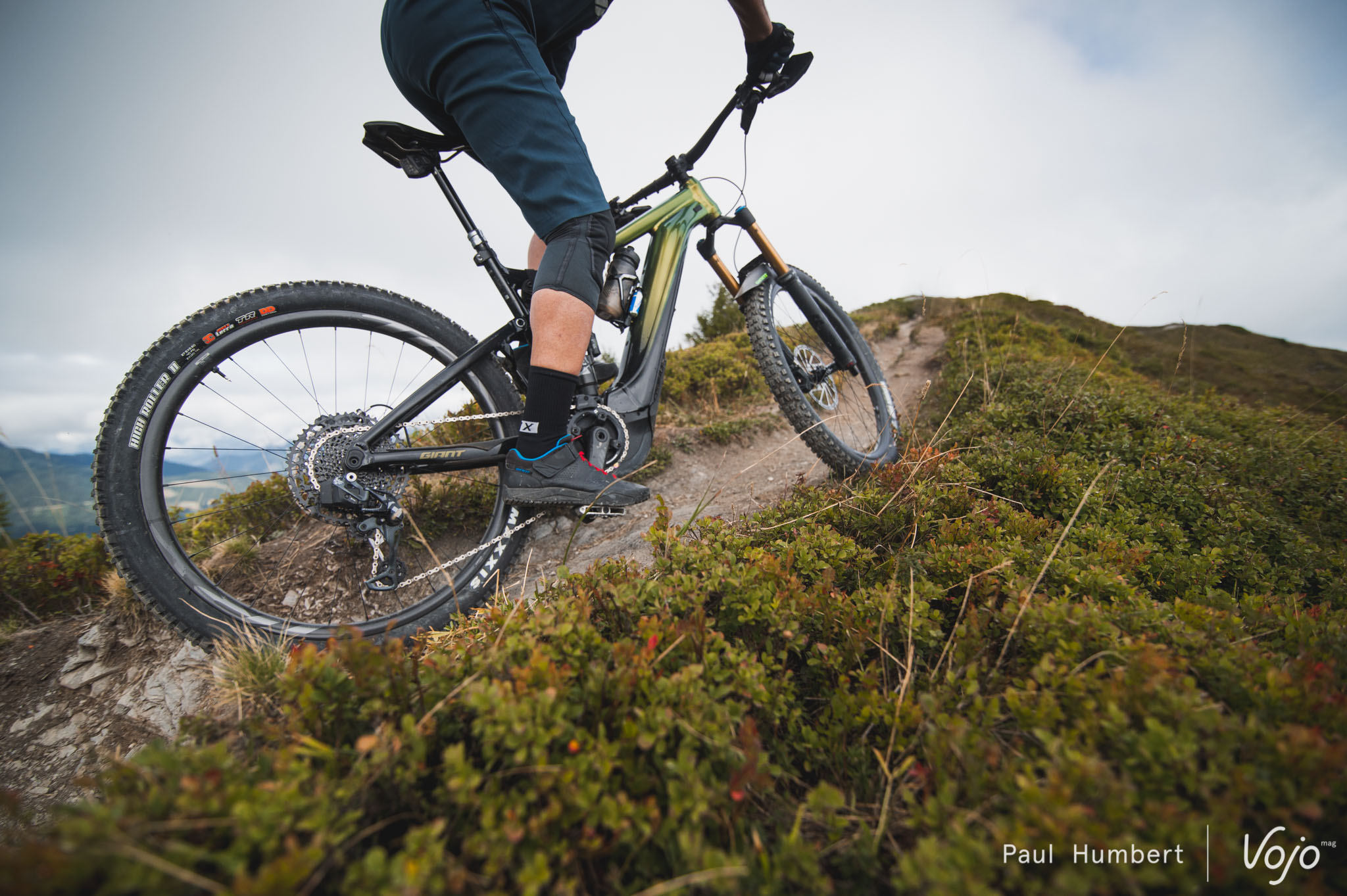 Si le Reign classique est passée aux roues de 29″ pour 2020, Giant est resté sur du 27,5 x 2,6 pour la version à assistance électrique. Ce sont des roues « maison », en aluminium sur les deux premiers modèles et en carbone sur la version la plus haut de gamme. Le pneu avant est un Maxxis DHF II en carcasse EXO+ tandis que le pneu arrière est un Maxxis High Roller II en carcasse DoubleDown, plus lourde mais plus solide et particulièrement adaptée en monte arrière sur un e-bike.