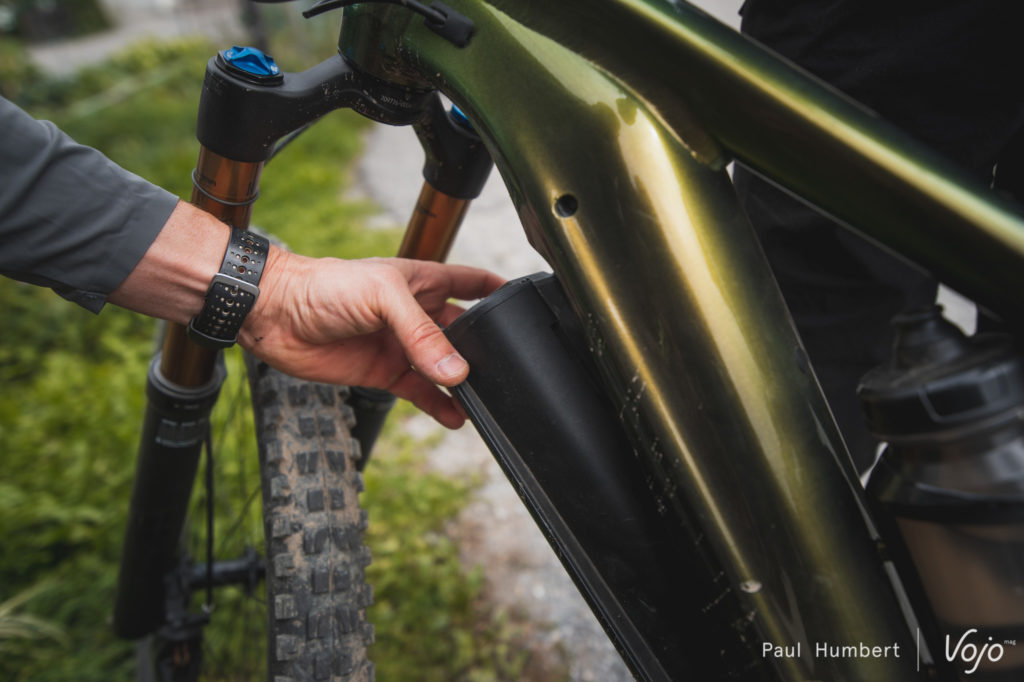Contrairement aux batteries Bosch, pour ne citer qu’elles, celle du Giant Reign E+ s’enlève sans clé spécifique. Seule une petite clé Torx T25, telle qu’on en trouve sur la plupart des multi-outils, est nécessaire.