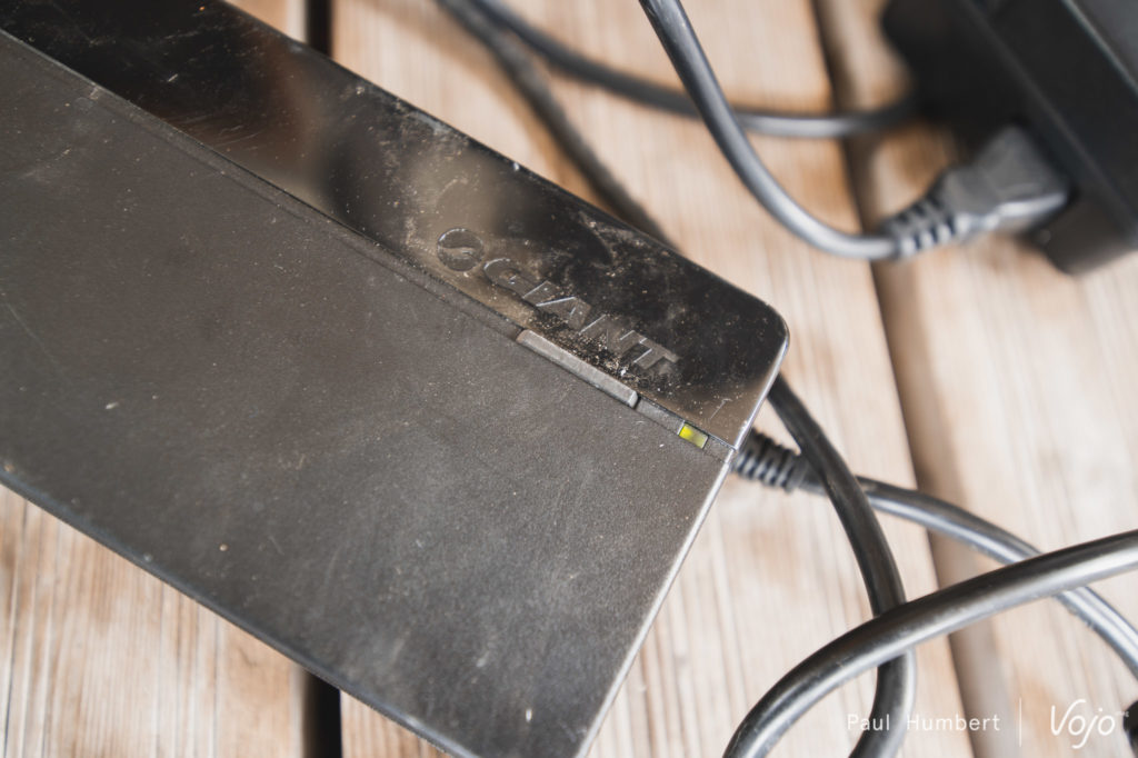 La batterie a une capacité de 500 Wh et le vélo peut accepter une petite batterie supplémentaire de 250 Wh à la place du porte-bidon. Elle se recharge à 60 % en 1 heure seulement grâce à un chargeur spécifique. Ledit chargeur dispose par ailleurs d’un mode qui permet de conserver la batterie à 60 % de charge en permanence, pour la stocker sans l’user prématurément.