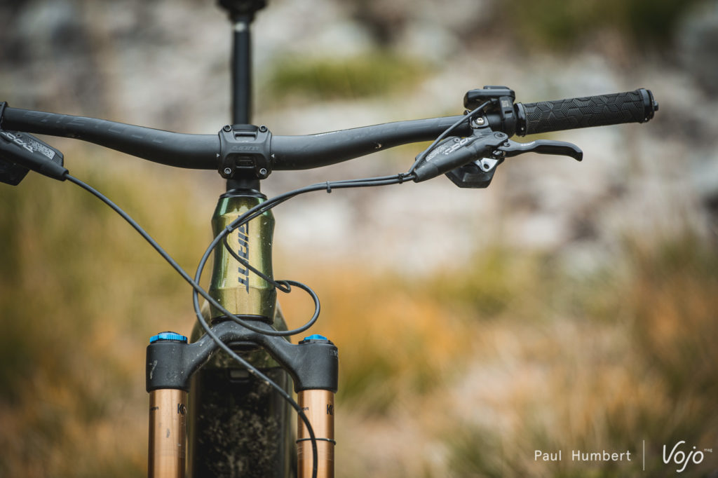 En descente, notre premier testeur a fait le chemin inverse en échangeant la potence d’origine en 40 mm pour une version en 60 mm. On récupère alors ce qui nous manquait en stabilité lorsque la vitesse augmente, sans perdre en maniabilité dans le technique.