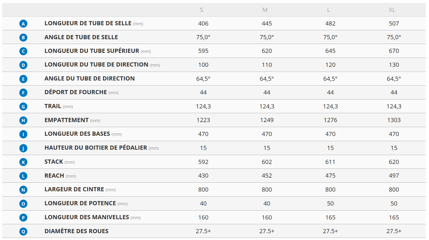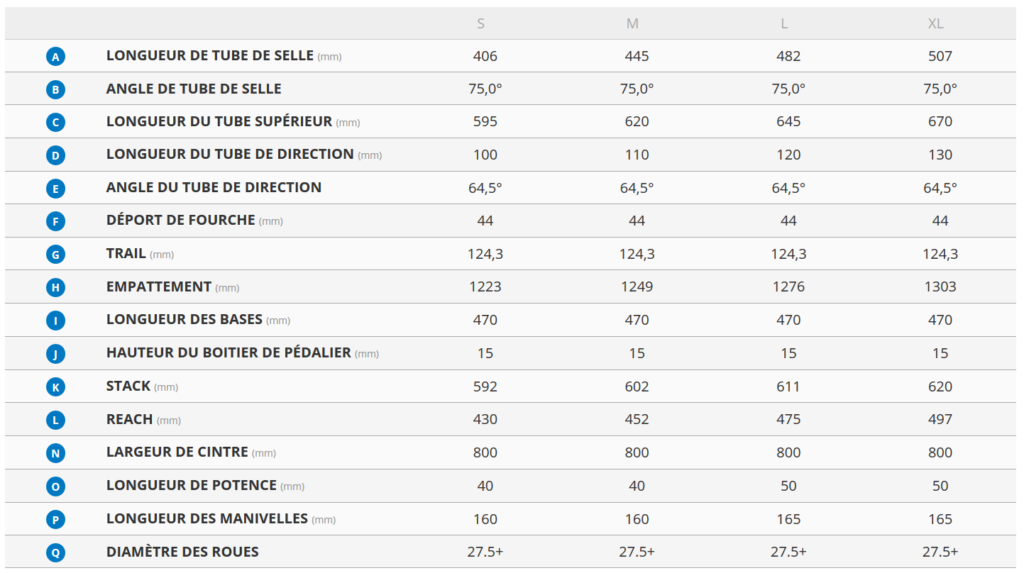 La géométrie est à l’image de l’équipement : tourné vers la descente. On retrouve ainsi un angle de direction couché, des bases longues (même pour un e-bike) pour la stabilité et un reach relativement long pour un VTT AE. En effet, ces derniers ont souvent tendance à avoir une position un peu plus droite que les vélos « classiques », mais point de cela chez Giant : en taille M, le Reign E+ a ainsi presque le même reach que le Reign (452 vs 455 mm). La taille L est un peu plus courte, avec 475 mm contre 493 mm sur le Reign sans assistance.