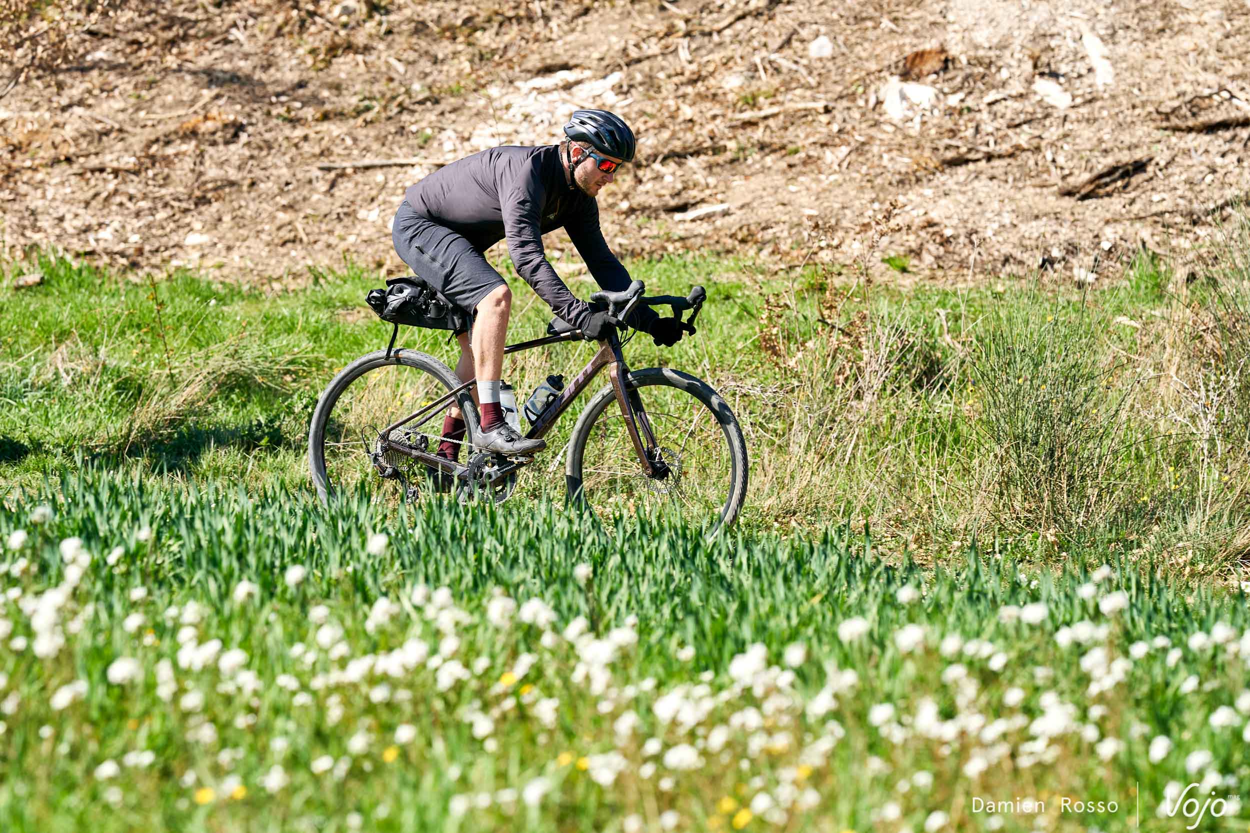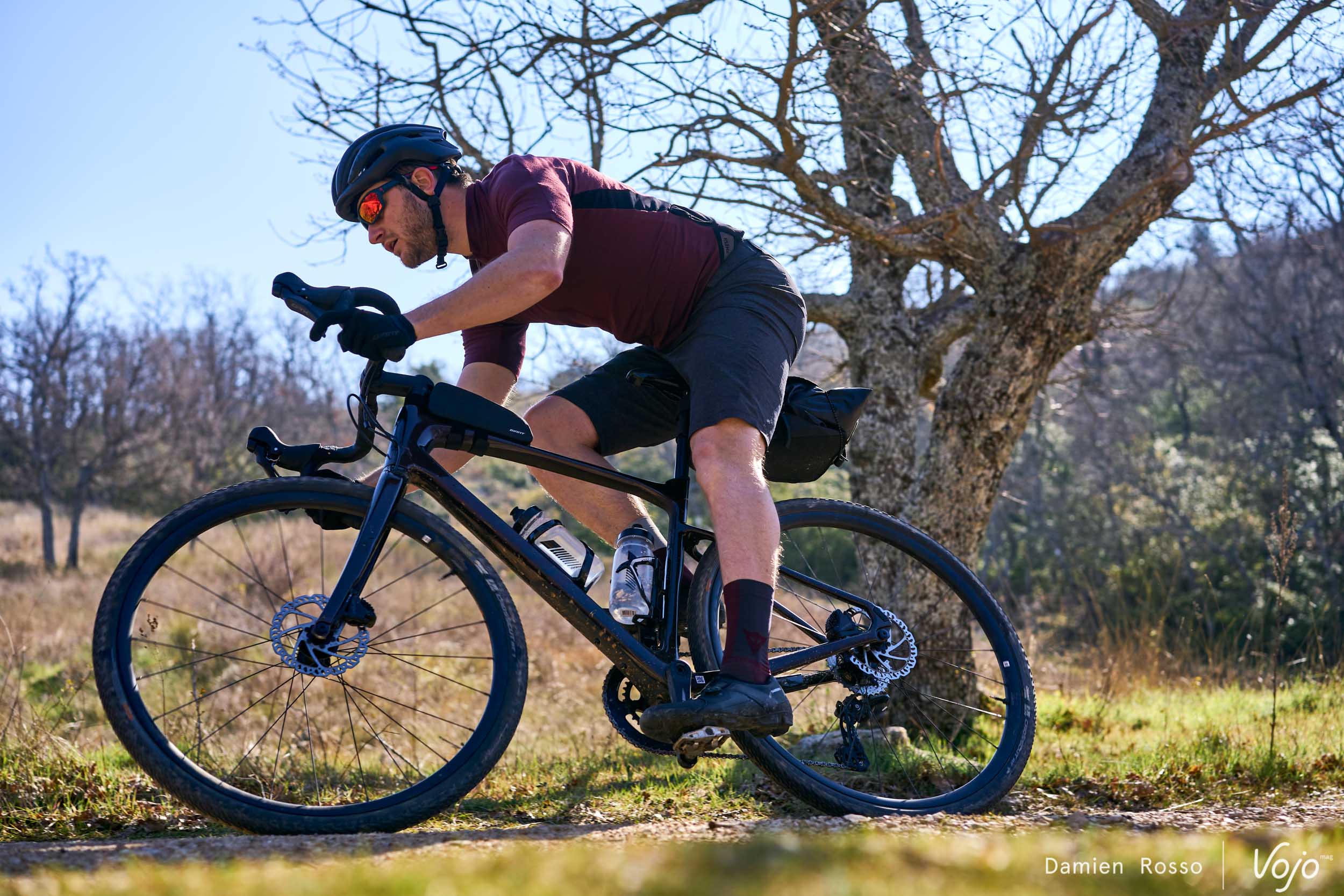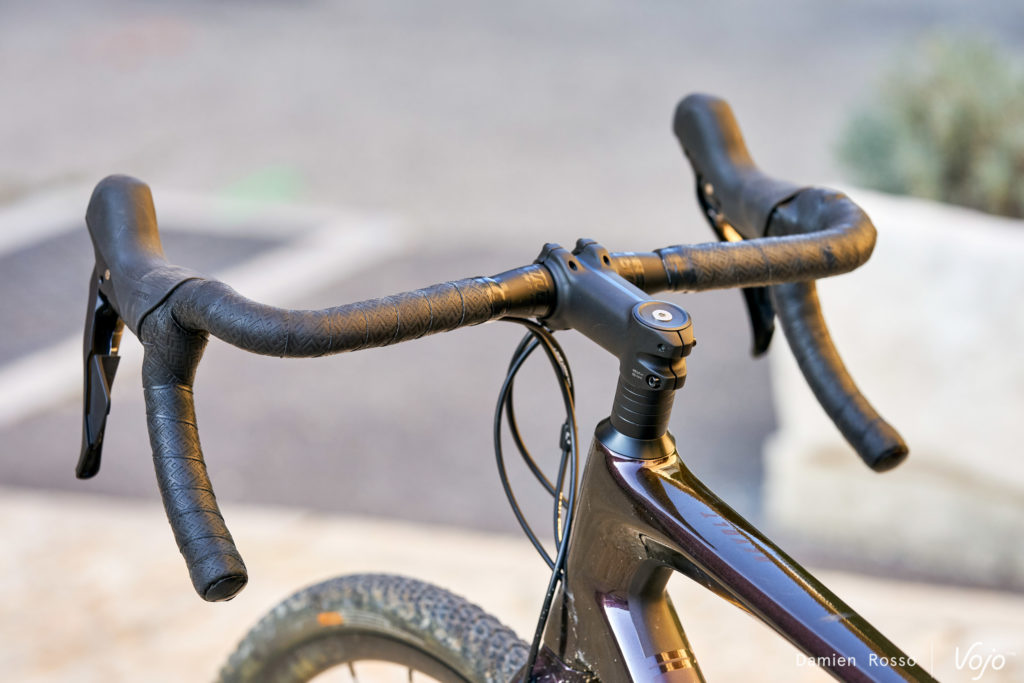 La position joue dans le même registre, celui de l’équilibre. On n’est clairement pas nez dans le guidon, mais pas non plus assis nez au vent. On sent que les appuis sont parfaitement équilibrés entre la selle et les bras, ce qui est particulièrement appréciable pour un usage au long cours. Et toutes les positions sur le cintre sont vraiment utilisables, y compris les mains en bas, ce qui n’est pas toujours le cas surtout quand on a un background de pur vététiste.