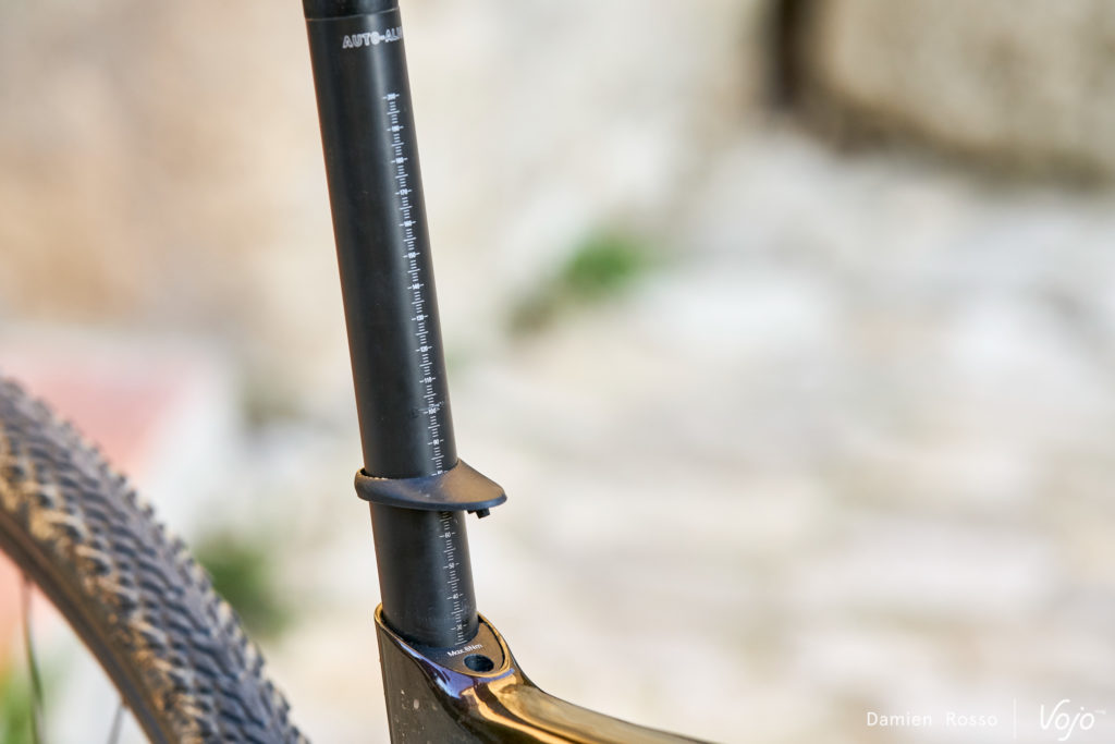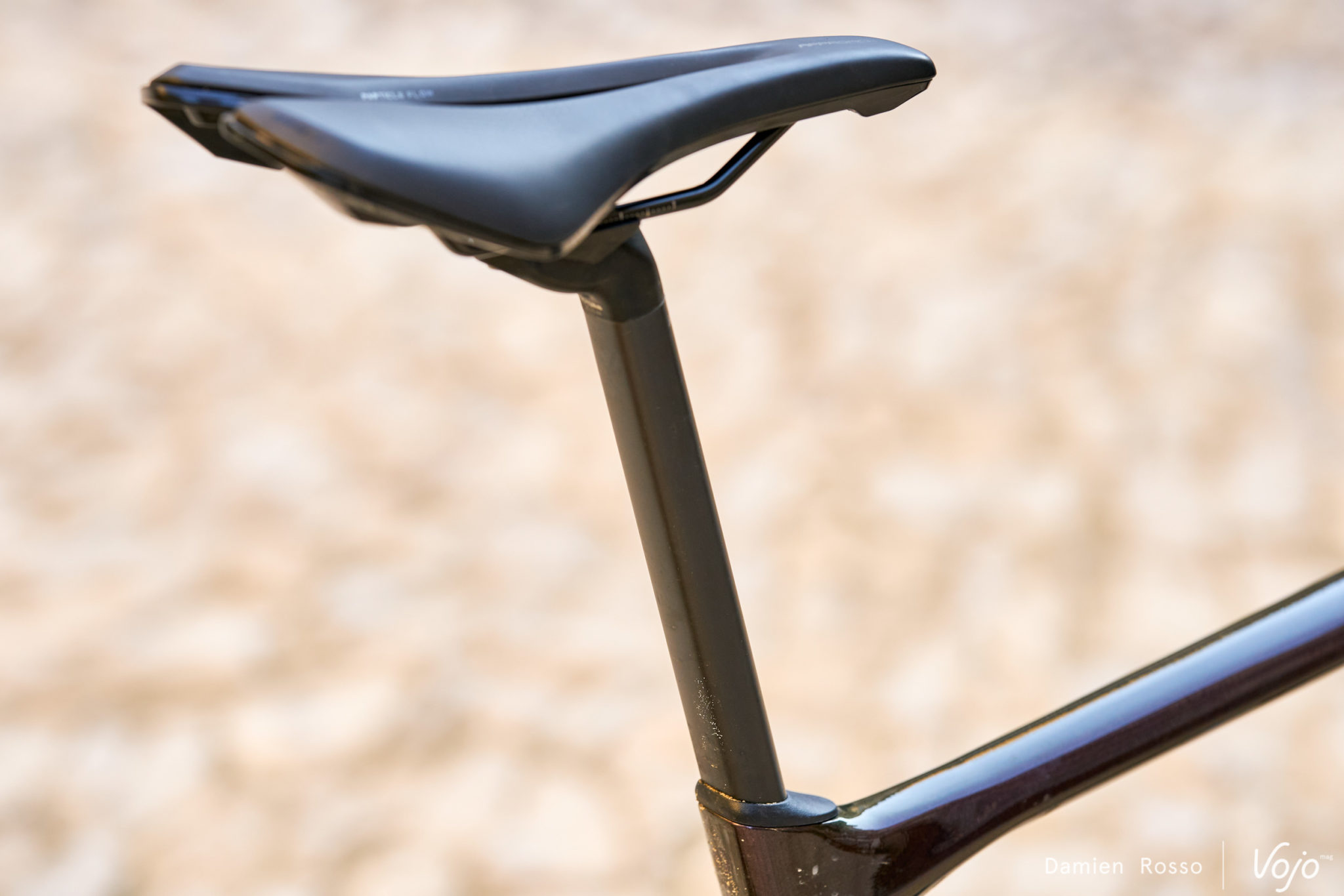 Le sentiment qui prédomine dès le départ, c’est celui d’un vélo très confortable. L’arrière filtre particulièrement bien les petits impacts et les vibrations. La tige de selle offre un flex agréable et très bien contrôlé, mais elle n’est pas seule : le cadre joue aussi un rôle majeur dans cette sensation. Du coup, il n’y a pas de déséquilibre dans les sensations quand on est en position assise ou debout. Sur certains vélos qui jouent uniquement sur le tube de selle pour l’amorti, on peut se retrouver avec un tout autre visage dès qu’on se lève sur les pédales. Du coup le vélo peut s’avérer délicat en descente, ce qui n’est pas le cas ici.