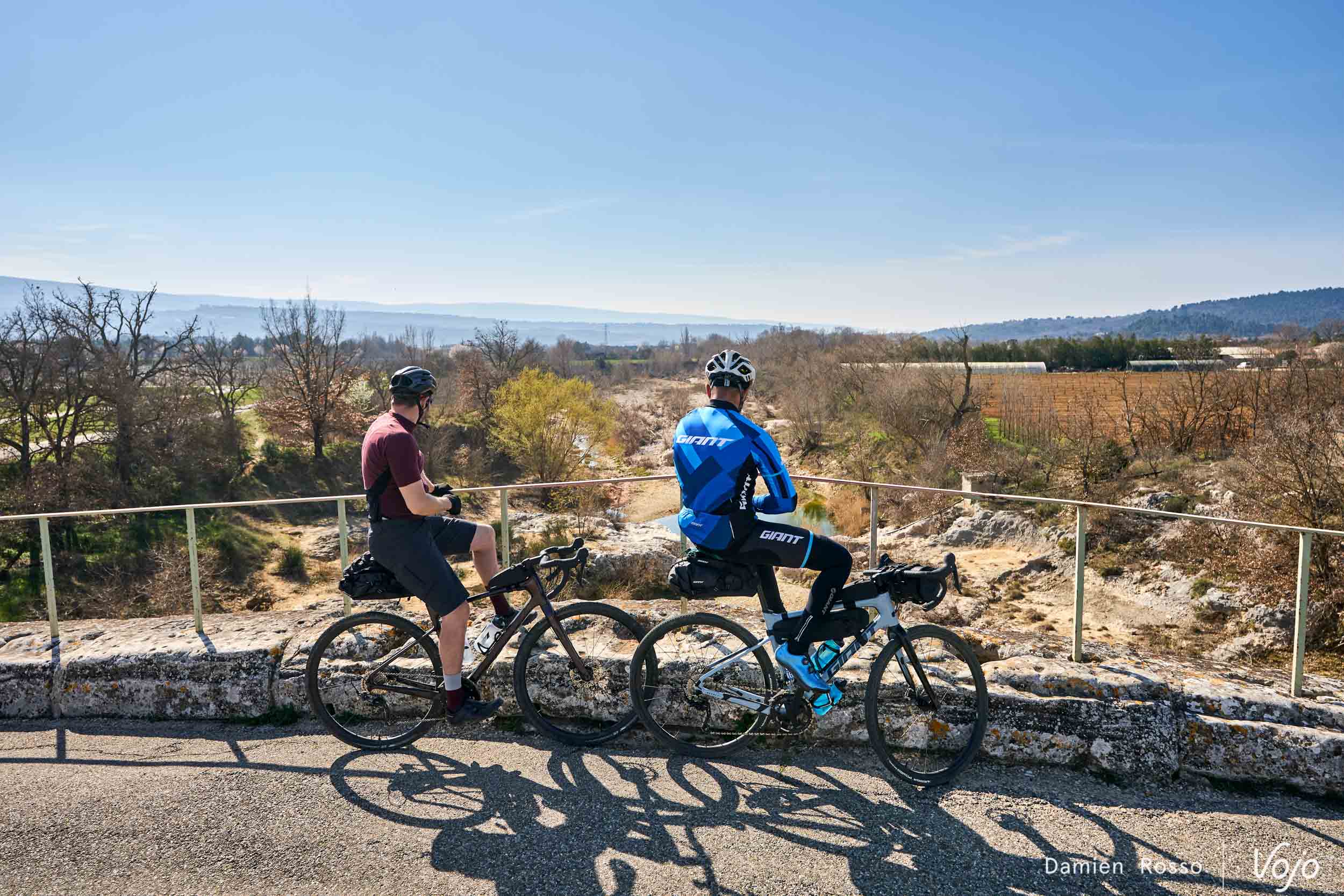 Avant d’en dire plus sur le vélo, plantons le contexte : nous avons réalisé cette prise en main à l’occasion d’un mini trip de deux jours lors duquel nous avons fait le tour du Luberon en compagnie de Fabrice Laugier de Giant France et du photographe Damien Rosso, qui est par ailleurs originaire de la région. En plus de découvrir ce magnifique coin en mode gravel (voir ici notre reportage complet et la trace GPS de notre itinéraire), nous en avons profité pour faire d’une pierre deux coups et réaliser une prise en main du Giant Revolt Advanced 2 que vous avez sous les yeux.