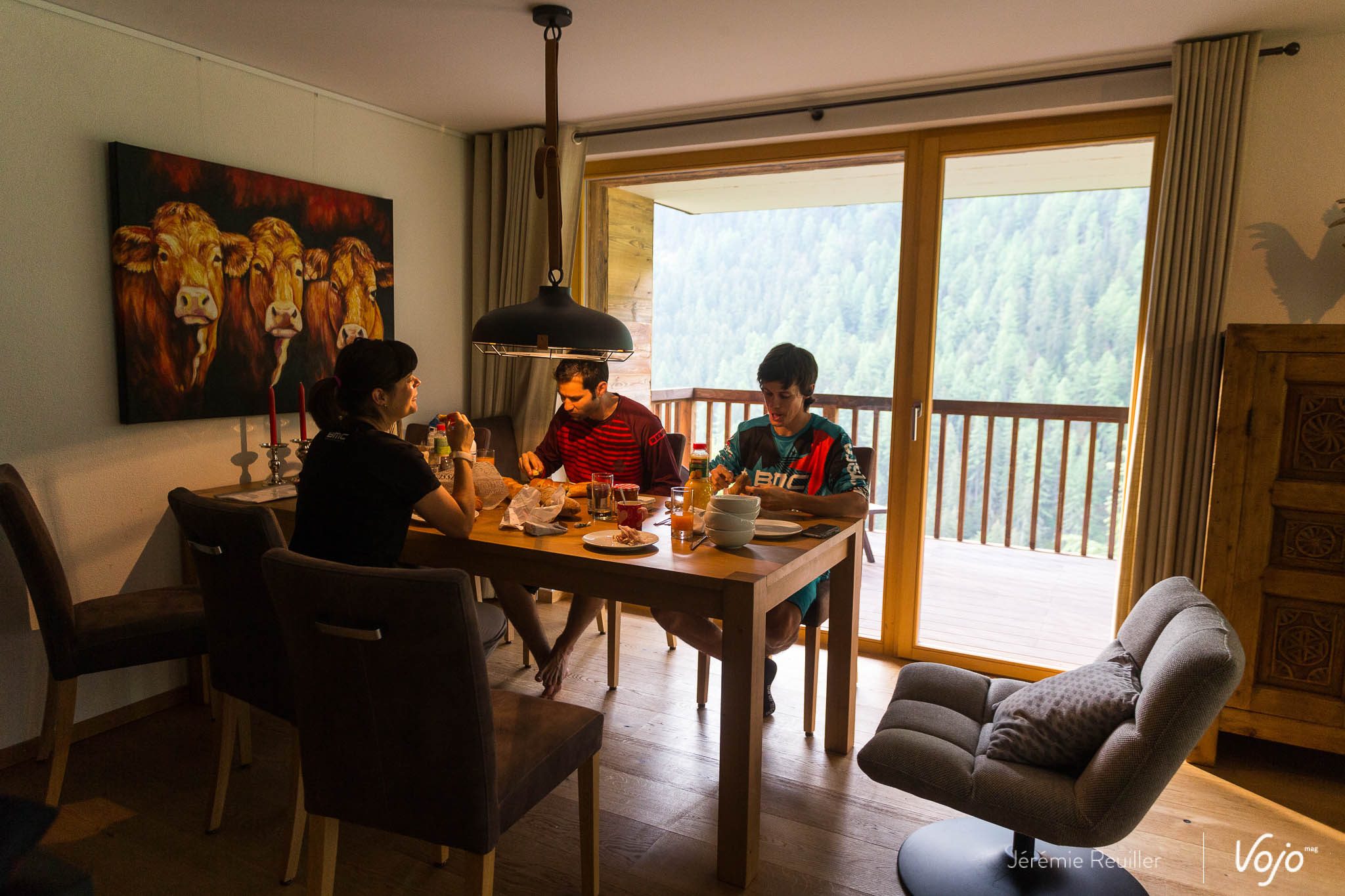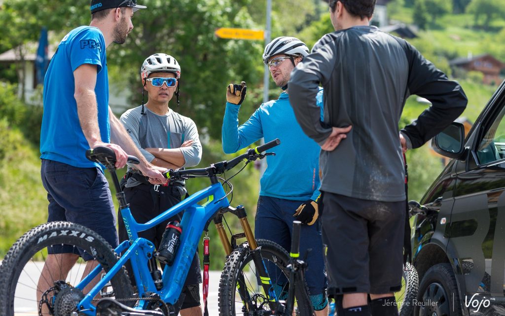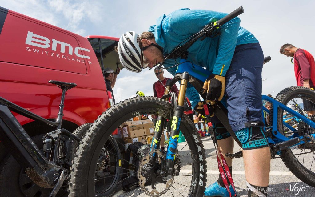 Après un petit déjeuner copieux dans les agréables chalets « Les Rahas » en compagnie de l’équipe BMC et du pilote maison Ludo May, il est temps de procéder aux réglages de l’engin.