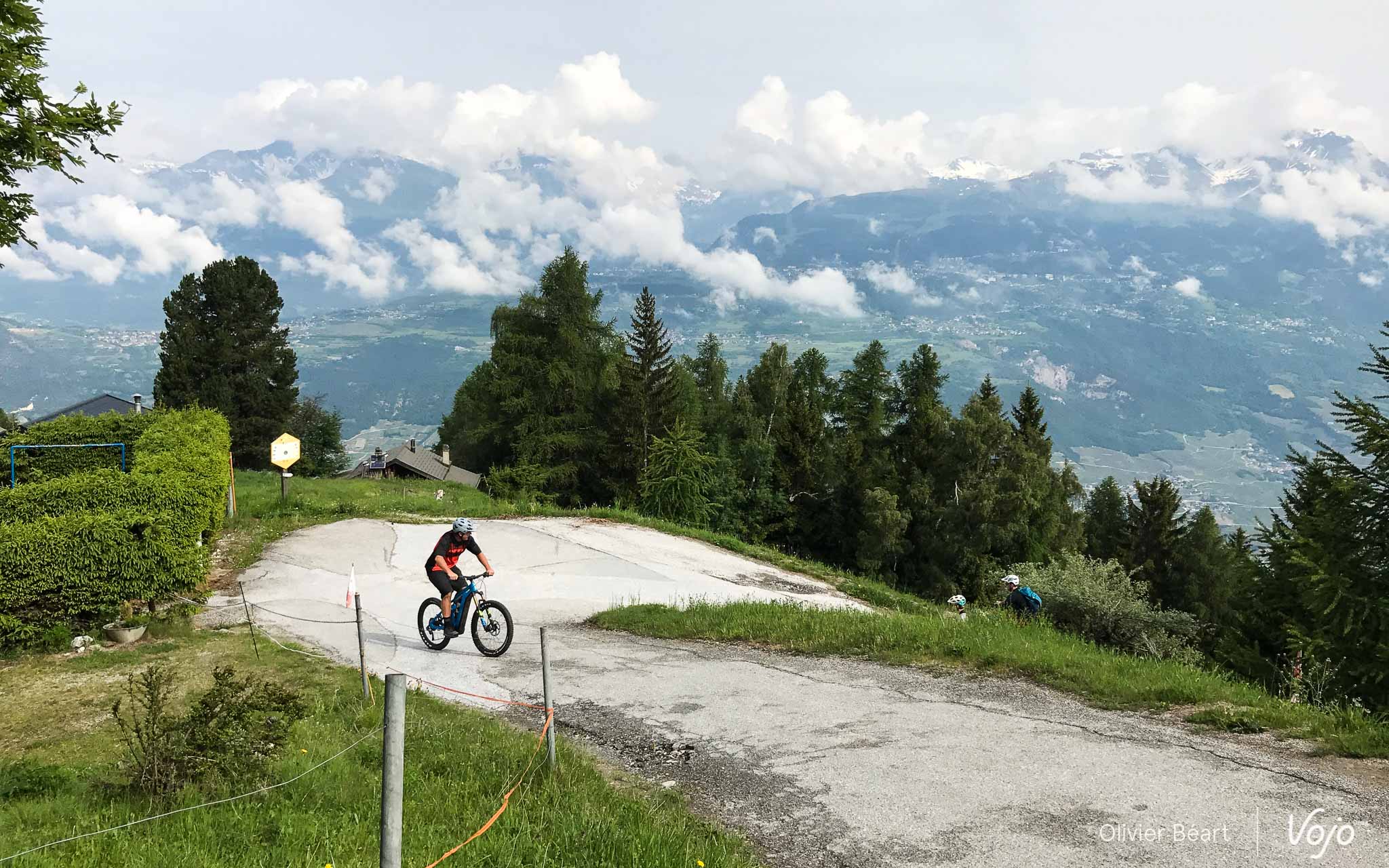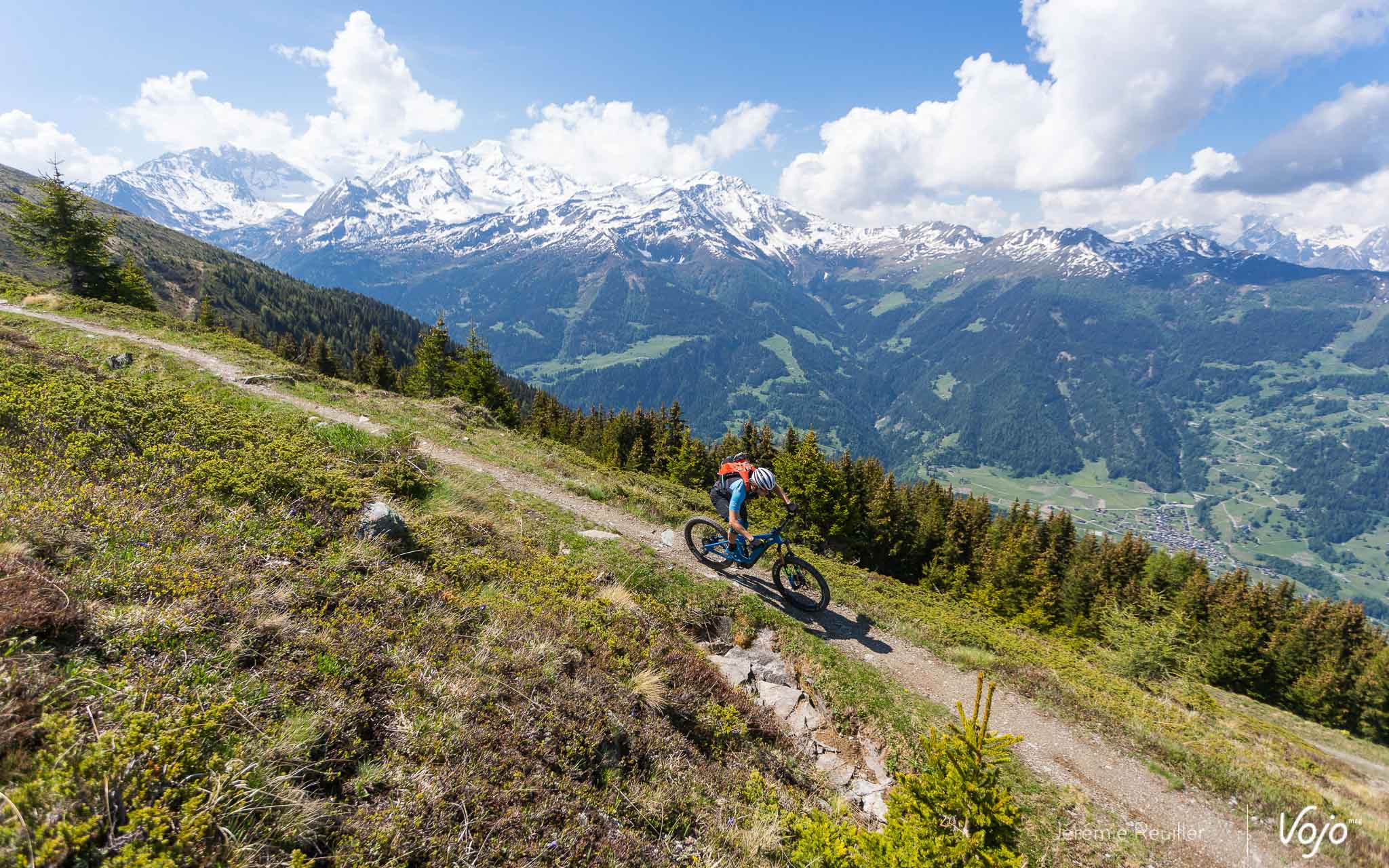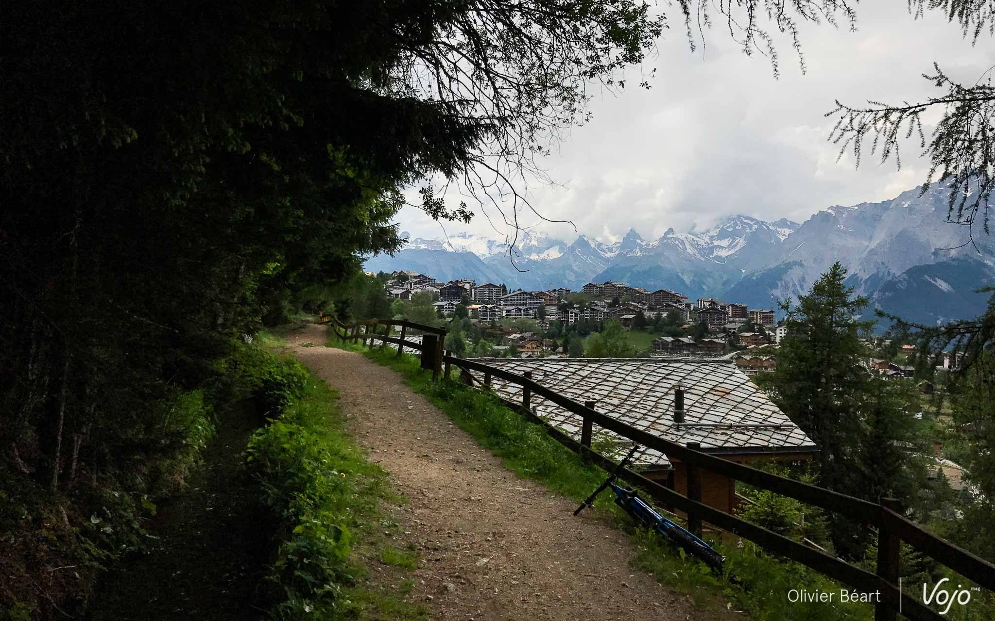 Le lendemain, juste avant notre départ, nous profitons du magnifique ciel bleu pour rejoindre les pistes permanentes du bike-park de Verbier. Les remontées mécaniques sont encore fermées, mais qu’importe, le moteur va nous permettre de rejoindre le sommet sans (trop) d’effort et surtout dans un timing compatible avec le départ de notre train en gare de Martigny.
