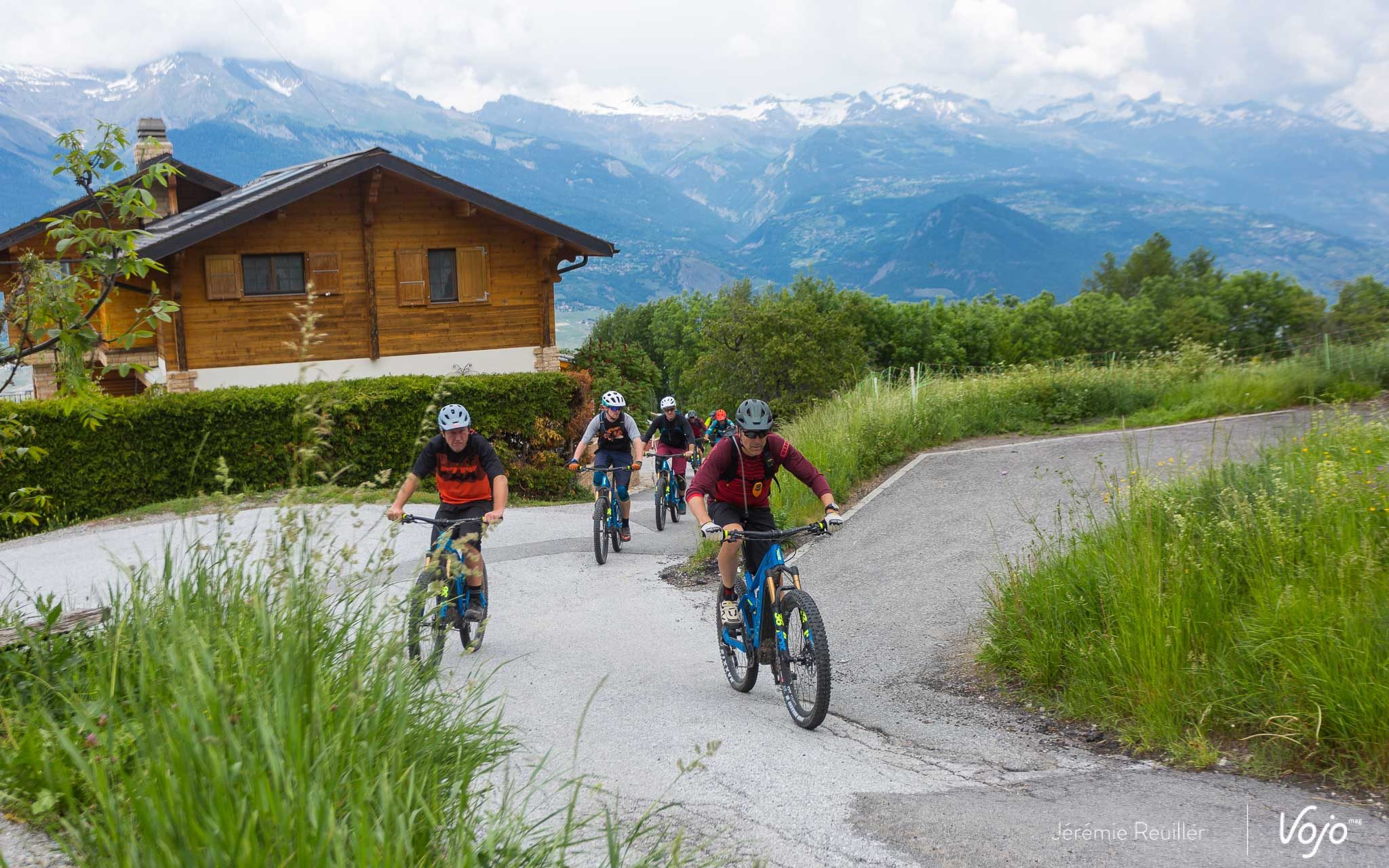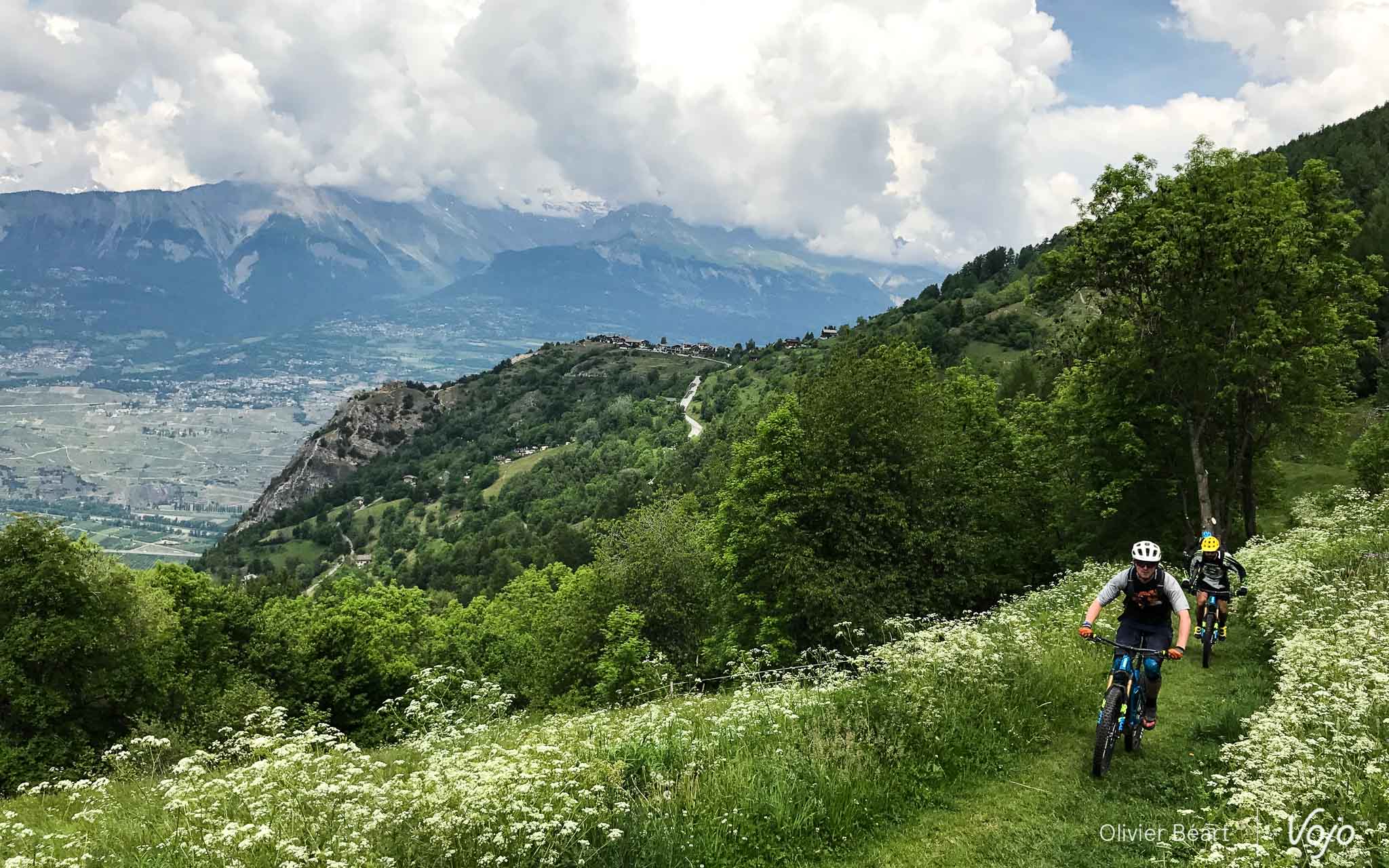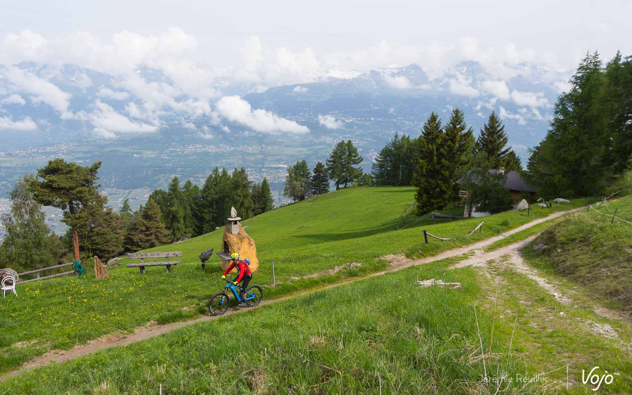 Le lendemain, juste avant notre départ, nous profitons du magnifique ciel bleu pour rejoindre les pistes permanentes du bike-park de Verbier. Les remontées mécaniques sont encore fermées, mais qu’importe, le moteur va nous permettre de rejoindre le sommet sans (trop) d’effort et surtout dans un timing compatible avec le départ de notre train en gare de Martigny.