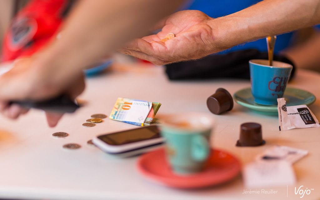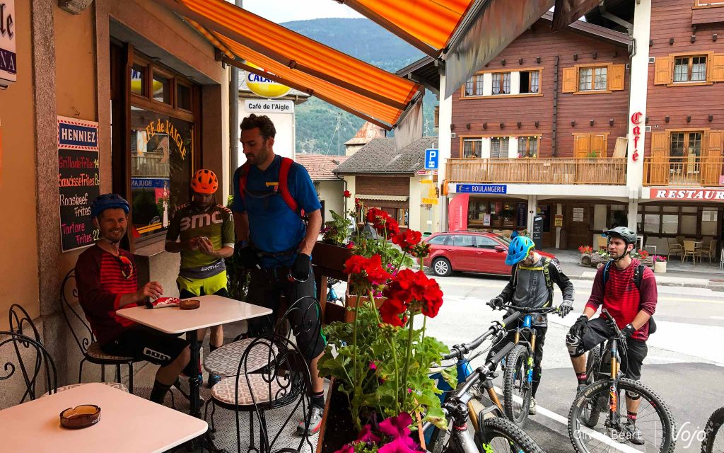 On connaît tous la fameuse inertie de groupe quand on sort entre potes. Dire qu’elle n’existe pas en vtt électrique serait malhonnête. La preuve, après une grosse ascension où on a un peu « tapé dans le moteur » (autant musculaire qu’électrique) avec quelques confrères et membres du staff BMC, on a le temps de prendre un petit café en terrasse en attendant le reste du groupe.