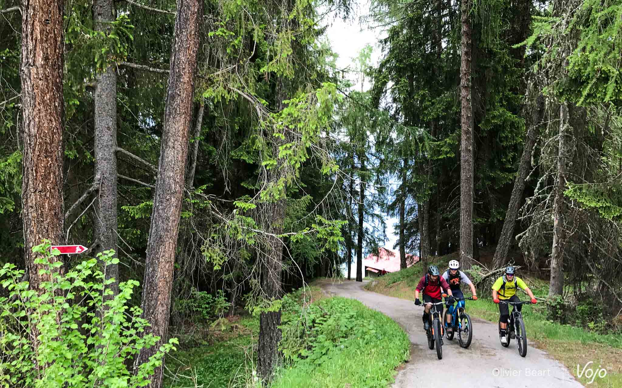 L’ascension est régulière et sur chemin large mais le ciel se couvre et on n’a pas trop envie de trainer, au risque de se faire rincer. Avec quelques confrères et le boss de BMC, on commence doucement à se taquiner et à placer de petites attaques. Le BMC Trailfox AMP répond franchement bien, de par son moteur, mais aussi grâce à son absence de pompage et à son cadre très dynamique pour un ebike. Un véritable pousse au crime !