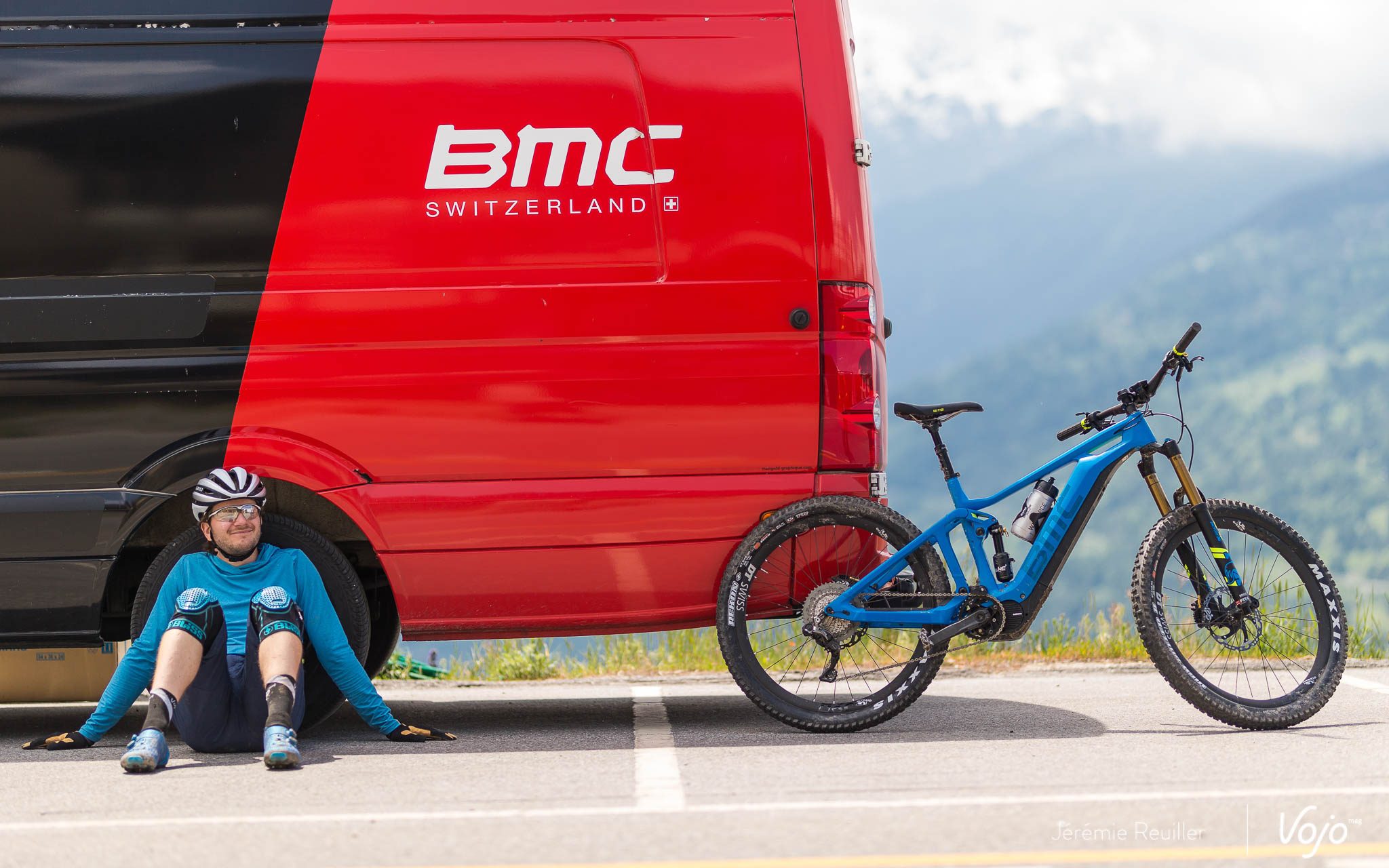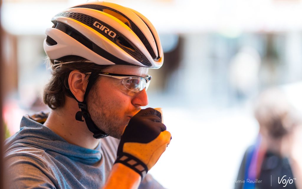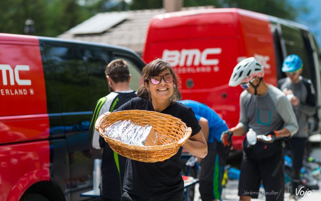 Après 35 bornes, place au ravitaillement. Toute l’équipe BMC nous attend au bord d’une route dans un petit village perché.