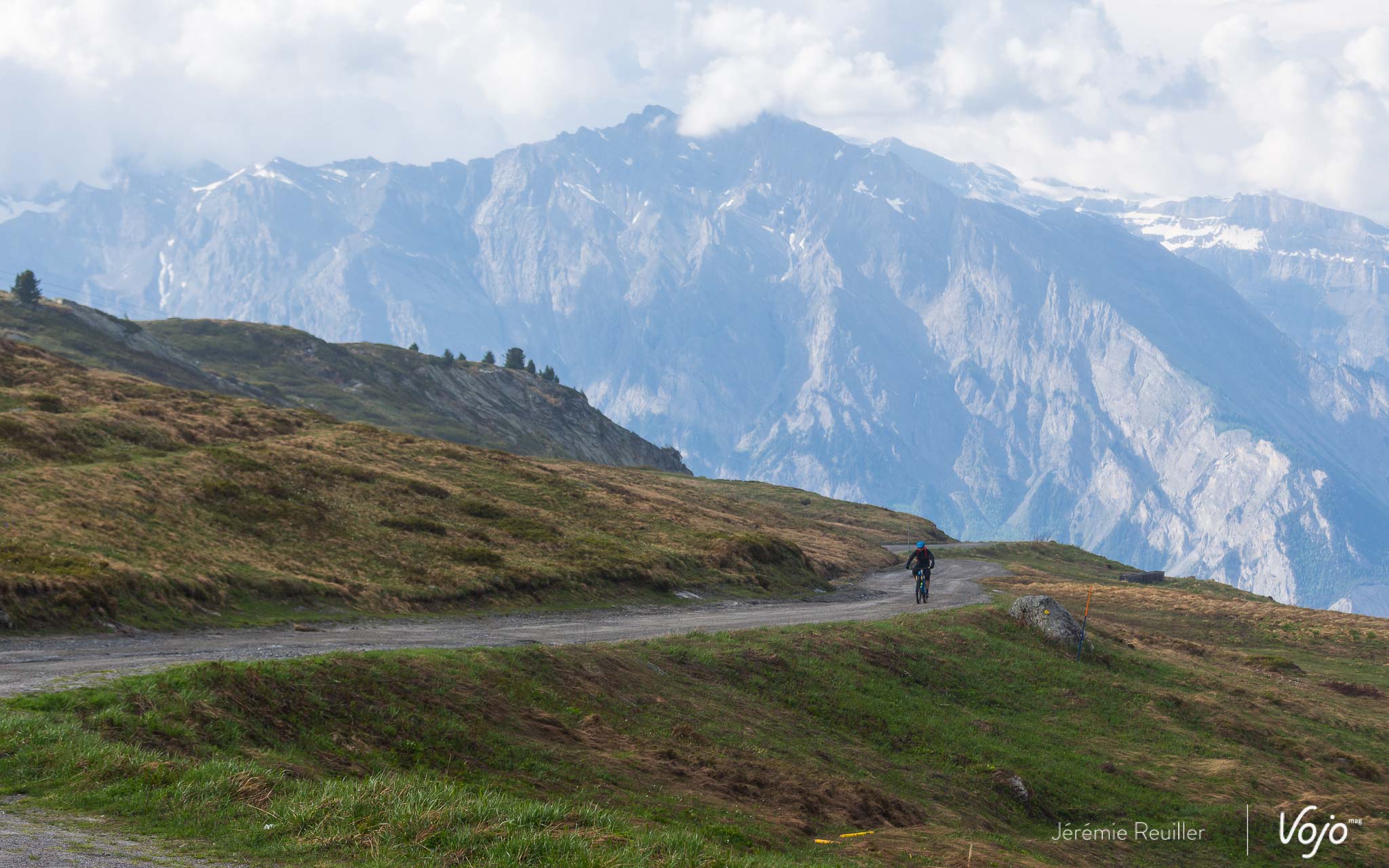 Plus que quelques kilomètres de plat et on voit le bout du tunnel (ici littéralement avec ce passage sous la roche sur les hauteurs de Verbier, que les participants du Grand Raid connaissent bien). Même sans moteur, le BMC Trailfox AMP roule vraiment bien ! Il n’y a pas de frottements sur le moteur Shimano et le plateau de 34 dents avec la cassette 11/46 permettent de grimper sans trop de mal les derniers petits coups de cul au programme. J’apprécie aussi le confort du vélo, qui sait se transformer en petit sofa quand le pilote n’a plus envie de se lever et de faire jouer le corps à chaque obstacle.