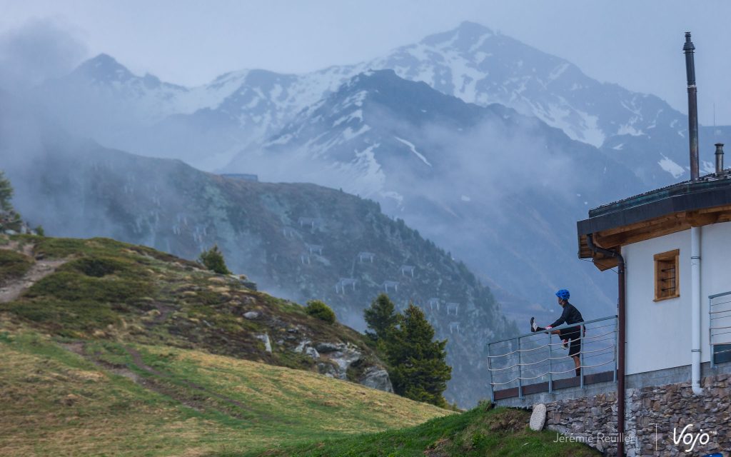 On vient de changer une deuxième fois de batterie, mais pas pour en récupérer une nouvelle. On reprend une de celles laissées au premier ravitaillement, avec 3 barres… ou plutôt 2,5 dans mon cas, mais ça je ne le saurai qu’après quelques kilomètres. Verbier est de l’autre côté de la montagne, mais il reste une quinzaine de bornes et 700m de D+ à se farcir.