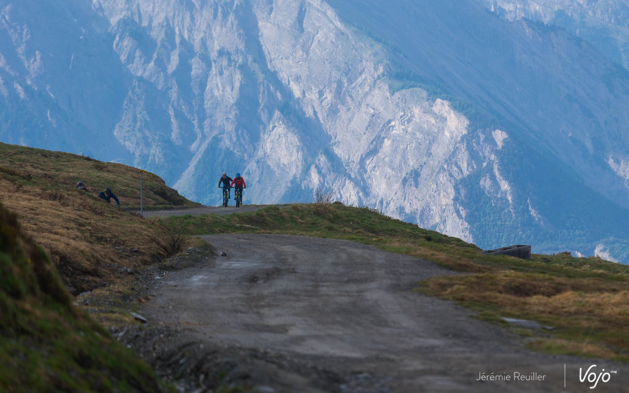 De là haut, la vue est sublime. Pendant que Jérémie Reuiller, le photographe de ce trip, s’en donne à coeur-joie et shoote à tout va, j’en profite pour me reposer un peu à l’écart en attendant mon tour pour changer de batterie. Car même si le vélo électrique est bien une manière assistée de faire du vélo, il ne faut pas croire qu’on ne se donne pas physiquement et que c’est de tout repos !