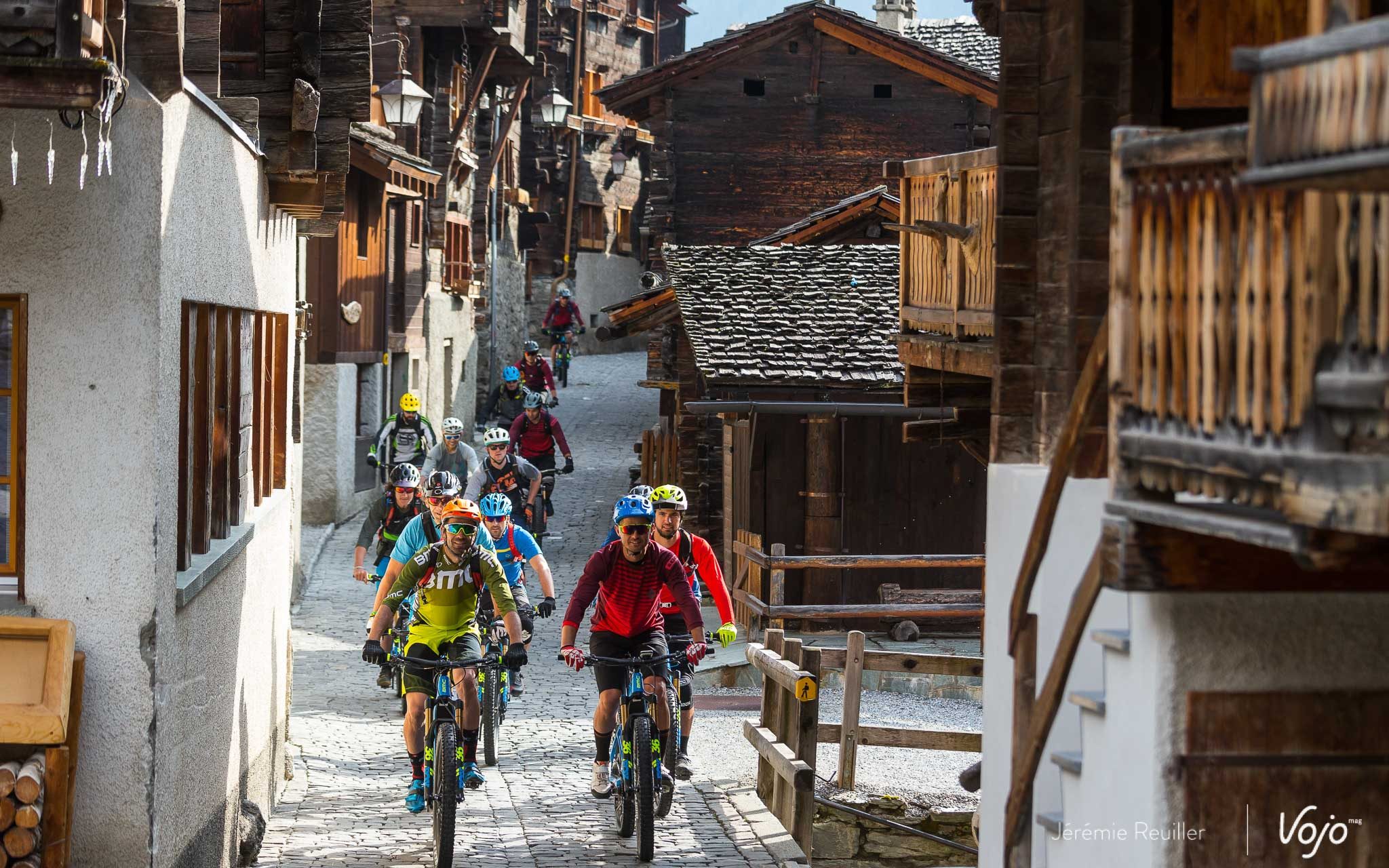 Une fois que toute la troupe est prête, il est temps de se mettre en route car la journée va être longue. Dans les ruelles du centre du village, on avance à pas de loup. C’est l’occasion de manipuler un peu les modes offerts par le moteur Shimano. Eco convient parfaitement ici, mais il va vite se montrer un peu faiblard par la suite. En Trail, c’est la main de fer dans un gant de velours. On adore ! Par contre, en Boost, c’est la main de fer tout court qui vous colle des baffes. Et à part pour jouer de temps en temps, c’est too much.