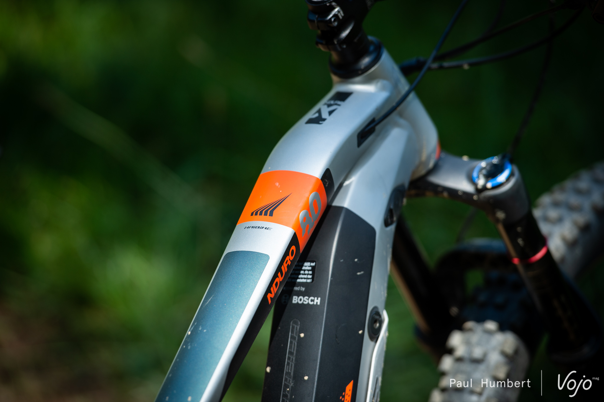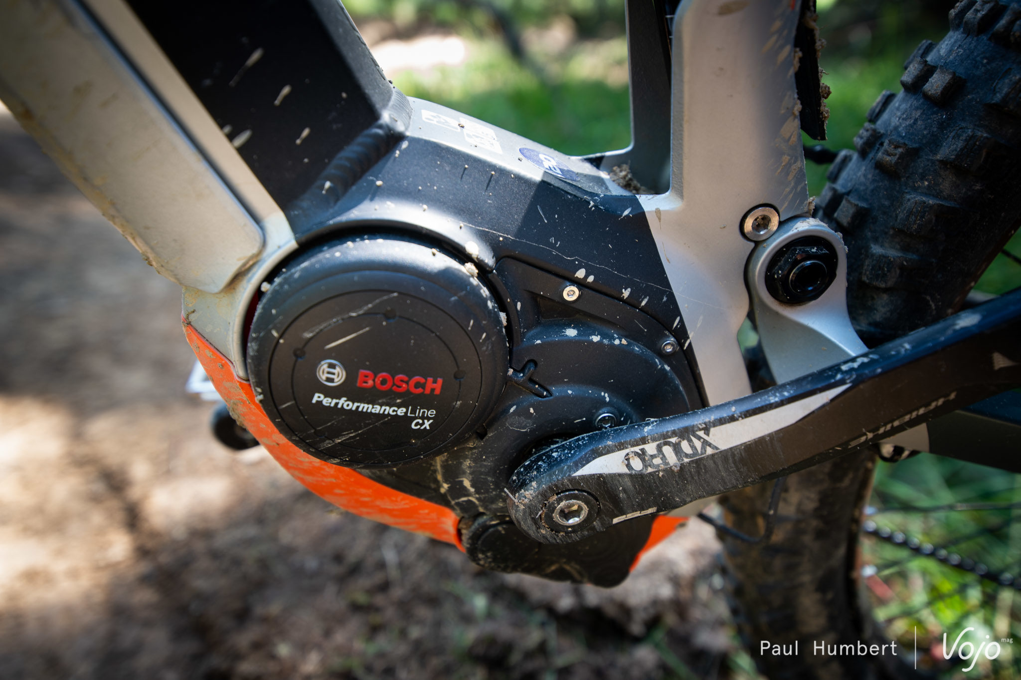 Dans les épingles, le vélo tourne vraiment bien et la gestion du moteur Bosch que l’on connaît bien continue d’être simple, et tout particulièrement en mode « E-MTB ». Quand on grimpe, le vélo est là encore au rendez-vous. Ni trop court, ni trop long, il offre de belles qualités de traction et s’en sort bien.