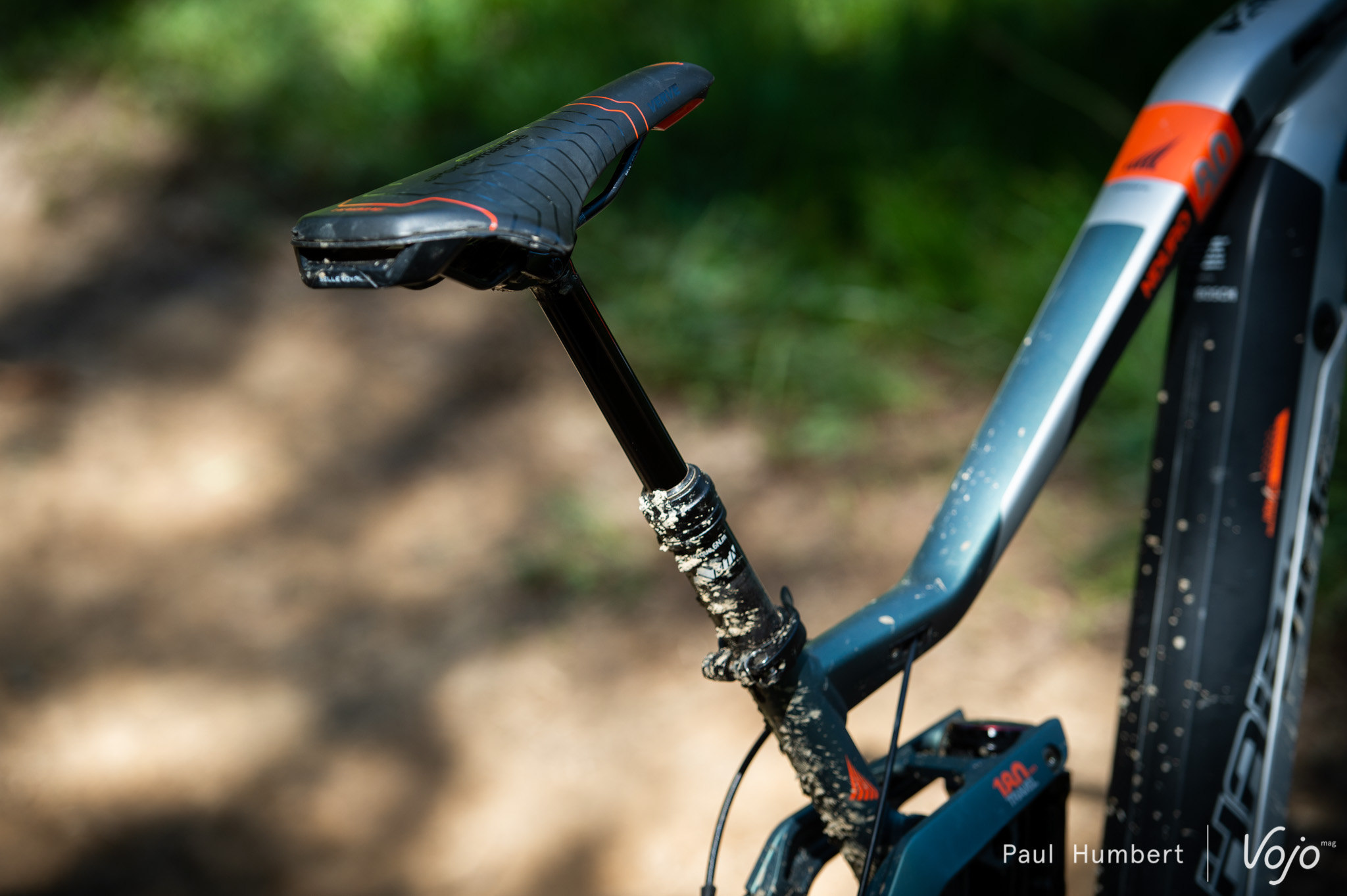 La selle Royal Verve est confortable mais ses flancs assez durs laissent parfois des marques après de longues journées de vélo. La tige de selle XLC fonctionne bien mais l’ergonomie de sa commande, ou son placement sur le cintre, pourrait être optimisée. On se pose également la question de l’utilité d’un collier de selle rapide pour un modèle télescopique.