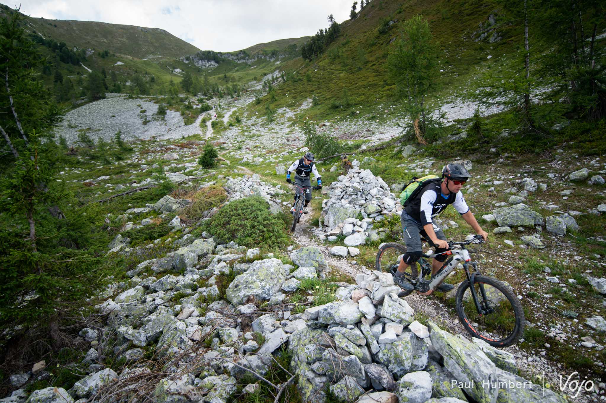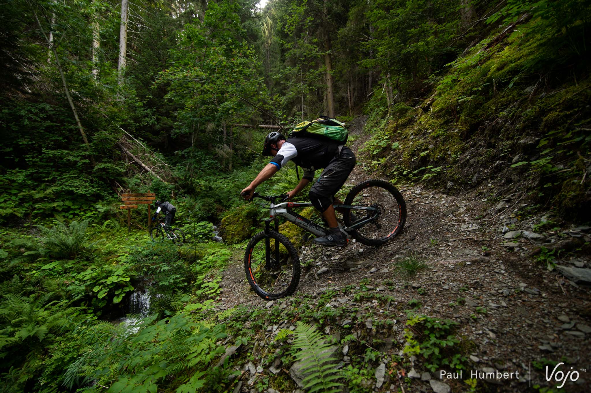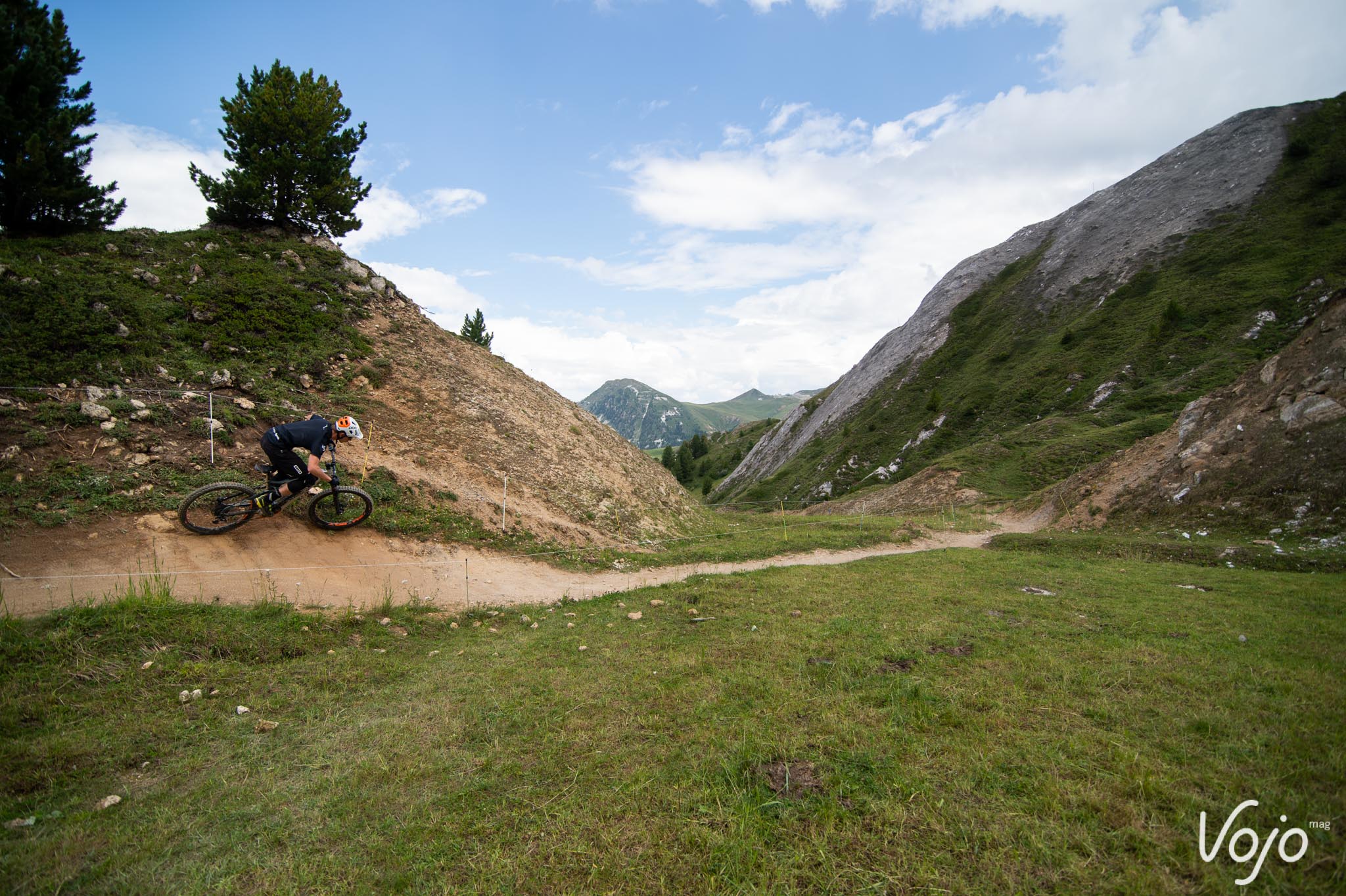L’équipement passé en revue, passons aux qualités dynamiques de la machine. Nous l’avons prise en main sur le bike park de La Plagne, entre les roues de ses concepteurs, avant de basculer sur des sentiers plus naturels et techniques plongeant dans la vallée.