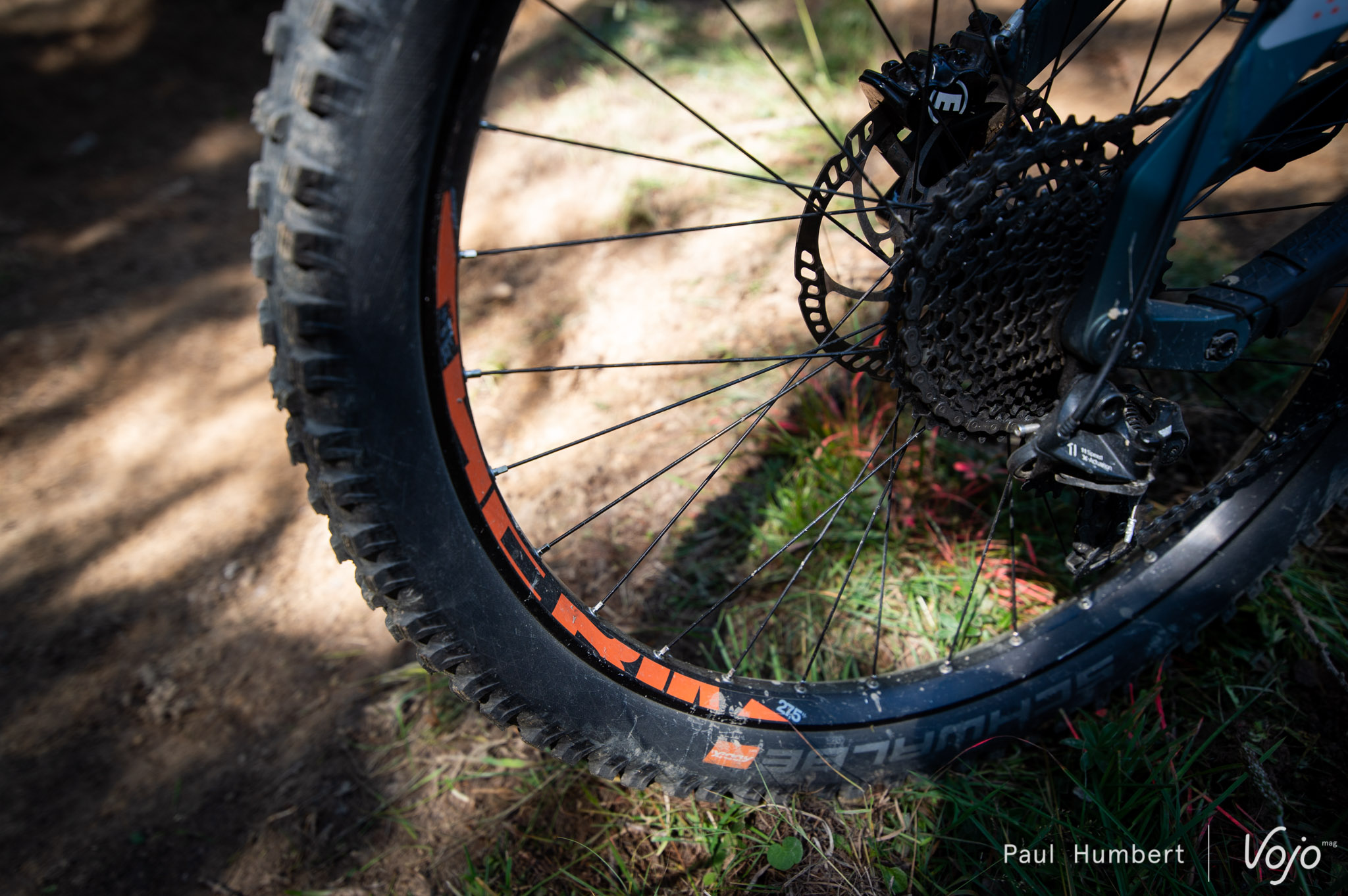 Côté trains roulants, Haibike chausse de bons pneus Schwalbe Magic Mary en section 2.6 (un excellent compromis selon nous) sur des roues « maison ». Haibike sélectionne ses jantes de 35mm de large baptisées « The Rim » et ses moyeux baptisés « The Hub » pour construire un ensemble affichant des dimensions adaptées au programme mais à la résistance bien sous-évaluée. L’ensemble est bien trop mou et pas assez résistant. Ces roues constituent d’ailleurs le défaut principal de ce vélo.