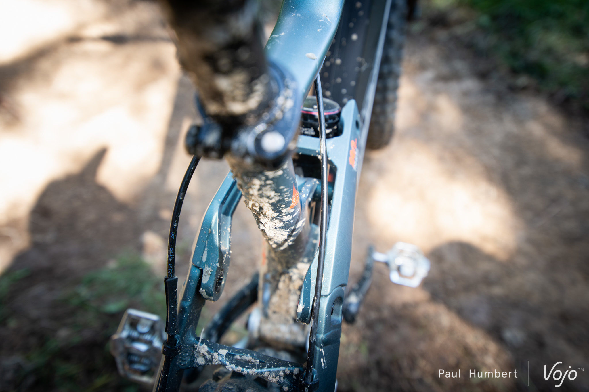 Il nous faudra quelques temps pour s’adapter à son comportement mais on découvre finalement une machine très capable. Dans les pierriers, quand la vitesse est haute et dans les endroits difficile, on sent réellement que la suspension de la machine est libérée. On se concentre sur le pilotage, on sent la machine s’assoir et son centre de gravité se baisser, sans pour autant compromettre la stabilité du vélo.