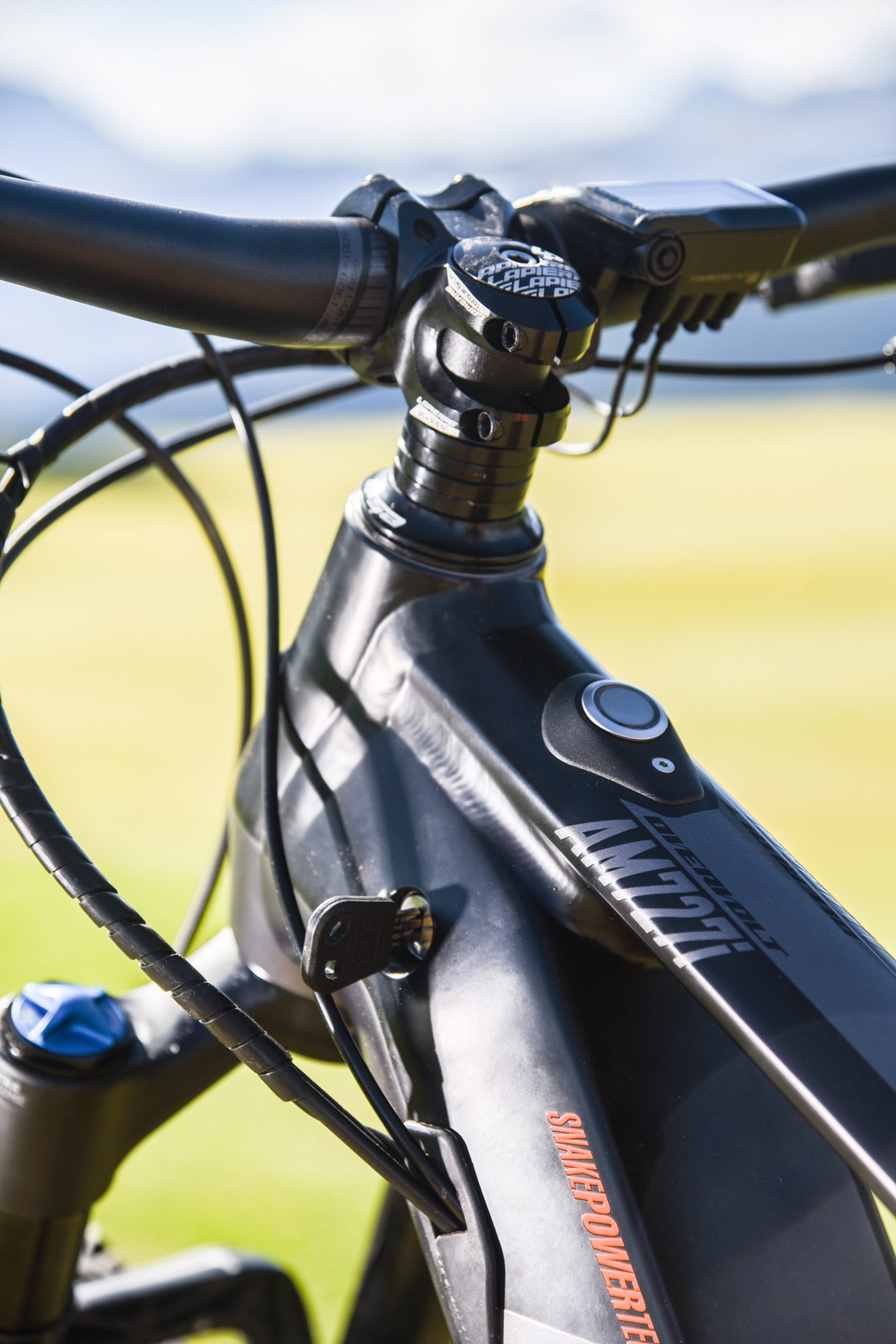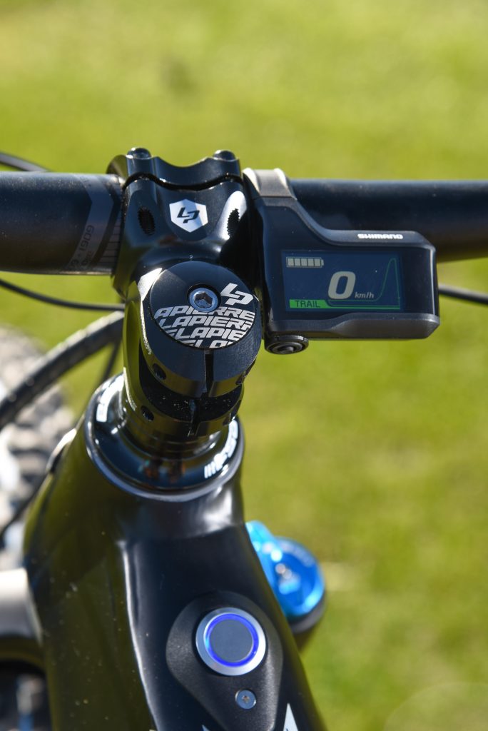 On retrouve ensuite une commande Shimano identique à un shifter de la marque, un bouton de démarrage sur le tube supérieur et les trois niveaux d’assistance du logiciel : Eco, Trail et Boost. Rappelons aussi qu’une mise à jour du logiciel moteur est prévue au courant de l’été.
