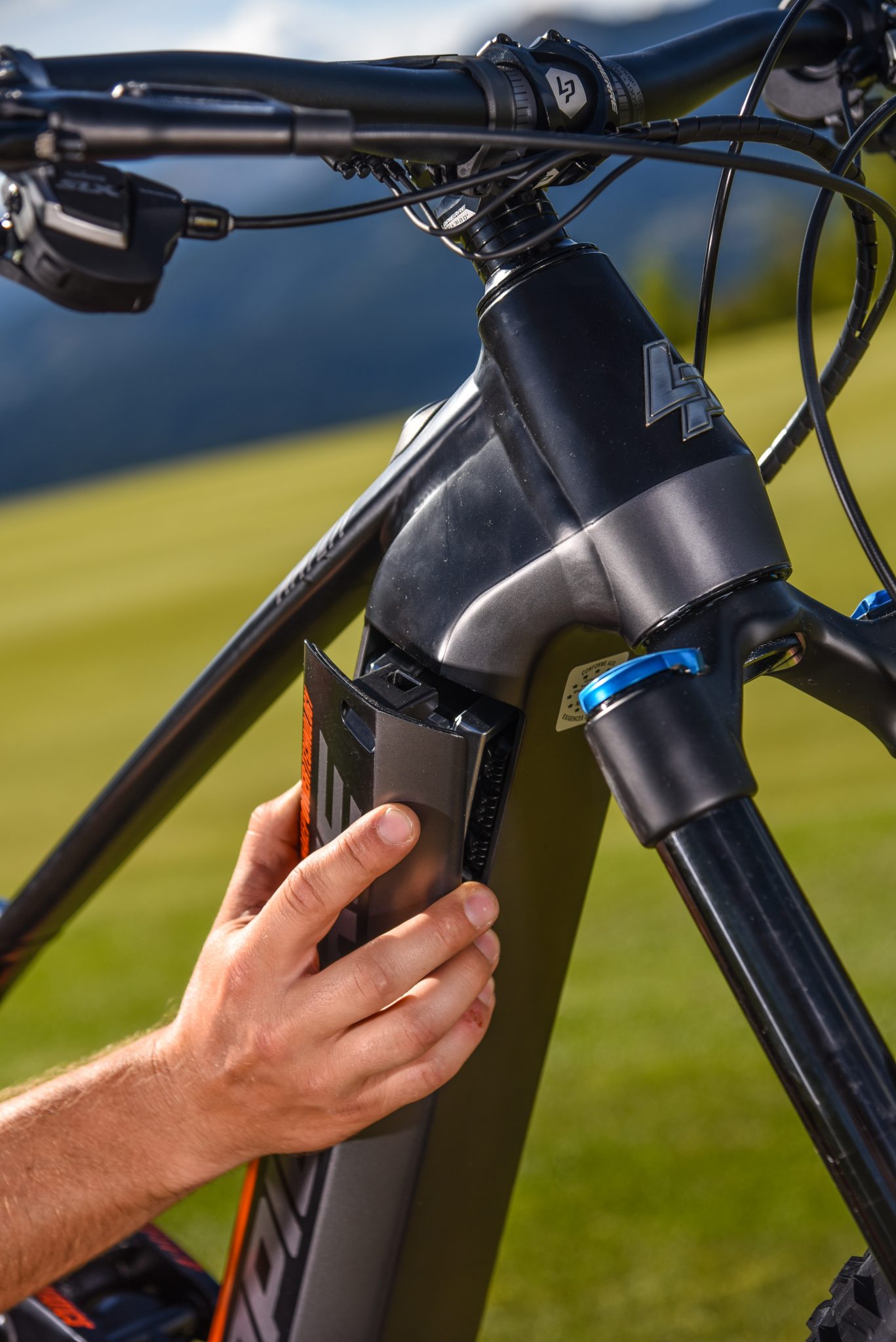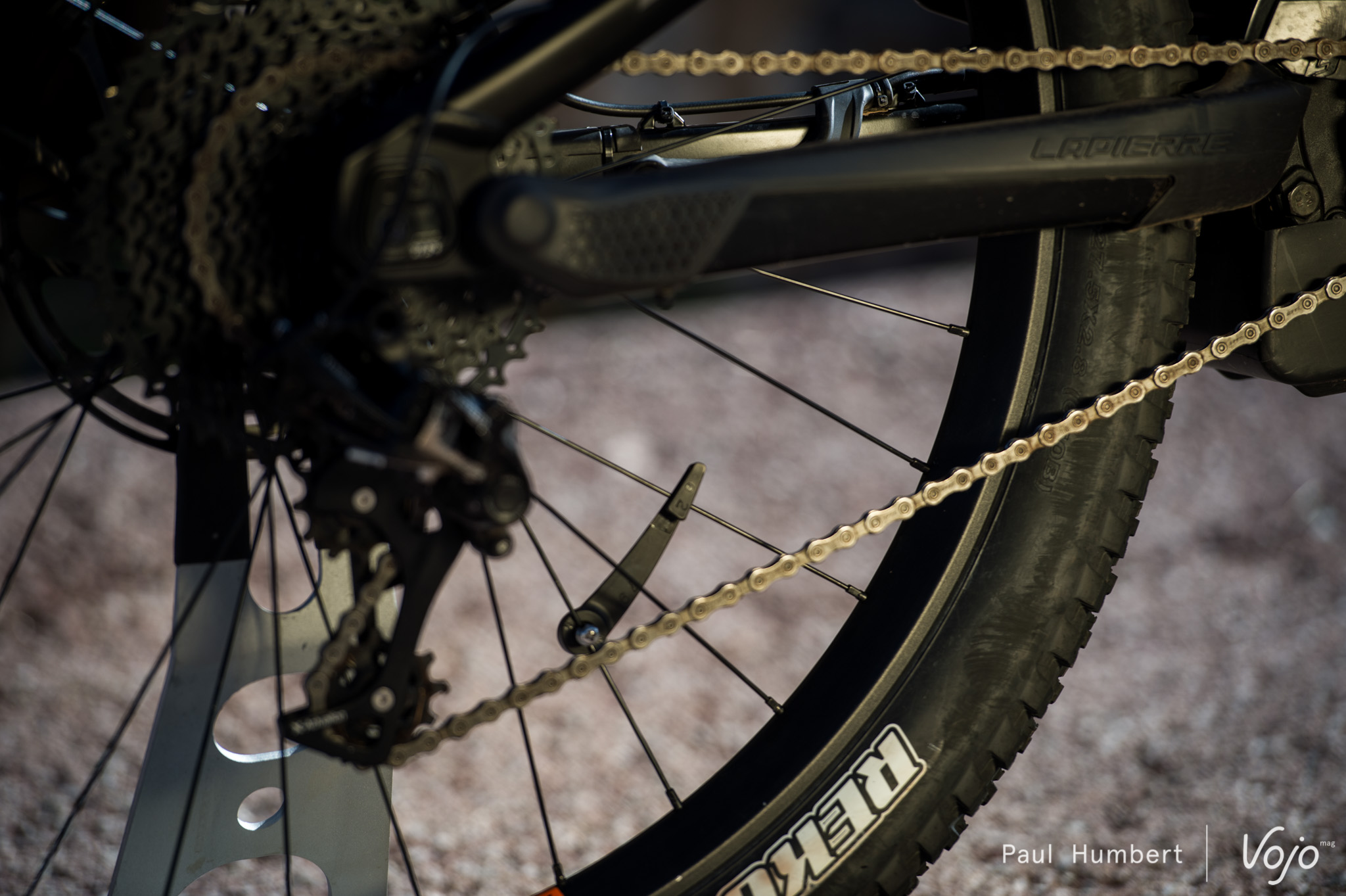 Lapierre a eu l’autorisation de développer sa propre solution de batterie. En l’espèce, il s’agit d’un modèle articulé, un peu à l’image d’une chenille d’engin de chantier qui se glisse dans une petite trappe d’une dizaine de centimètres prévue à cet effet. Cette « technologie » est baptisée « Snake Power ». Elle développe elle aussi 500Wh et est reliée aux moteur en son point bas.