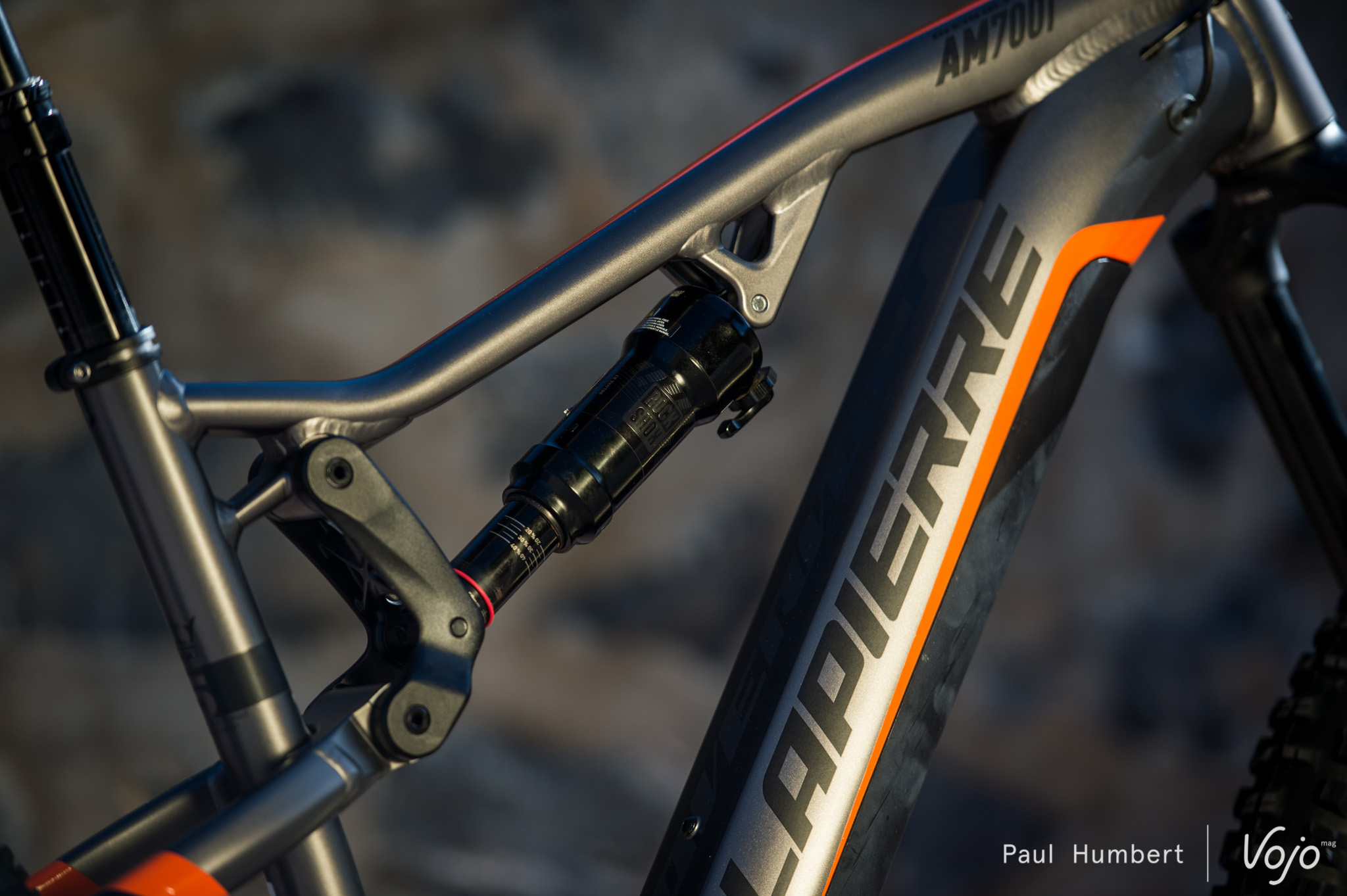 Il est également possible de passer sur des sections de pneus plus classiques (2.4 au lieu de 2.8) en basculant un insert de roue arrière, qui raccourcit la longueur de base de 1cm. Lapierre annonce également son Overvolt AM i comme compatible avec des roues et des pneus de 29 pouces.