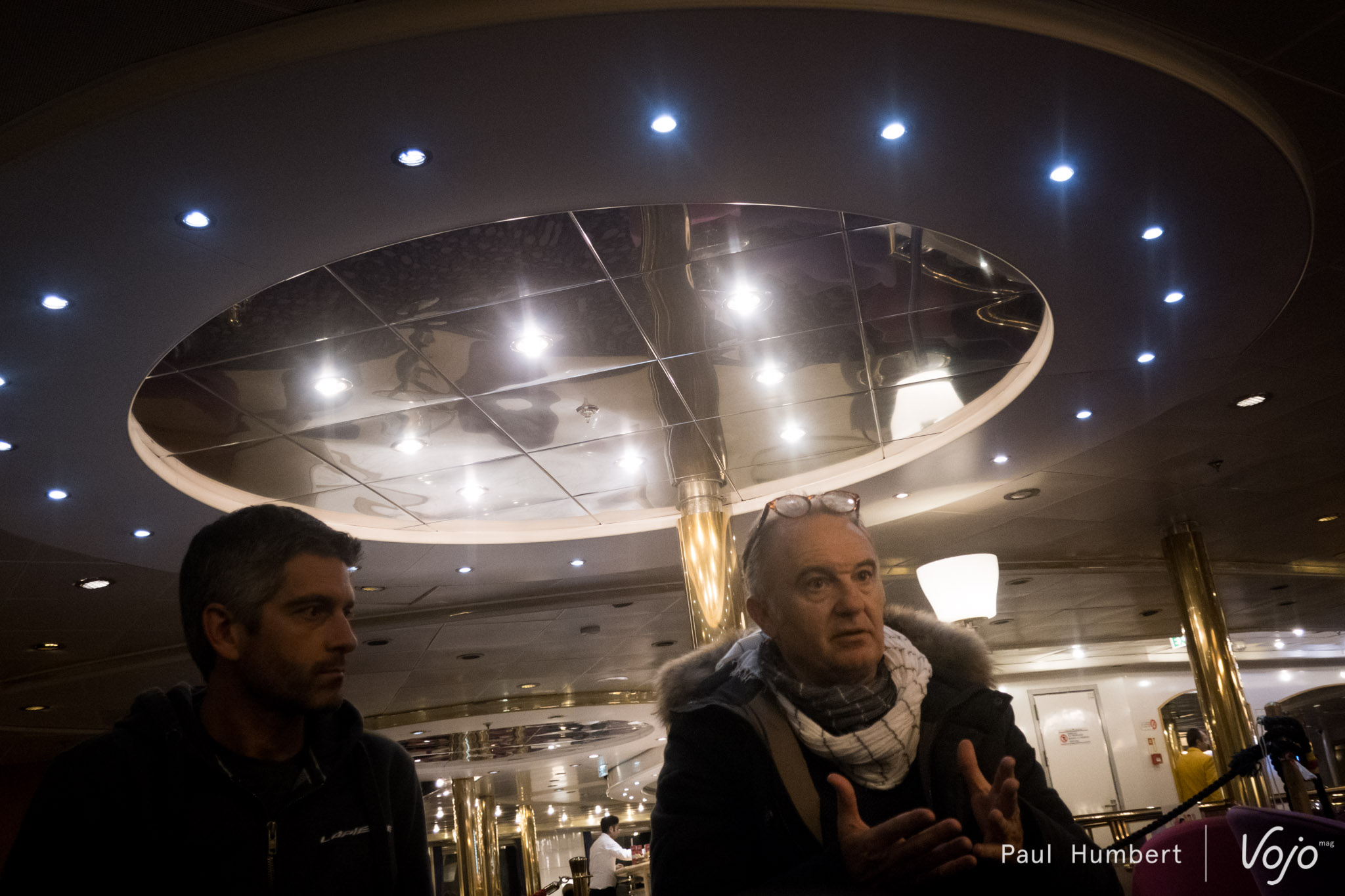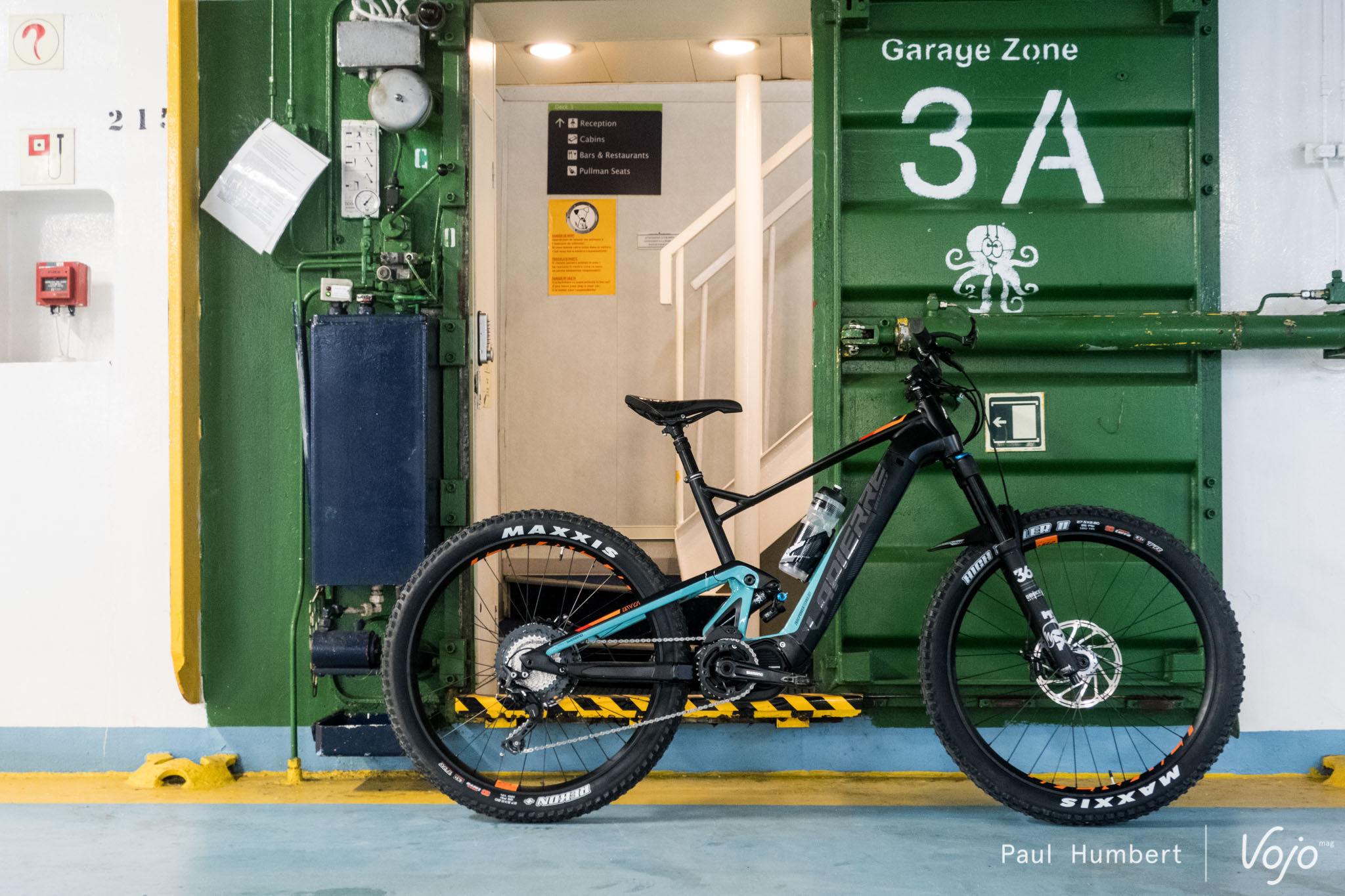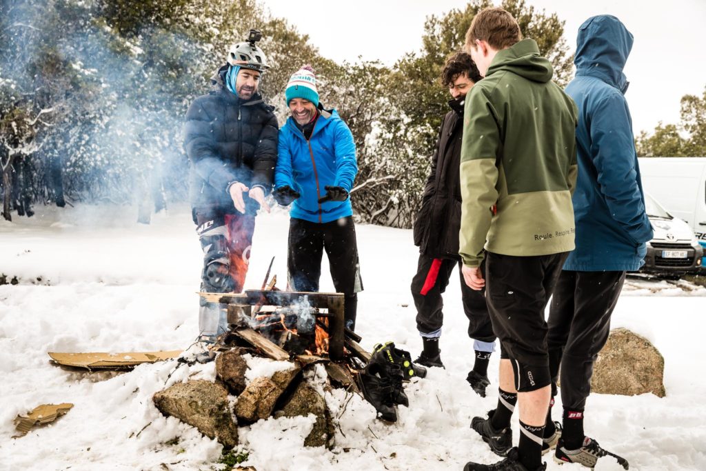 9 mois plus tard, l’Overvolt AMi est vraiment né. Lapierre nous contacte une nouvelle fois pour partir à la redécouverte de cette machine, mais sur l’île de beauté cette fois-ci. Il neige dans le port de Toulon et la soute du ferry se referme quand la nuit tombe. C’est coincé entre Gilles Lapierre et Nicolas Vouilloz qu’on roule pour la première fois dans le port d’Ajaccio. La neige a effectué la traversée avec nous et elle nous attend de pied ferme, dès notre première montée. Après plusieurs heures passées au guidon de l’Overvolt 727i (dont on vous détaille la prise en main dans la partie suivante), il est temps de faire un point sur ce qui a changé depuis juillet 2017.