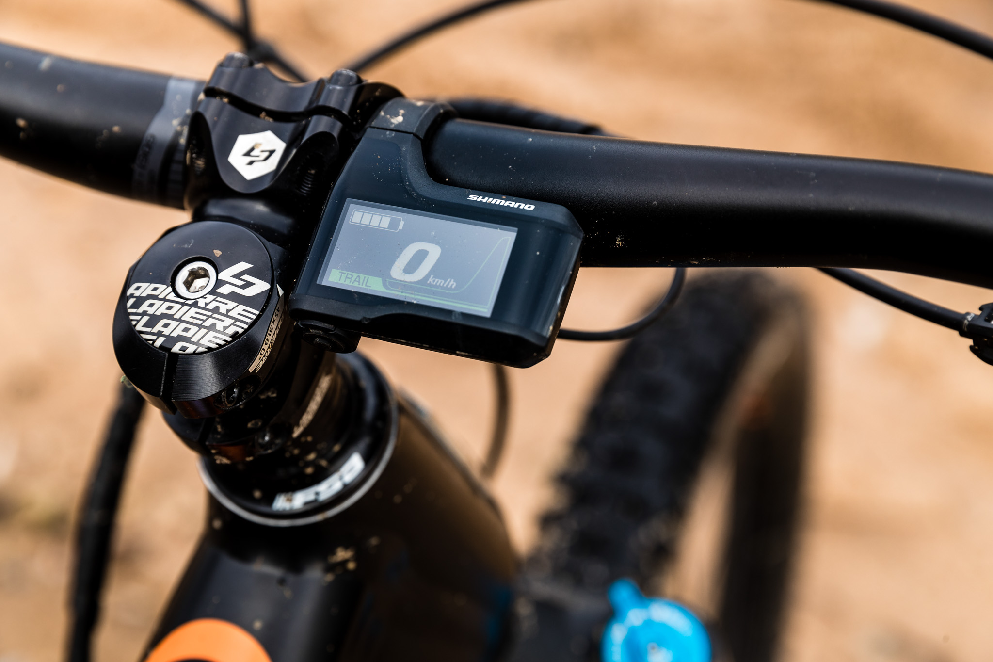 On adore le petit bouton d’allumage rétroéclairé sur le top tube et le poste de pilotage qui offre la même ergonomie qu’un VTT classique : le moteur se commande à l’aide d’un shifter similaire à celui d’un dérailleur avant Shimano, et l’écran de contrôle est identique à celui d’un groupe électrique di2.