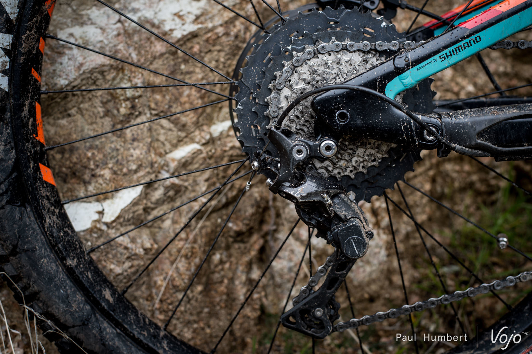 Shimano s’occupe de la transmission avec un dérailleur XT 11 vitesses et une commande SLX. Le freinage est confié à Sram avec les Guide RE.