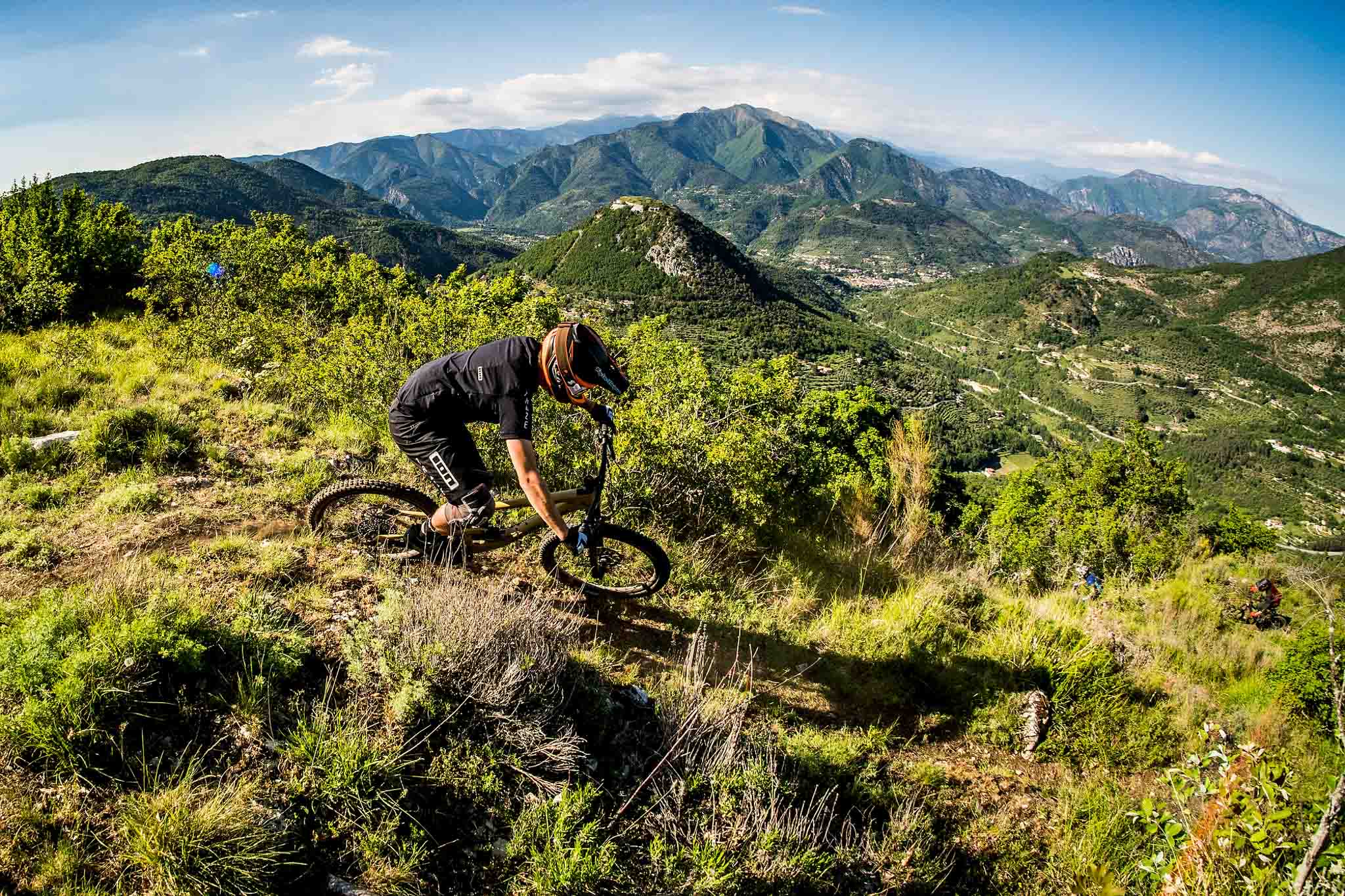 Ce nouveau Santa Cruz Nomad, et sa déclinaison Juliana, nous ont amenés de Sospel à Triora en passant par les plus beaux sentiers, et aussi les plus exigeants, de la région. Ce Nomad est un nouvel hybride qui conviendra à ceux qui veulent se faire plaisir en descente sans s’encombrer d’un vélo de course. En montagne, il sera l’arme parfaite pour vos grosses rando qui ne nécessiteront pas de vraiment pédaler. On vous garantit qu’il vous faudra un moment avant d’entrevoir la limite de cette machine mais nous tenterons de le faire pour vous lors d’un test plus approfondi !
