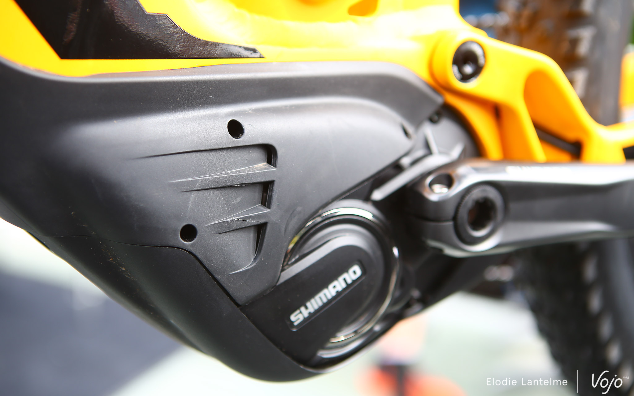 Au niveau du moteur Shimano, Scott a aussi travaillé l’intégration avec un carénage propre au e-Spark Plus, percé d’ouïes de ventilation et qui a également pour but de rendre l’ensemble plus harmonieux visuellement.