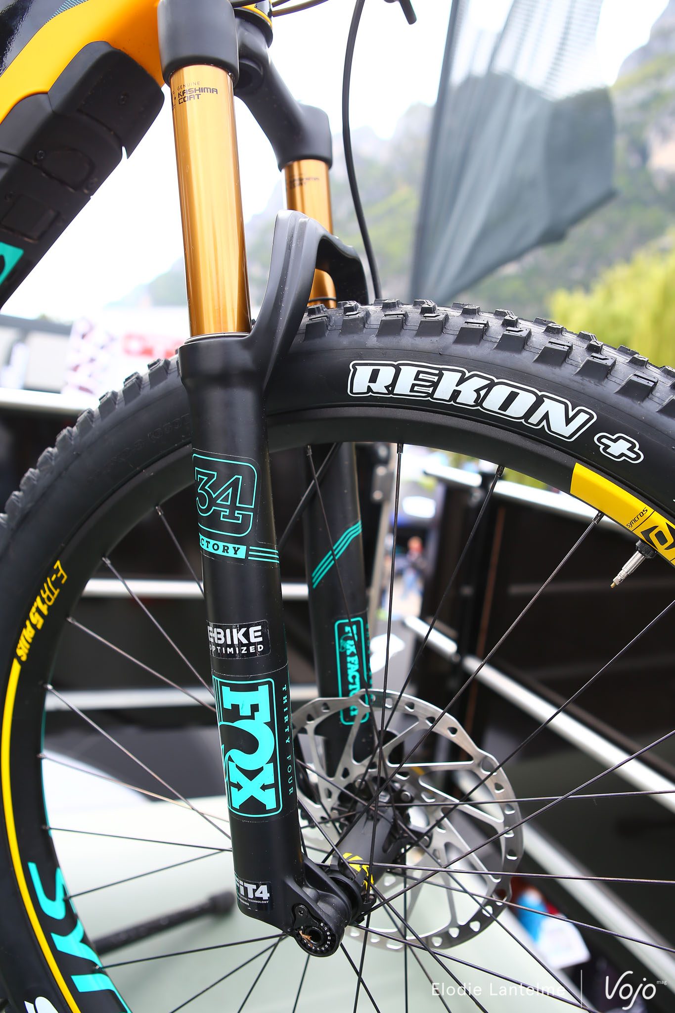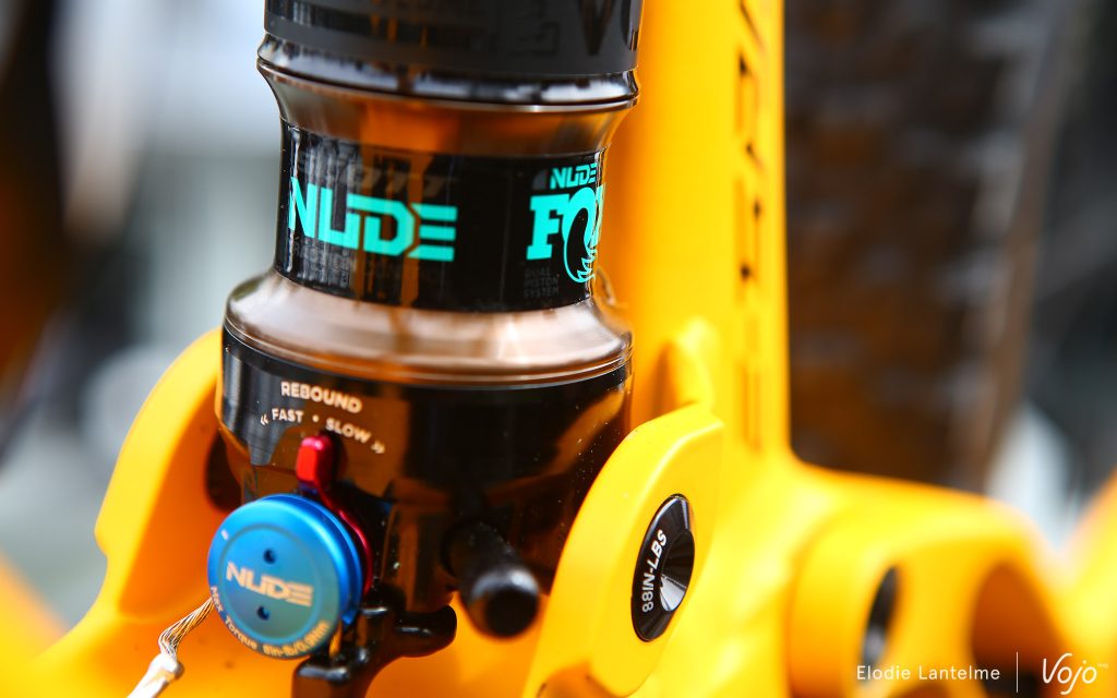 On poursuit le tour du propriétaire par les équipements avec des pneus Maxxis en 2,8 (Minion+ à l’avant et Rekon+ à la carcasse Exo à l‘arrière – pas suffisante néanmoins pour éviter les crevaisons : les trails agressifs de Riva en auront eu raison un nombre impressionnant de fois au sein de notre petit groupe de journalistes internationaux, au point de piller le stock de chambres à air !), jantes Syncros montées avec des moyeux en Boost à l’avant comme à l’arrière, tige de selle Fox Transfer, la fourche 34 en 130mm spécifique e-bike développée par Fox et l’amortisseur Fox Nude Trunnion, lui aussi orné d’un joli sticker « Scott » personnalisant le tout… le Scott e-Spark 700 Tuned Plus a, avant tout, misé sur l’intégration.