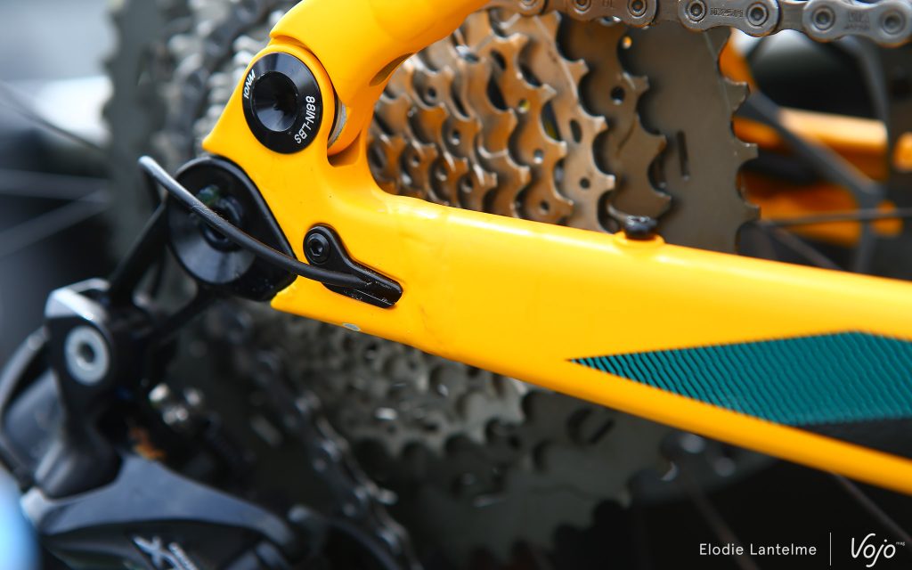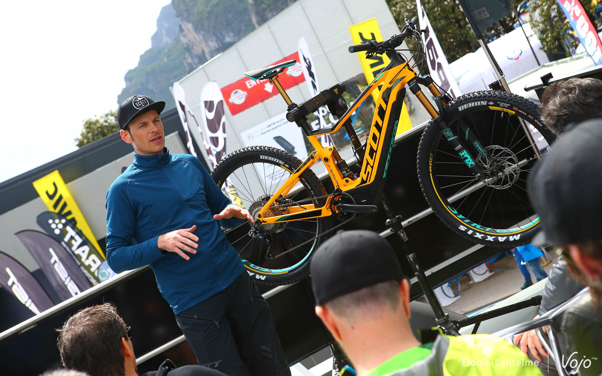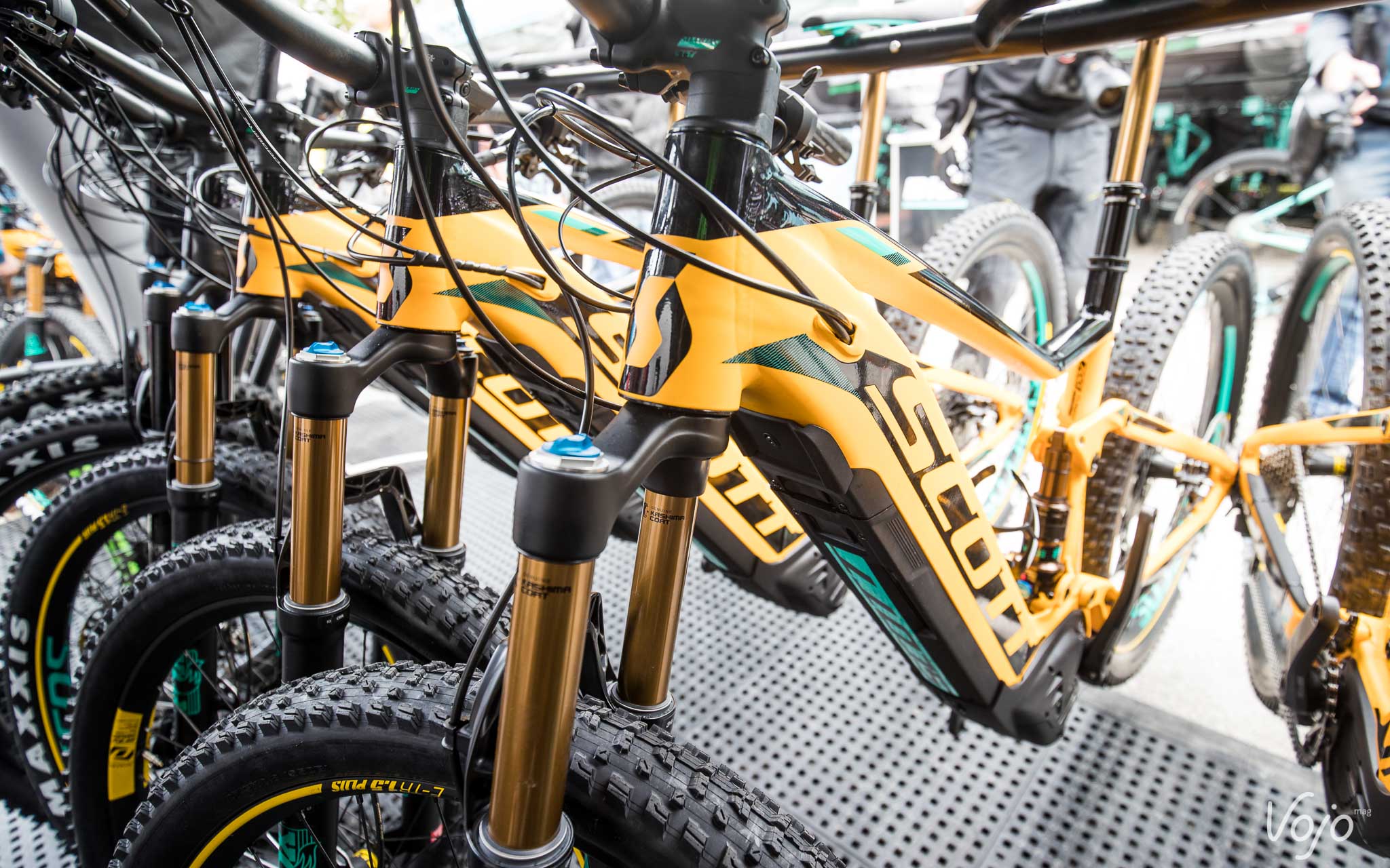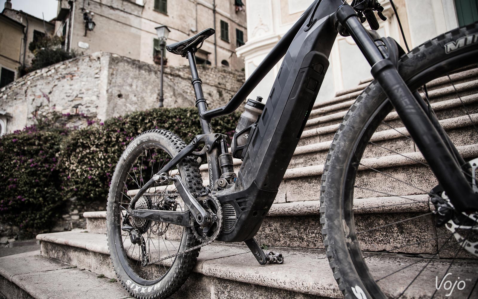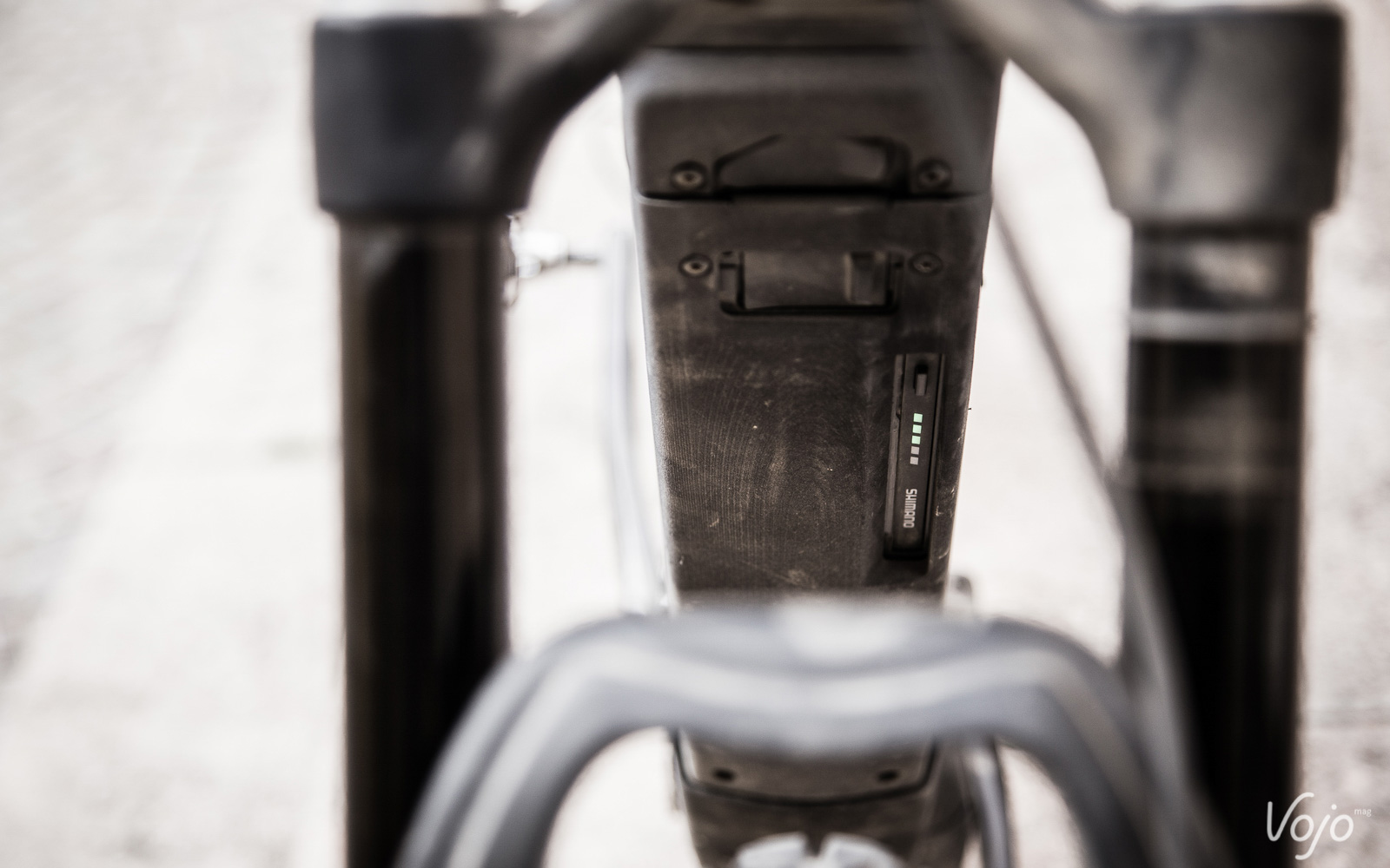 Scott a également beaucoup travaillé l’intégration sur son nouveau e-Spark Plus. « Même si d’importants progrès ont été faits, cela reste un élément massif sur le vélo. Nous avons donc beaucoup travaillé sur les formes du tube diagonal, et la batterie Shimano s’y insère complètement. » C’est à la fois plus esthétique, mais aussi meilleur au niveau de la répartition des masses, ce qui est un point particulièrement important sur un e-bike.