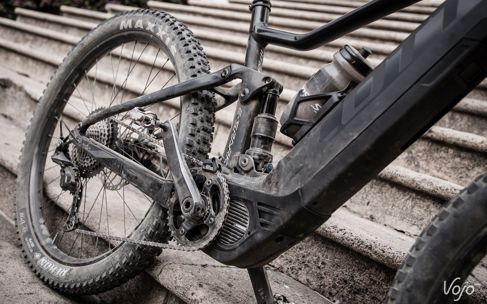 Renseignements pris auprès de Shimano, ceci sera solutionné avec la mise à jour moteur, qui ne devrait pas être longue à sortir après la commercialisation des premiers modèles. Celle-ci permettra également de paramétrer l’étalonnage des modes. On devrait donc pouvoir, via l’application E-Tube (disponible sur l’Apple et le Google Stores, pour iPhone 5 et plus et Androïd 5.1 et plus), différencier davantage l’Éco du Trail et combler ainsi le réel « gap » qu’il y a entre le Trail et le Boost. Voilà une bonne excuse pour tester une version du vélo avec cette mise à jour quand elle sera disponible.