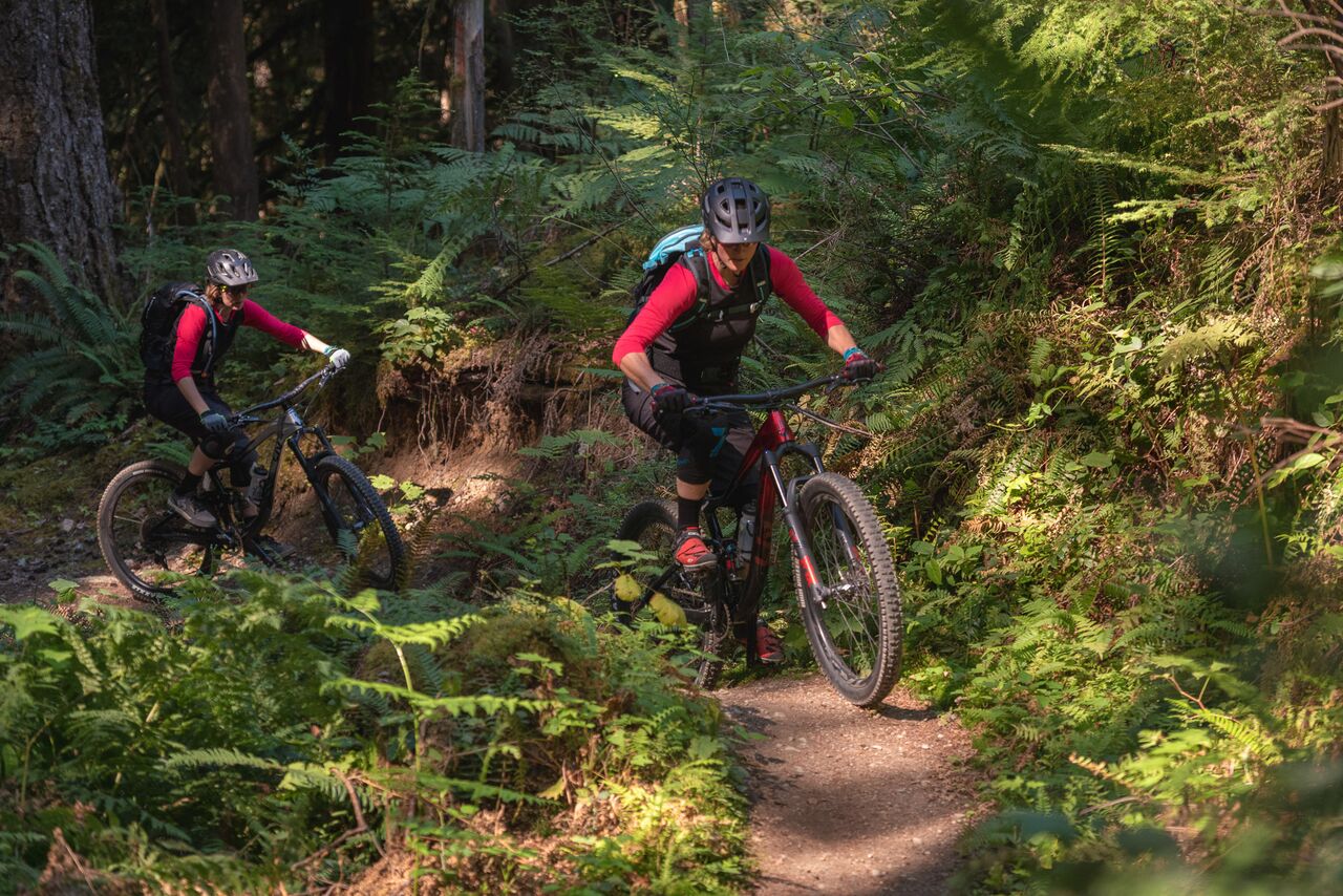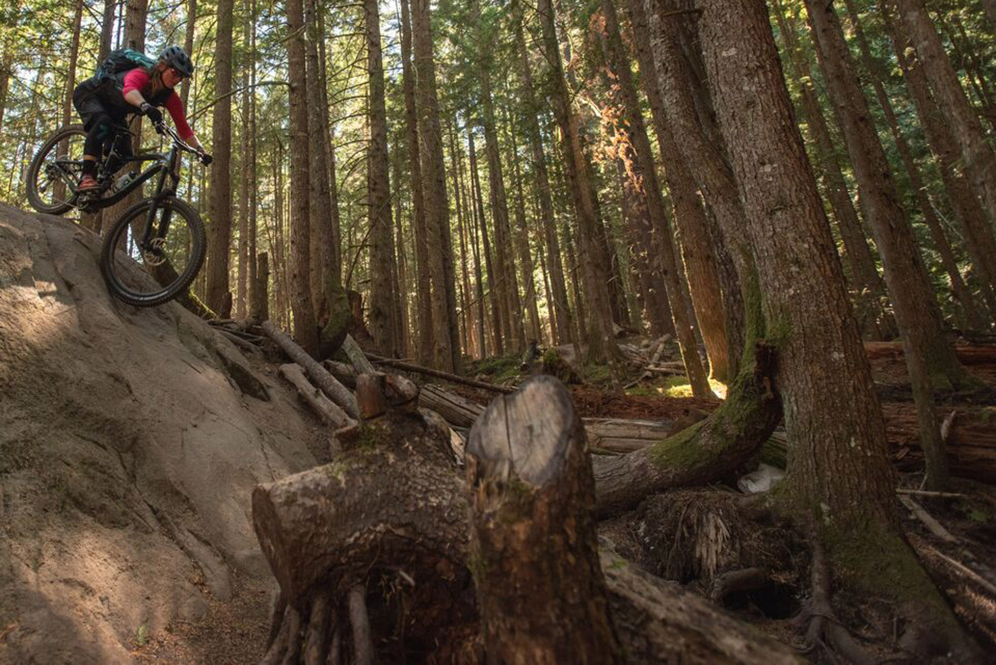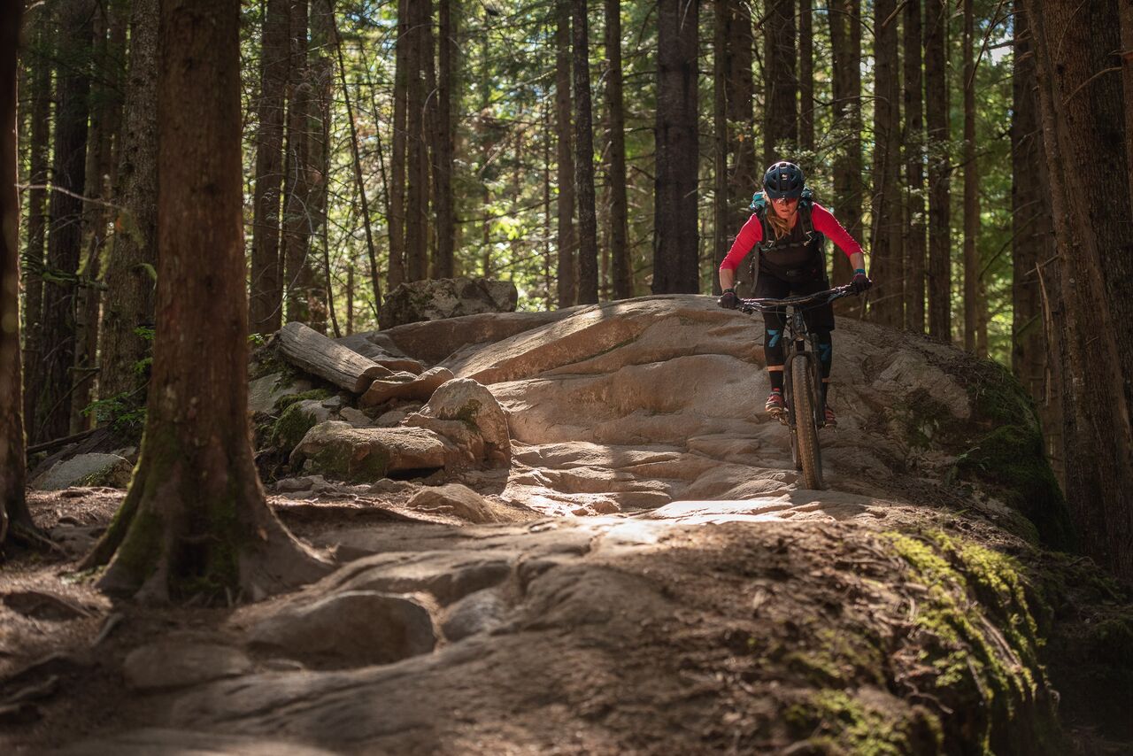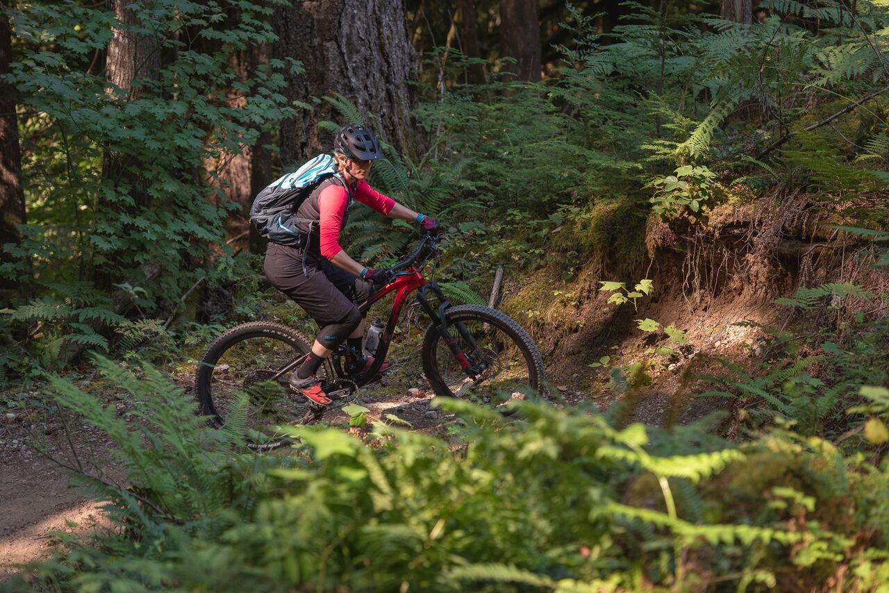 En descente, nous avons tout basculé en mode ouvert, et ça nous a ouvert… des horizons. Sur les fameux rock rolls qui signent l’identité de la Colombie Britannique, dans les salades de racines, ls marches rocheuses, l’Intrigue file droit. On a pris seulement soin de slalomer avec la roue avant, histoire d’éviter les plus gros obstacles, mais même sur ces derniers, les DVO n’ont jamais été pris en défaut.