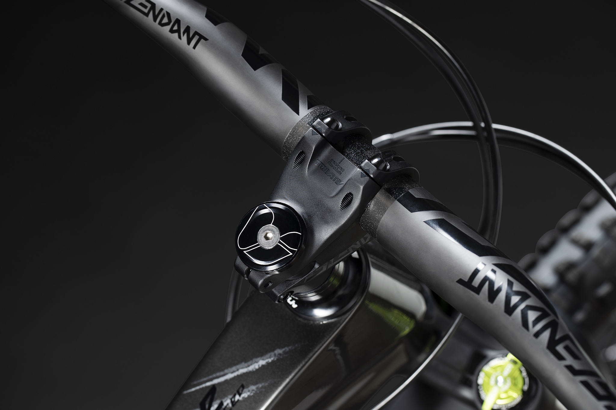 Un cintre Truvativ Carbon Descendant en 780 mm pour les tailles M et L (760 pour S et XS) est couplé à la potence Aka de la même marque.
